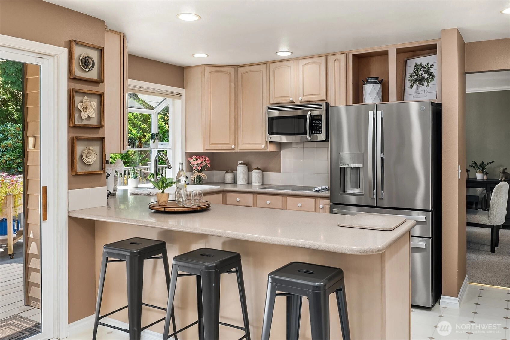 Welcome to a home that feels like a private retreat in the heart of Bellevue, perfectly situated on a quiet cul-de-sac. Meticulously maintained and thoughtfully updated, this residence features expansive living spaces and generously sized rooms that create a sense of comfort and ease. Sunlight pours into open gathering areas, perfect for lively celebrations or peaceful evenings by the fire. Step outside to a tranquil, landscaped yard where gardens and mature trees offer year-round serenity—ideal for morning coffee, summer barbecues, or quiet reflection. All of this in an incredible location just moments from top-rated schools, parks, trails, shopping, and effortless commuter routes.