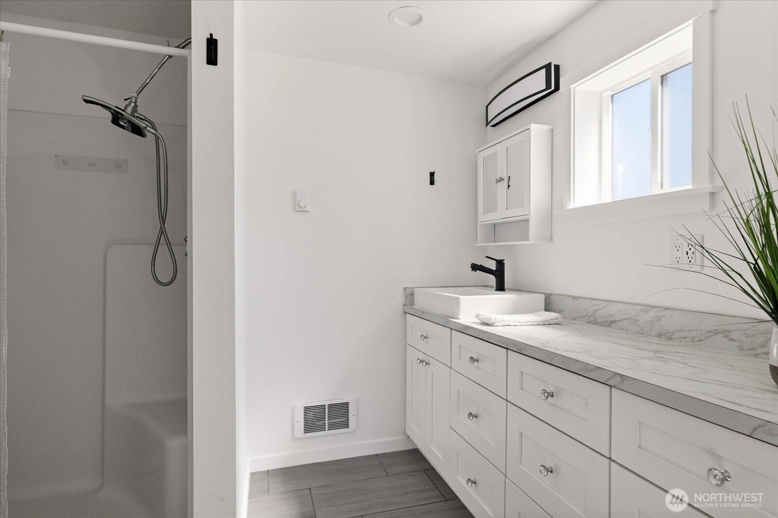 Fantastic separate living/potential income-producing opportunity!! Step inside to the bright living & kitchen area w/ easy access to the large fully-fenced backyard & deck. Utilize the stunning addition as an extra living room, bedroom, or potential generational living/income-producing space w/ a beautiful bathroom, bright living area, separate entrance, & backyard/patio access. Enjoy the community pool, playground, beach access & boat launch! More? Newer flooring, fence, mini-splits, & refrigerator. Centrally located between Coupeville & Oak Harbor, close to beaches, & a quick drive to NAS Whidbey. If an updated home full of opportunity & amenities are on your list, your home search might just end here!