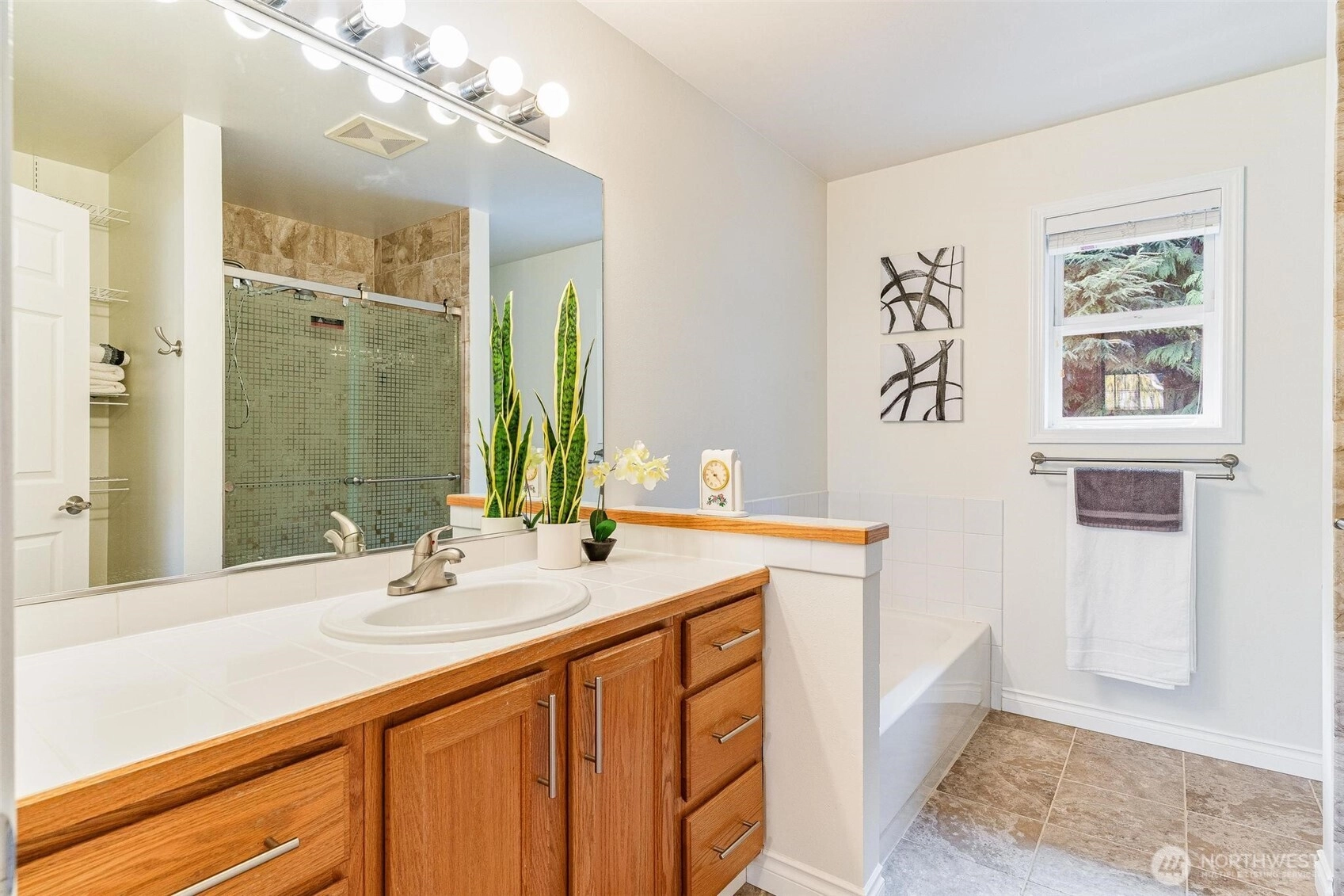 In an established Edmonds neighborhood near Meadowdale Beach Park, this one-owner home is the kind you don’t see often. Perfectly set on a quiet cul-de-sac with wonderful neighbors, it boasts amazing curb appeal thanks to fresh exterior paint and lush landscaping. Inside, you’ll find new paint, designer touches, an updated kitchen with SS appliances, gas fireplace, and central AC to keep cool. The main-level bedroom has a walk-in closet and an adjoining full bath, while the HUGE primary suite upstairs features a spa-like 5-piece bath and walk in closet. The backyard backs to a greenbelt and offers a massive entertaining deck plus large shed. With a 3-car garage, newer roof, no HOA, and pre-inspection done, it’s truly move-in ready.