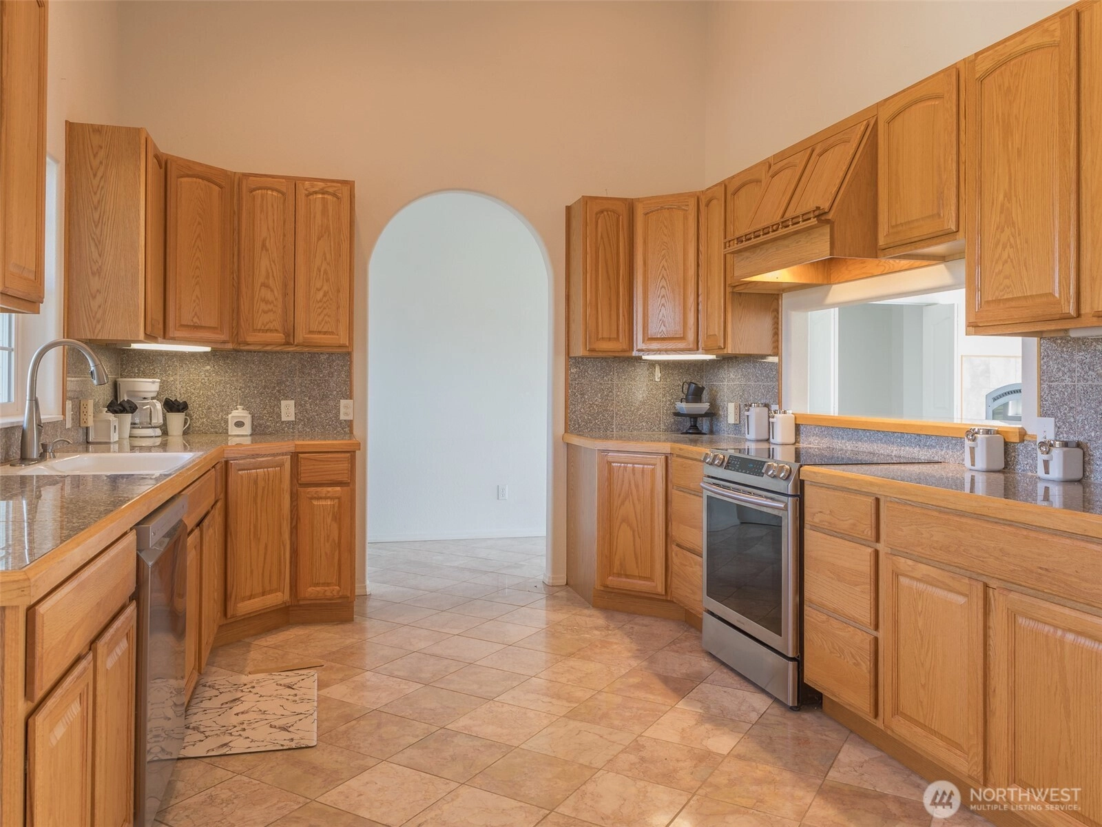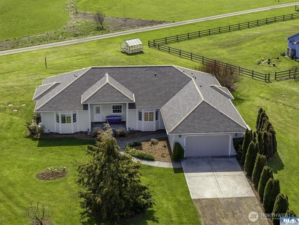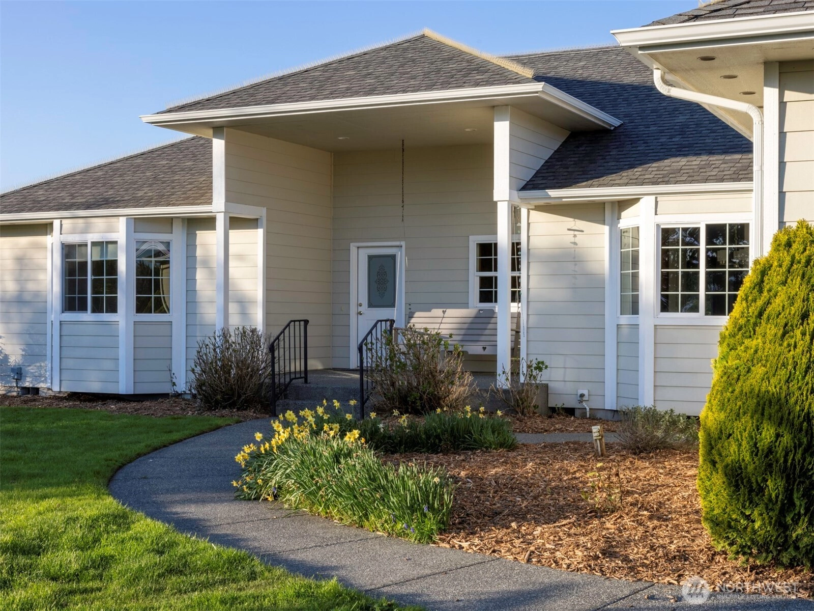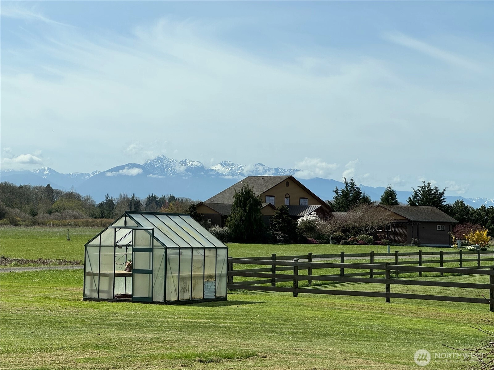 Stunning custom home on 1 acre in Sequim's sought-after Blue Hole. Enjoy panoramic mountain views, vaulted ceilings, large rooms and graceful arched openings that add interest to this smart split floor plan. Functional, elegant, and great for entertaining. Enjoy a propane fireplace on chilly days, a formal dining room with marble floors, plus a cozy eat-in kitchen area with bay window. Spacious primary suite features dual walk-in closets and a spa-like bath with dual sinks, jetted tub and separate shower. South-facing deck offers year-round outdoor living, plus a greenhouse in the manicured yard for gardening. Large 3 car garage and premium water filtration system. Loads of storage throughout!