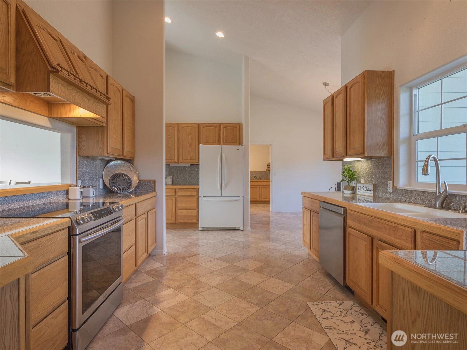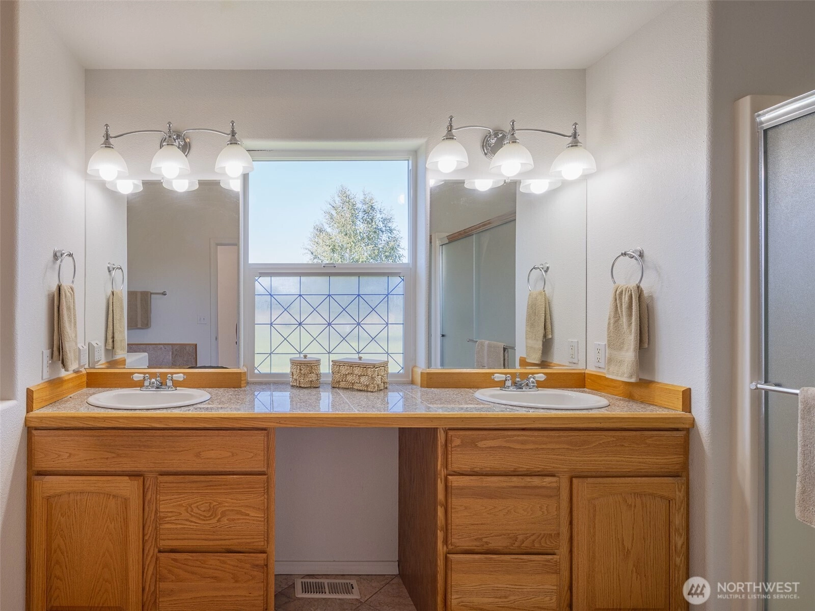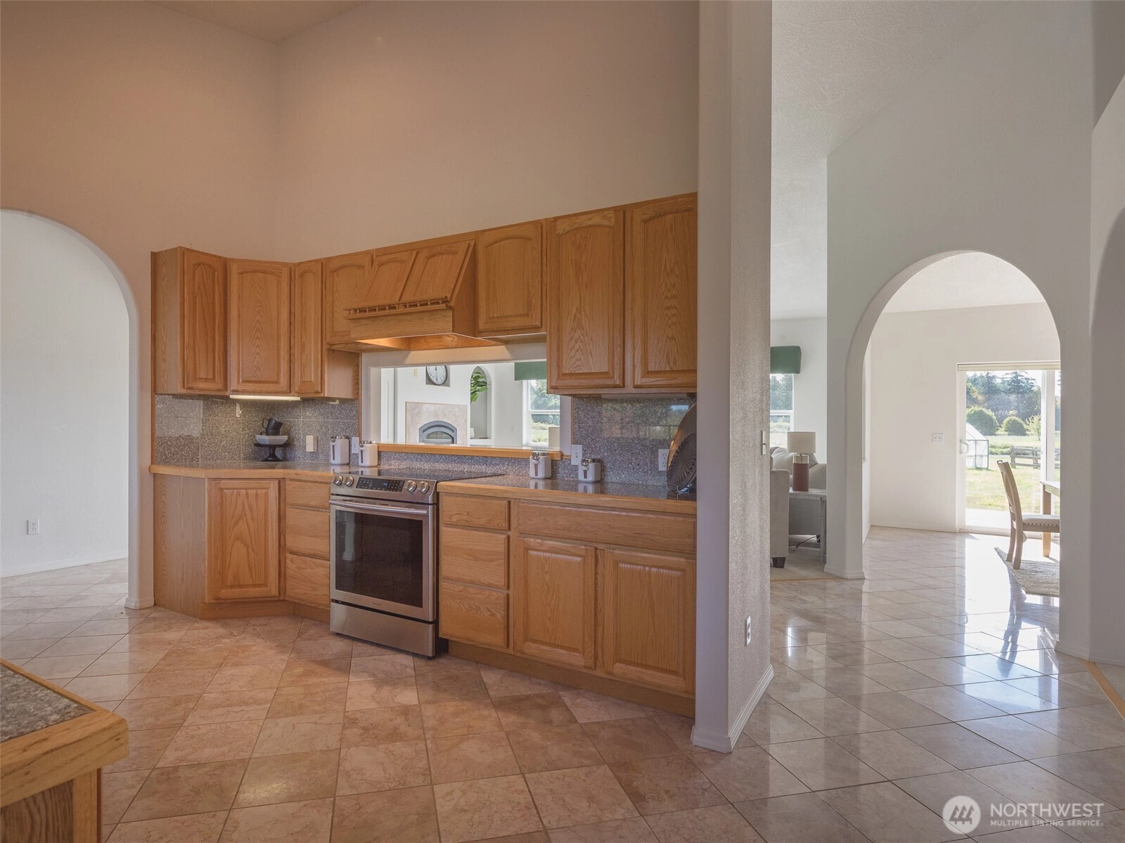 Stunning custom home on 1 acre in Sequim's sought-after Blue Hole. Enjoy panoramic mountain views, vaulted ceilings, large rooms and graceful arched openings that add interest to this smart split floor plan. Functional, elegant, and great for entertaining. Enjoy a propane fireplace on chilly days, a formal dining room with marble floors, plus a cozy eat-in kitchen area with bay window. Spacious primary suite features dual walk-in closets and a spa-like bath with dual sinks, jetted tub and separate shower. South-facing deck offers year-round outdoor living, plus a greenhouse in the manicured yard for gardening. Large 3 car garage and premium water filtration system. Loads of storage throughout!