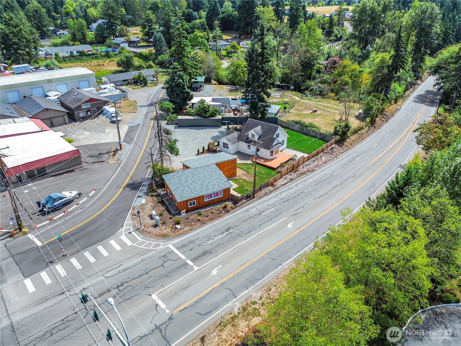 Ideal EDGEWOOD LOCATION! Huge COMMERCIAL opportunity in Edgewood's MUR ZONING across from the popular Edgewood Community Park. Freshly updated home with LARGE 1348 sf shop, offering residential with commercial component! The home boasts new flooring, quartz countertops, fresh paint inside and out, and new deck. Large remodeled shop/garage with 3-phase power is a blank canvas ready for your vision, featuring open-span beam ceilings, new siding, new windows, new roof and PRIME VISIBILITY with SIGNAGE SPACE. Live in or rent out the home while operating a business on-site. Storage container in parking area stays. Endless possibilities!