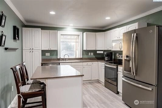 Enjoy the charm of small-town living in this inviting home, ideally located between Waitsburg and the Tri-Cities. The updated kitchen features quartz counters, newer appliances, a large island, and opens to the dining room—perfect for gatherings. Vinyl plank flooring adds modern appeal. The main-floor primary bedroom offers comfort and convenience. Step outside to a spacious deck, ideal for entertaining; set on just under an acre, with room to garden and play. Connection for generator on deck. Outbuildings provide extra storage, and the newer HVAC system ensures year-round comfort.