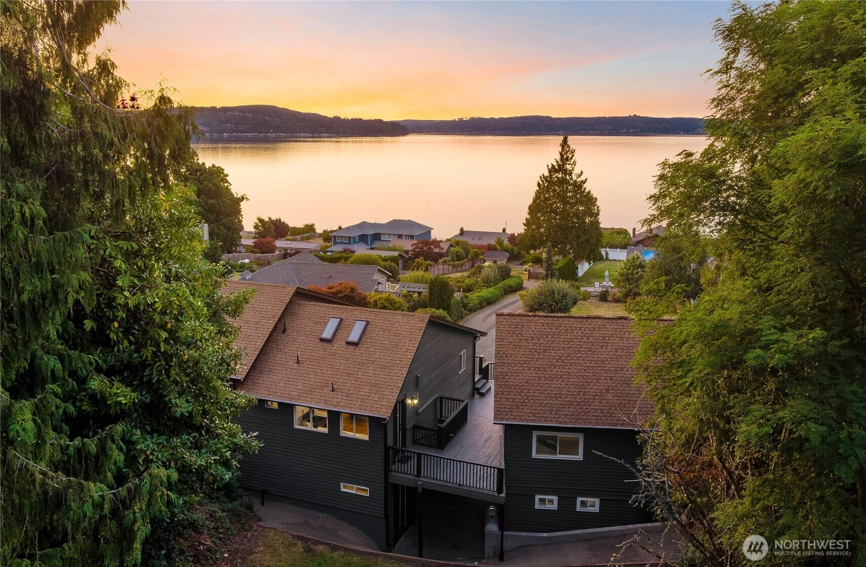 Luxury Living in Lofall! Enjoy one of Kitsap's most sought after neighborhoods. Beach access steps away + mountain/sound views throughout! Epic sunrises/sunsets from the sprawling patio w/hot tub, entertaining space or enjoy inside from the soaring windows in the living area. No space left untouched! 6 bdrms (5 w/water views!!) 3 baths, 6 car garage w/oversized RV bay! Fully updated with modern lighting, chefs kitchen: quartz countertops/stainless steel appliances/soft close cabinets + 2nd space above garage w/full kitchen, 2 bedrooms + bathroom could be perfect MIL/guest suite. Hard-wired backup generator. Beautifully landscaped/partially fenced. Finished Basement! Minutes from Bangor Navy Base, Ferries and Downtown Poulsbo. No HOA dues!