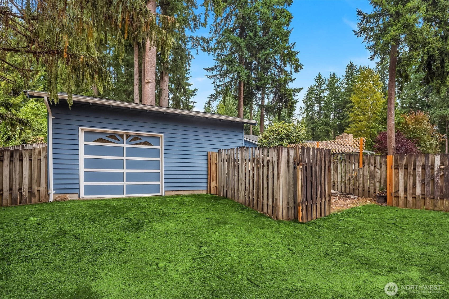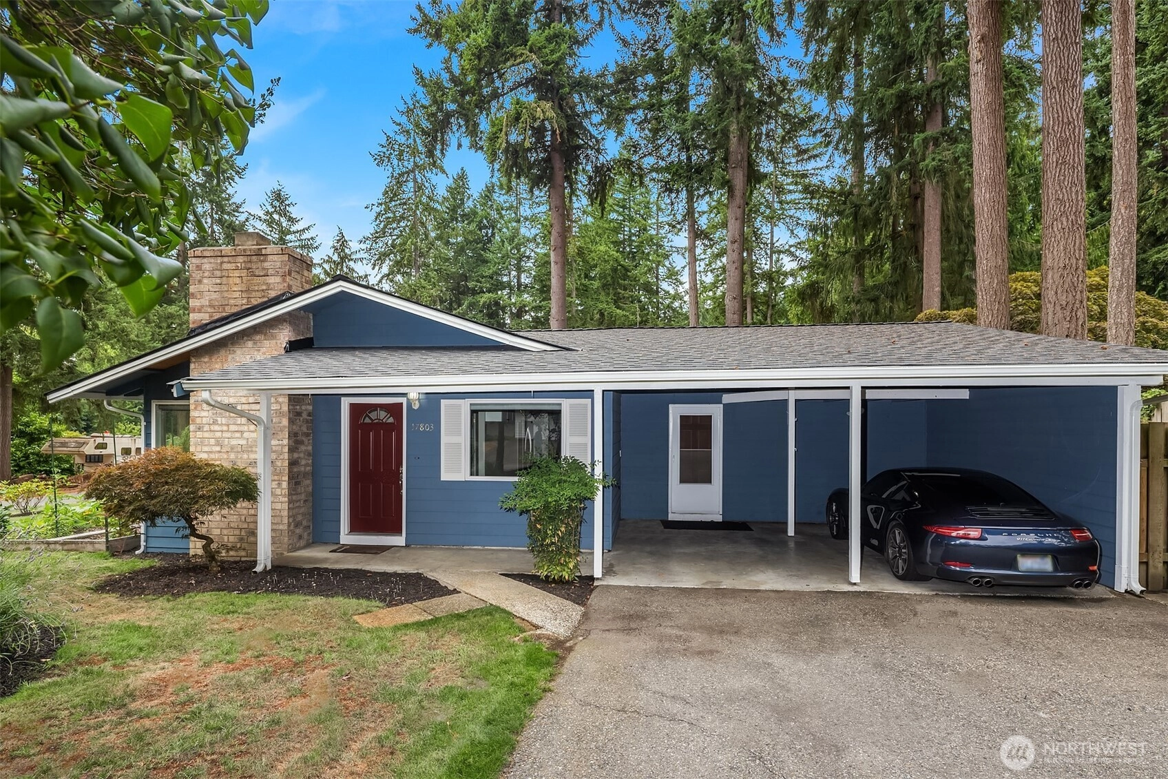 Live-Work-Play at home. Ideal property for starter buyer or home based business. Ez living ,Ez maintenance 3 bedroom Rambler with 2 car carport AND detached 1 car garage/shop/office for work/hobby home endeavors. RV/Boat pad behind double door gate next to shop. Sits smartly on a corner lot on the top of the Cottage Glen subdivision. Fully fenced backyard with towering evergreens and patio. Brand new roof by Elite Roofing. Total crawl and attic upgrade by American Crawl space and PSE. All flooring either hardwood or sandstone tiles. Stately street appeal with terraced front yard. Note two fireplaces. Convenient location with ez access to Avondale (to Microsoft) and Safeway shopping center. Move right in. Northshore School District!