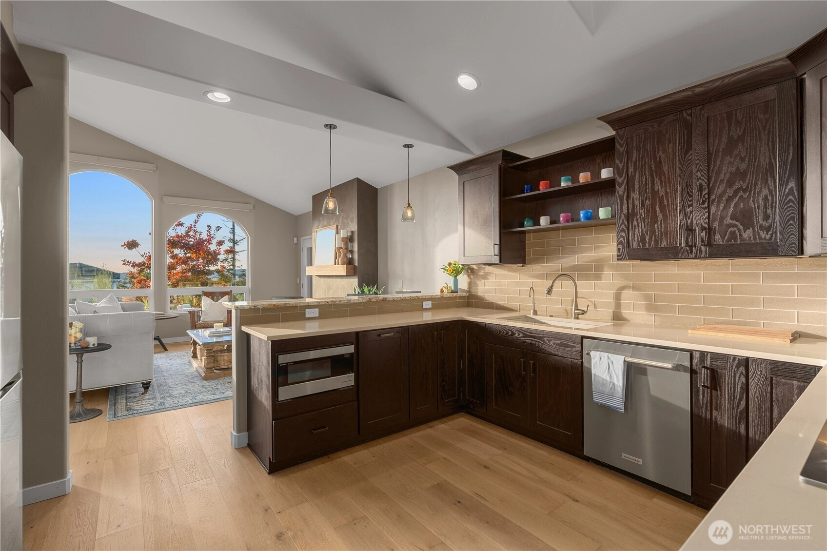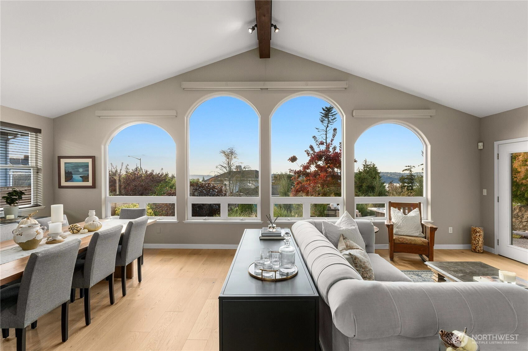 Wake to your morning coffee catching the sunrise off of the Olympic mountains, & relaxing w/a book or sharing a bottle of wine & conversation on the large patio while the sun sets over Possession Sound. Designed for both elegance & ease, the great room’s four arch-top windows frame dreamy year-round views, flooding the space w/golden hues. Rich hardwood floors guide you through thoughtfully remodeled spaces, including a sophisticated kitchen &spa-like baths adorned with floor-to-ceiling tile. Custom closet organizers for effortless order. oversized 2-car garage offers space for hobbies. The home has impeccably designed & mature landscape w/ Koi pond, garden & driveway lighting, and a sprinkler system. Too much to list. See before its gone.