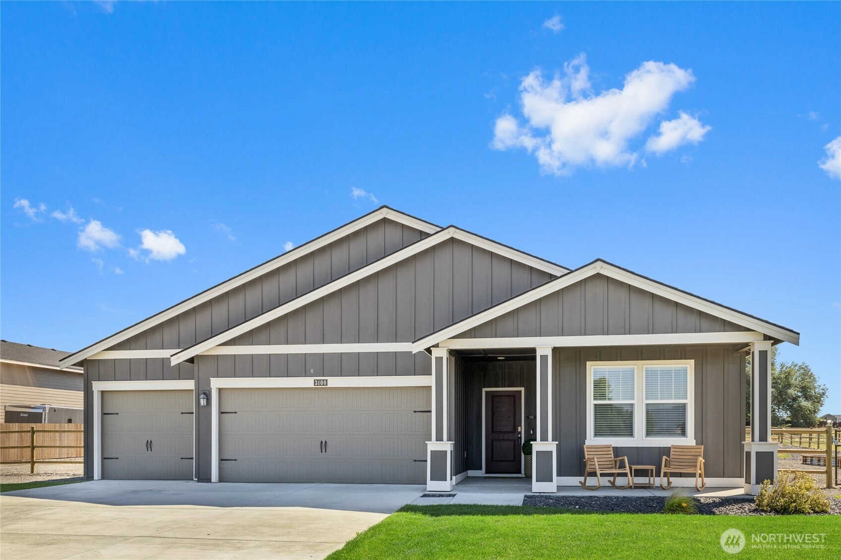 Build your dream shop! Located in the highly desirable Palomino neighborhood with views of the Stuart Mountains. This 4 bed/3 bath home sits on .68 acres and is close to town with a country feel. Fully fenced yard, irrigated lawn, and above-ground garden boxes. Plenty of room for a play structure, chickens, a shed, RV parking, and more! The home boasts 9-foot ceilings, an open concept living room, a fireplace, and a huge kitchen island. Stainless steel appliances. Window coverings throughout. Wind protection and privacy on the back covered patio. Laundry room and mudroom off the 3-car garage.