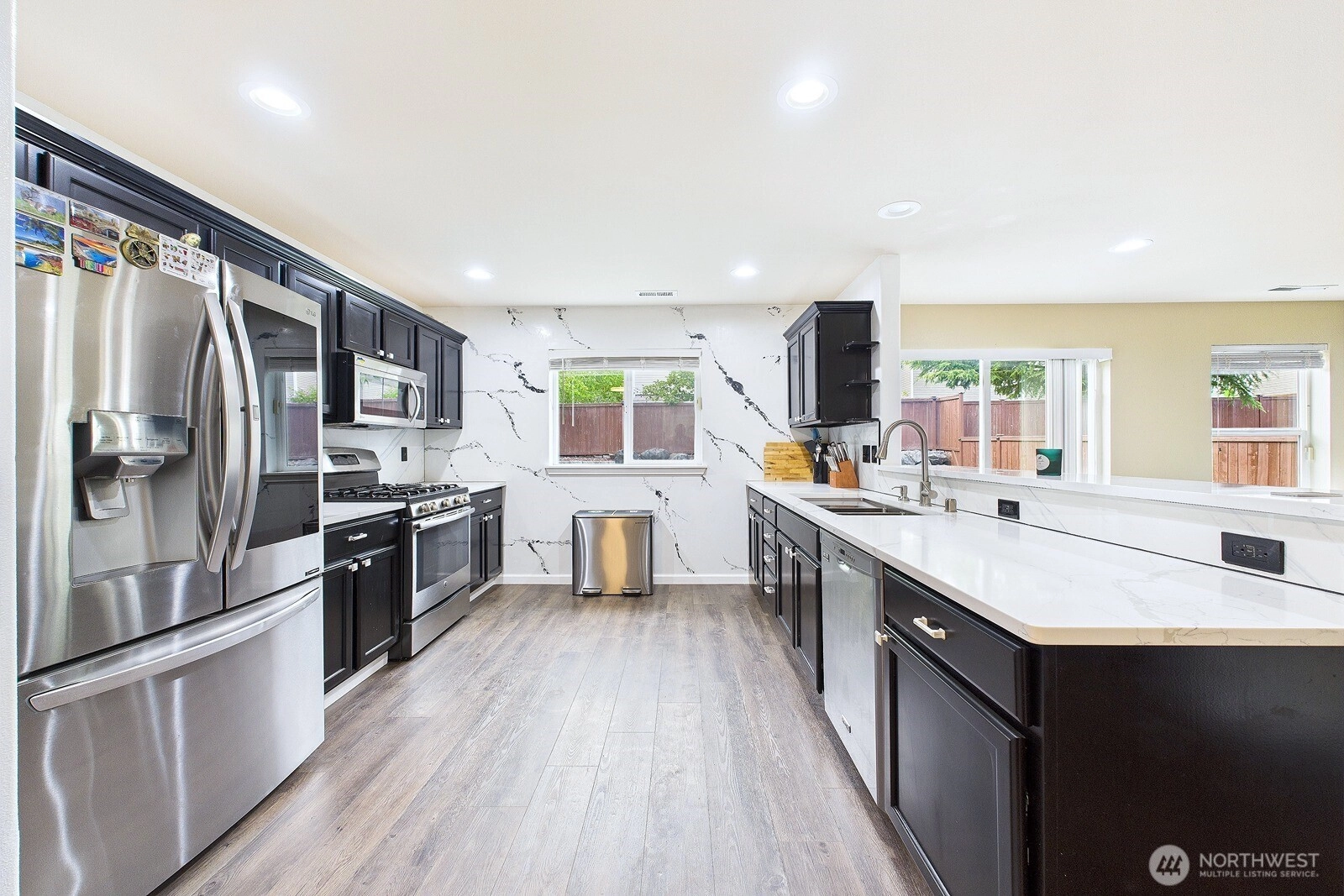 Located in the heart of Bonney Lake, this beautifully updated corner-lot home is just minutes from shopping, dining, parks, Lake Tapps, Costco, and easy Hwy 410 access. Inside, enjoy a recently remodeled kitchen with modern finishes and a luxurious master bath designed for relaxation. Step outside to a new deck overlooking a spacious backyard—perfect for entertaining or play. A brand-new roof offers peace of mind, and the home sits in the highly sought-after Sumner-Bonney Lake School District. Combining style, comfort, and a prime location, this home is ready for you to move in and enjoy.