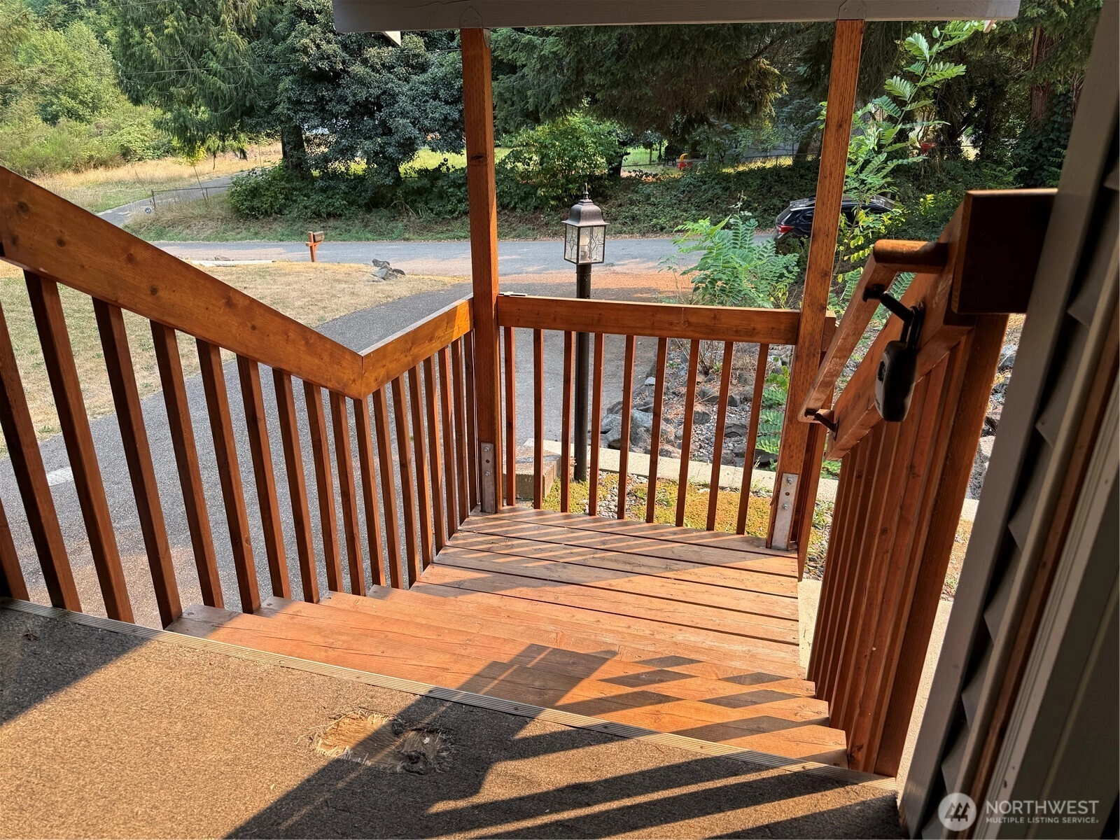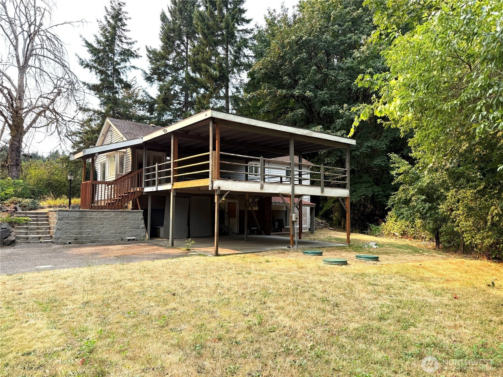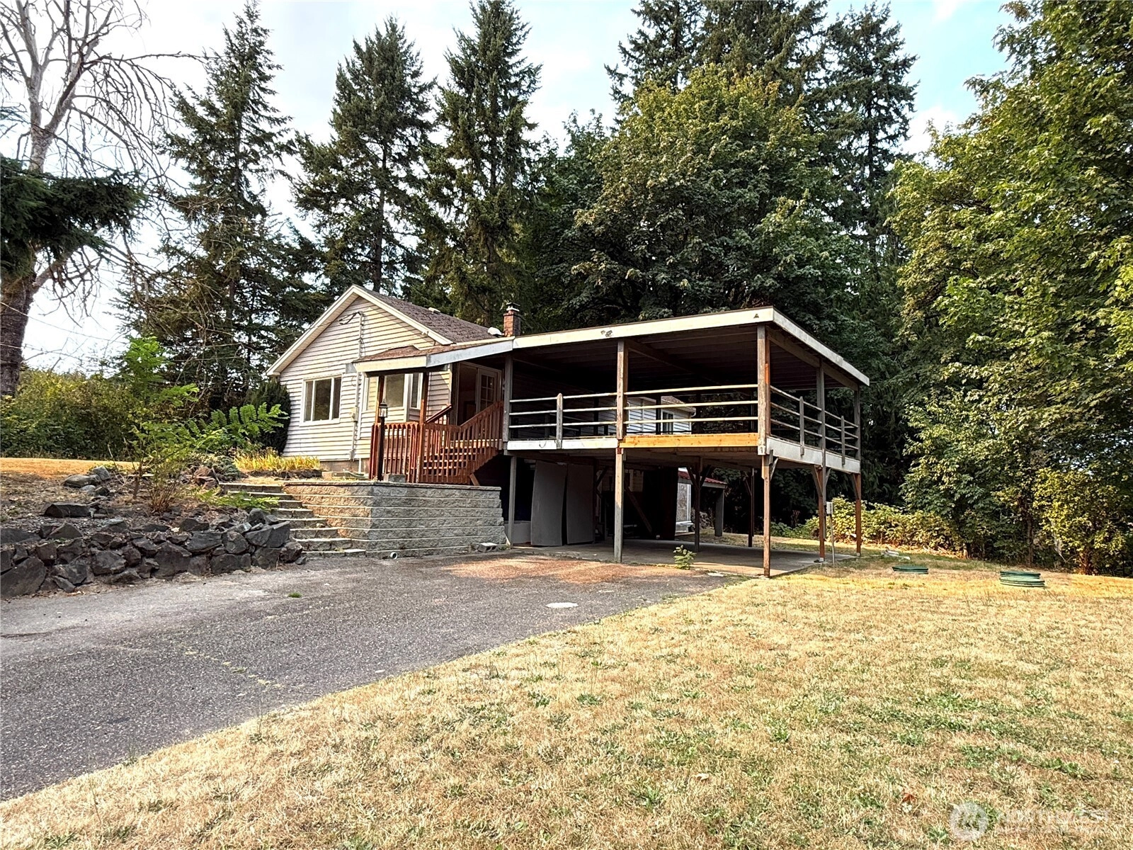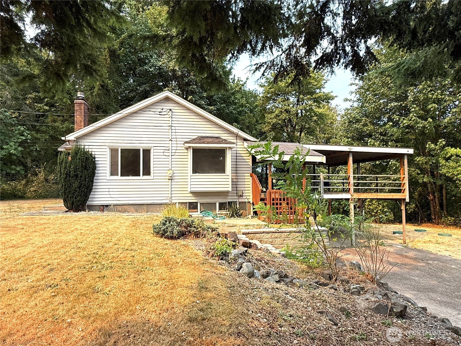 This, move-in-ready, 3-bedroom home offers an inviting open layout with a spacious kitchen at its heart. Recently refreshed with new paint, flooring, and countertops. The great room is anchored by a wood-burning stove set in a beautiful brick hearth..The expansive 700+ square foot covered patio, situated above a 4-car carport, adds outdoor living space.. The dry, walk-out basement with exterior access adds valuable living space, complete with a bathroom. On just under an acre, the tall hedge creates a secluded front yard, while the backyard is a peaceful wooded retreat with a year-round stream. All of this comes with the convenience of quick access to SR-16, making it easy to enjoy a rural setting without extending your commute.