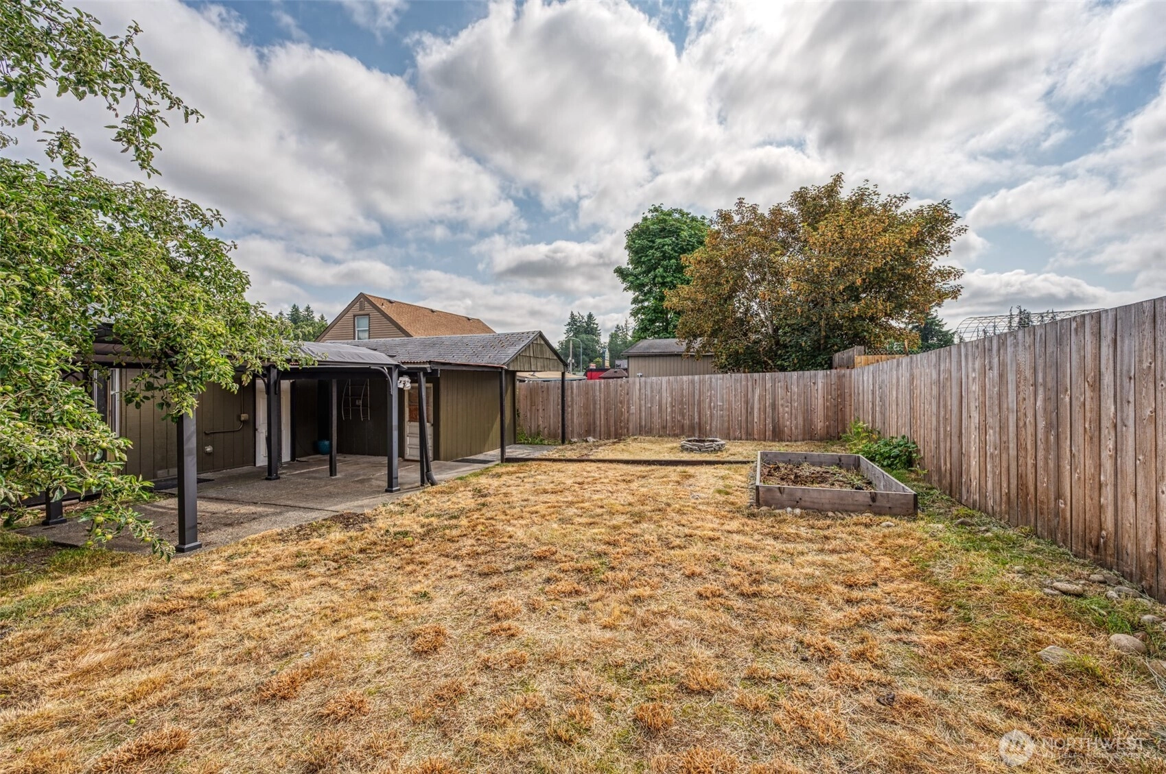 This updated 3-bedroom, 1.75-bath home blends charm & efficiency with original hardwood floors, designer lighting, & a kitchen featuring butcher block counters, green cabinetry, & a stone accent wall. The fully fenced lot includes gated RV/boat parking, detached garage, covered patio, gazebo, & raised garden beds, ideal for entertaining or relaxing. Highlights include solar panels, fresh paint, newer windows, modern fixtures, & a spacious primary suite with private access—perfect for guests or a home office. Located near PLU with quick, I-5-free access to JBLM, parks, & local favorites like Marzano’s. Don’t miss the chance to assume a LOW INTEREST loan at 4.25%! & enjoy energy-efficient living.