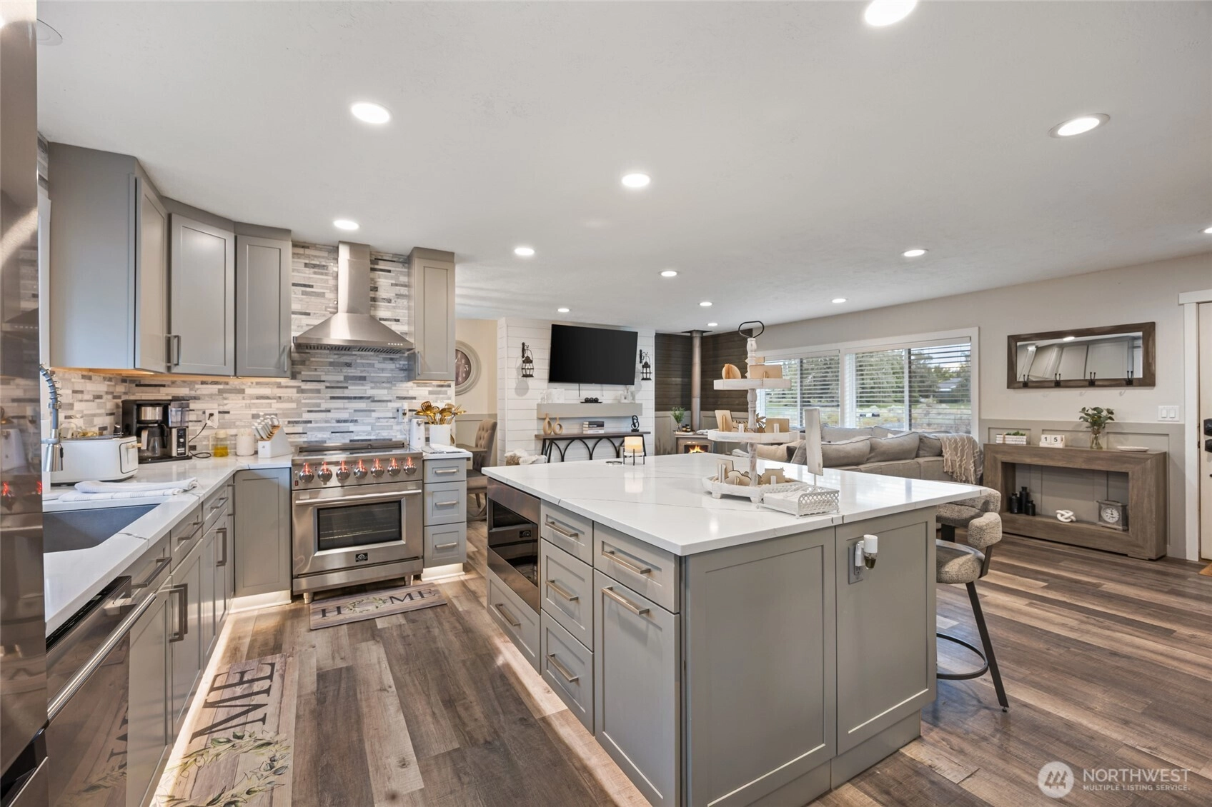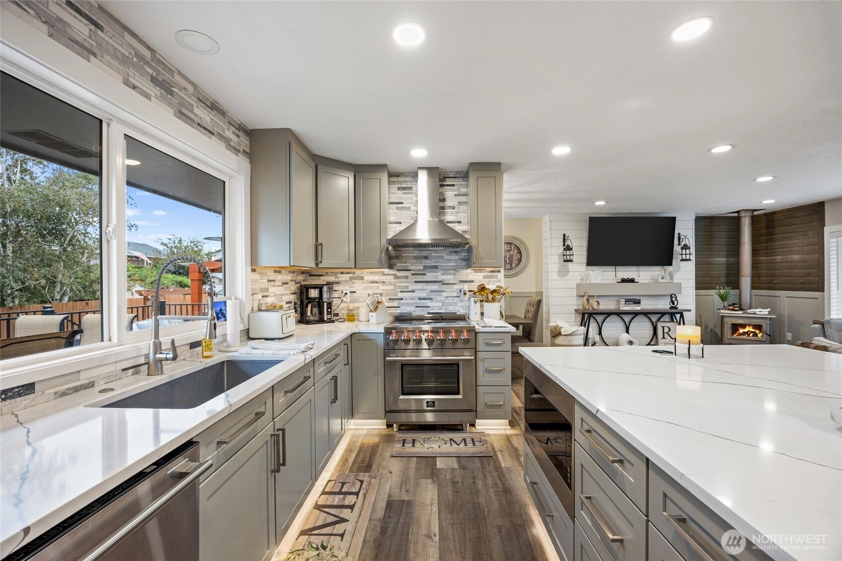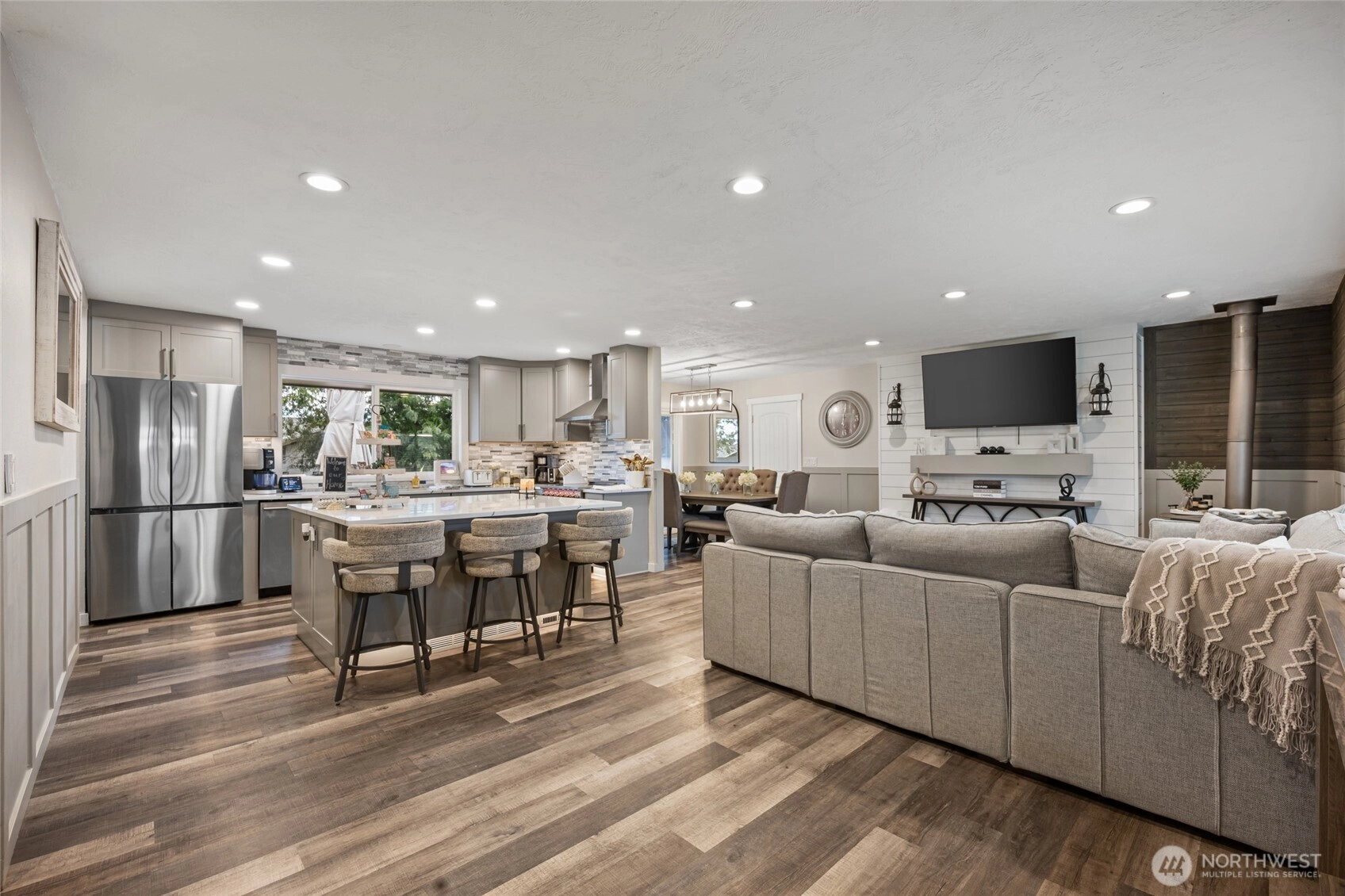 Beautifully remodeled 6-Bed, 3-Bath Home on Lakeshore Drive! This fully updated home offers modern comfort & style inside & out. Exterior highlights include fresh paint, new siding w/ stone veneer accents, 2 outdoor entertaining spaces, a vented greenhouse, raised garden beds & an oversized fenced double lot w/ mature landscaping, ugs & drip system. The massive 3-car garage fits up to 4 vehicles, plus there’s additional RV/boat parking. Step inside to an open-concept living area featuring updated flooring, a cozy fireplace & a custom kitchen w/ ss appliances, an oversized island & durable hard-surface countertops. Upgrades continue w/ enhanced electrical, a wet bar for entertaining, a spacious primary suite offering a walk-in tiled shower.