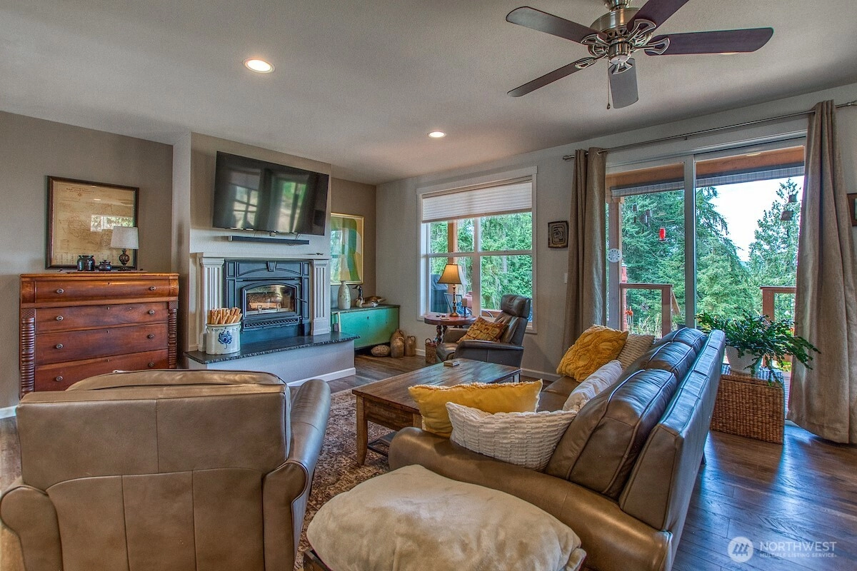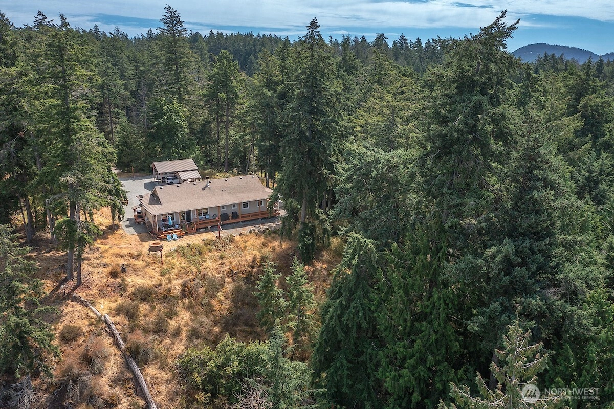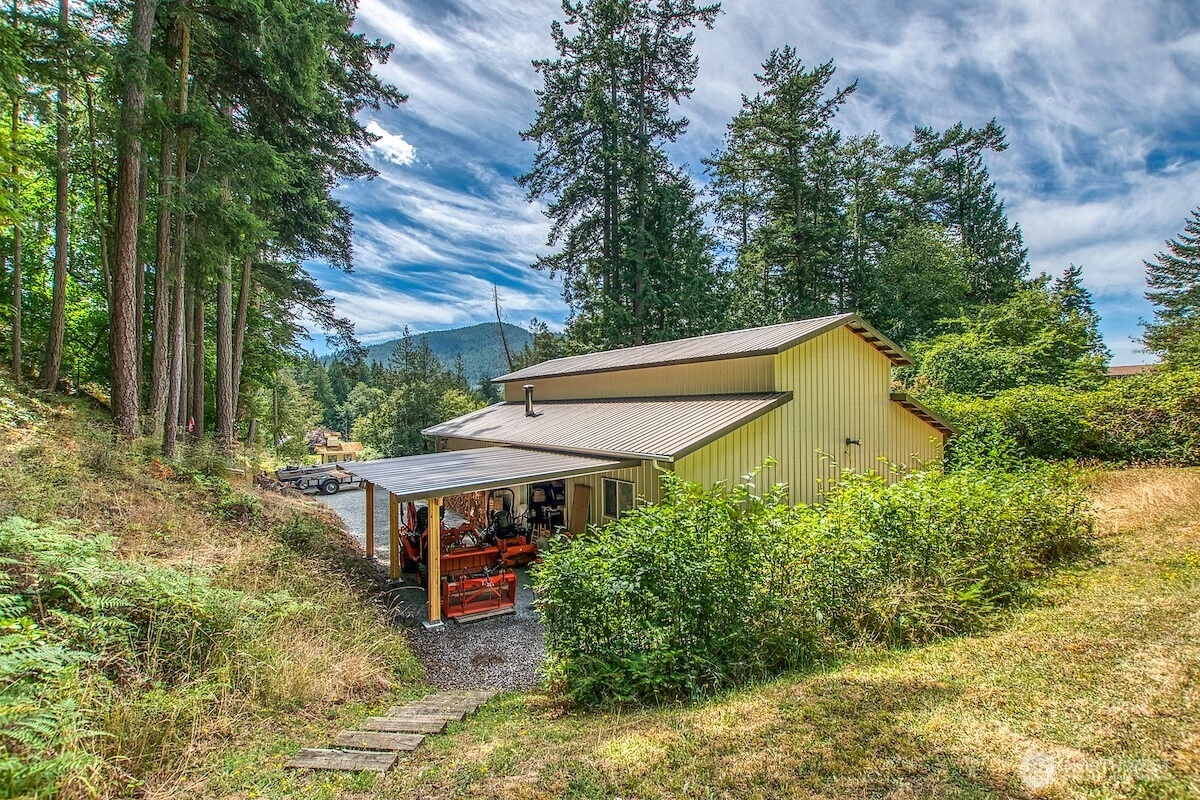 Sunny western exposure from 1800 sf, 3 bedrm 2017 Timberland Modular on 4 diverse acres with pasture, shop/barn and 2-bay local timber- framed carport. Packed with extras: Viking stainless appliances w/ propane range, airy kitchen w/ center island & walk-in pantry w/ chest freezer, engineered hardwood floors, cedar decks w/ covered porches, fire pit & 3 cords of ready to burn firewood to enjoy sunsets over Waldron. Features include "smart" Geo Spring water heater, heat pump/mini split AC, propane BBQ hookup, smart thermostats and autostart Generac 11kw generator. Take the ATV to the 36x48 Texmo heated barn/shop with 14' center door, insulated pump house, thriving orchard and pasture/garden space. Near West Beach and Eastsound Village.