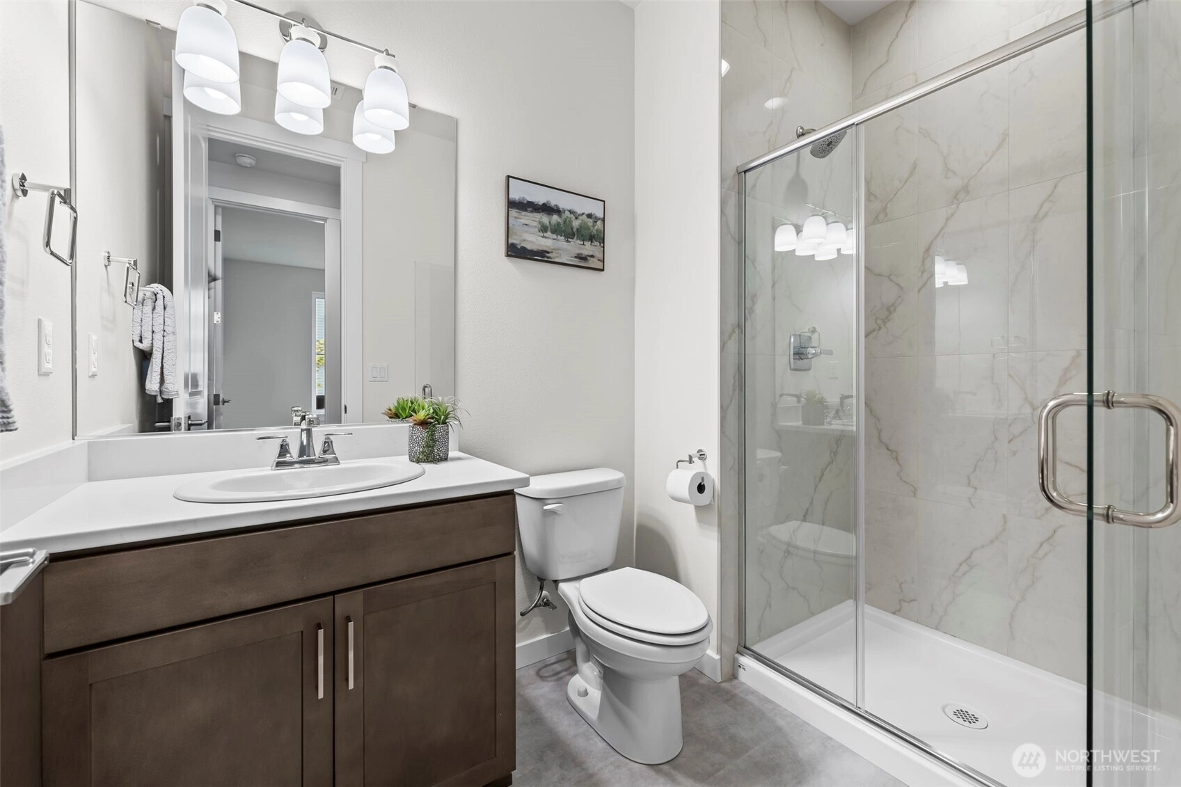 Welcome to Mountain Glen by JK Monarch Fine Homes. Homesite 13 offers this popular design w/ a little bit of something for everyone! 3 car garage, 4 bedroom, loft, den/office w/ 3/4 bath on main. Featuring 8' interior doors, wrought-iron rails, mudroom bench/coathooks & quart galore. Kitchen: SS appls incl gas range w/ hoodfan, 42" upper cabinets w/ soft close feature, island w/ spacious SS undermount sink. Dining room opens to covered back patio. Primary suite is a true retreat w/ coffered ceiling detail, walk-in closet & spa inspired ensuite offering dual sinks, glass/tile shower & soaking tub. Heat Pump (A/C), garage exterior door to yard, fully fenced and landscaped w/ front yard irrigation. $20K towards closing costs or buydown.