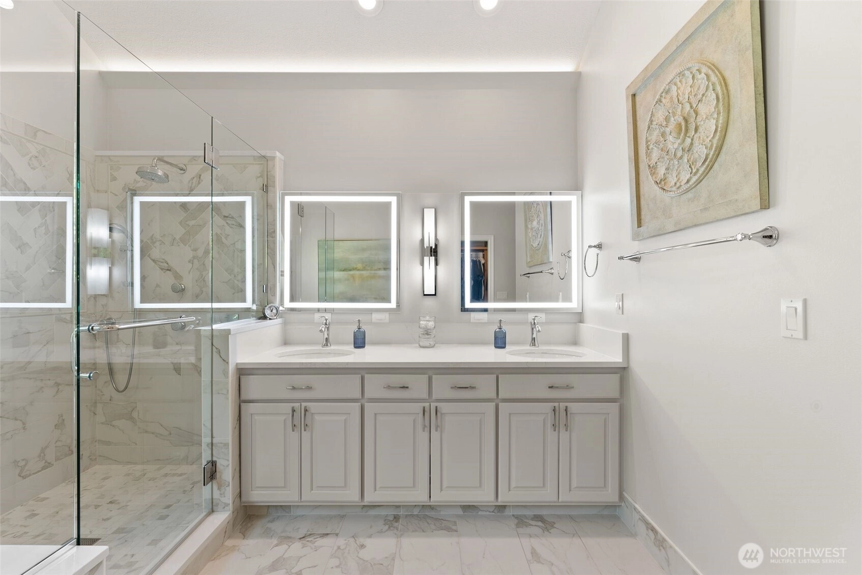 Welcome to 1611 E Heritage Lane—an elegant home in gated Legacy Hills community, located within the top-ranked Mead School District. A grand entrance with soaring ceilings opens to formal and informal living spaces, anchored by two cozy gas fireplaces. The gourmet kitchen is a chef’s dream with quartz counters, marble backsplash, and Sub-Zero, Dacor and Miele appliances. The main-floor primary suite features heated floors, a soaking tub, backlit mirrors, and a custom closet. The daylight walkout basement includes two additional bedrooms, a wet bar with wine fridge, and ample storage. Step outside to a professionally landscaped backyard oasis with stone paths, boulder accents, and a tranquil pond water feature. Welcome Home!