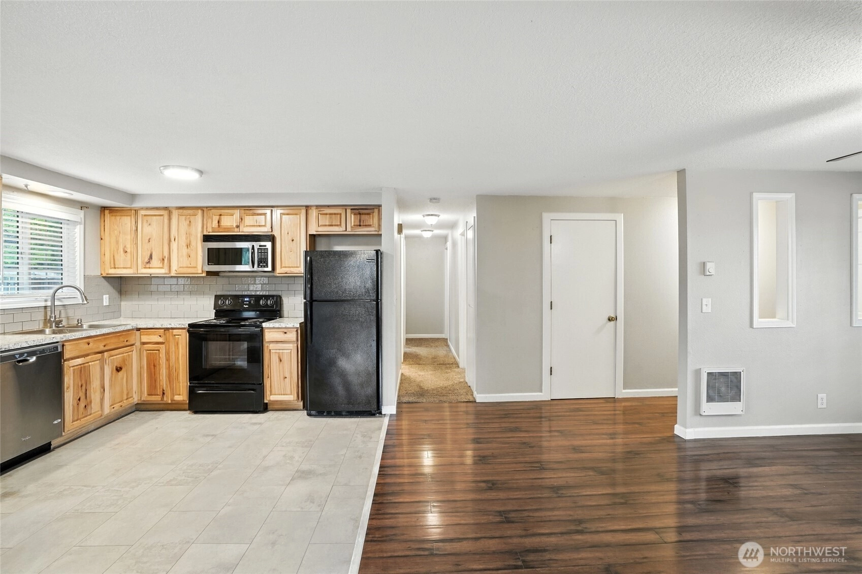 Welcome to this charming one-level, 3-bed, 2-bath home perfectly situated on a spacious .27-acre lot. Offering comfort & convenience, this single-level property features modern updates throughout, including a new roof, LVP flooring, tile, & carpet (all in 2017). Step outside onto the low-maintenance Trex deck (2015), ideal for summer barbecues, gatherings, or simply relaxing in your fully fenced backyard. Inside, you’ll love the open & functional layout, offering plenty of space for everyday living & entertaining. Located just a short stroll to Main Street Battle Ground, this home places you within walking distance to shopping, dining, & local favorites. Don’t miss this opportunity to own a move-in ready home with a fantastic location!