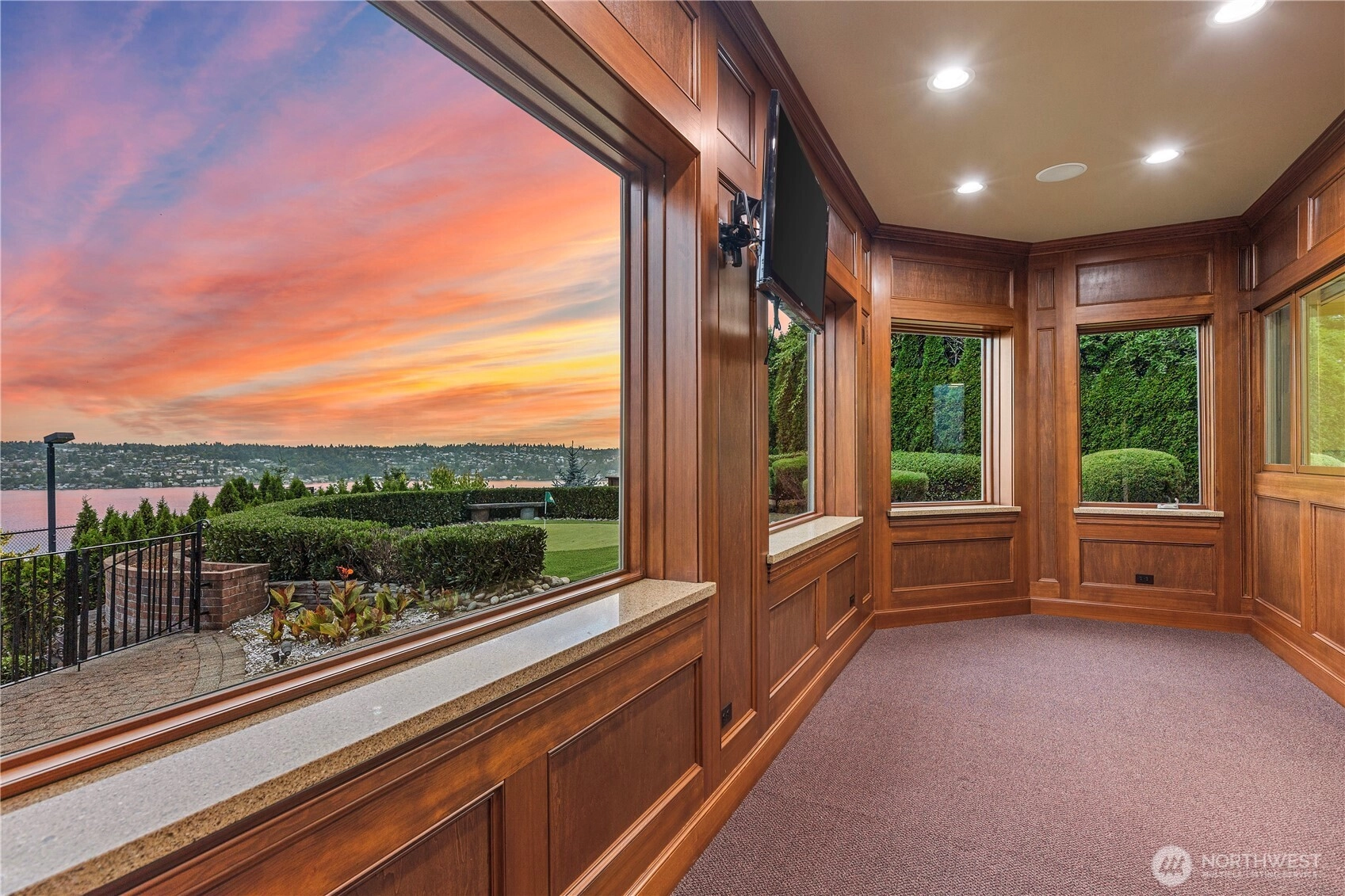 Perched above Lake Washington with expansive views, this custom estate showcases exquisite cherry millwork throughout. The main-level primary suite opens to a private patio, and upstairs, an additional primary suite with its own terrace complements two more ensuites. Entertain effortlessly in the gourmet kitchen with high-end appliances and butler’s pantry. The lower level transforms into a resort-style retreat with indoor pool, spa, sauna, gym, theater, billiards room, and wine cellar. Outside, expansive decks, a sport court, putting green, and professionally landscaped grounds frame the serene lake backdrop. Experience refined waterfront living in a singular setting.
