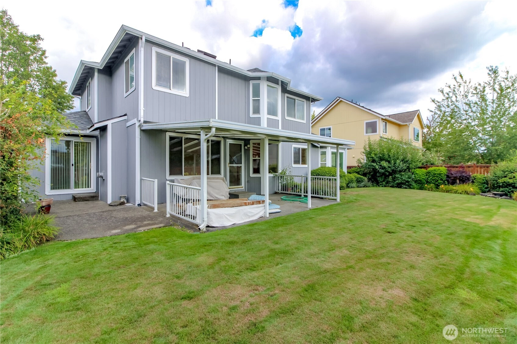 Beautiful home in the highly sought-after Copperwynd neighborhood! Spacious floor plan with formal living and dining rooms plus multiple living areas to make your own. The kitchen offers abundant cabinet space, plenty of counters, and large windows that fill the home with natural light. Opportunity for a main-level room with bathroom/shower adds flexible living options. A huge 3-car garage provides space for vehicles, storage, or hobbies. Step outside to a generous yard with a covered patio for year-round entertaining and a tranquil waterfall feature. Mature landscaping completes this move-in ready home—a true blank canvas to create your dream in one of the area’s most desirable communities. Close to Mt Rainier, hiking, parks & shopping.