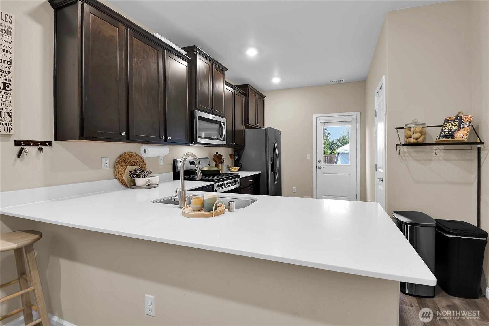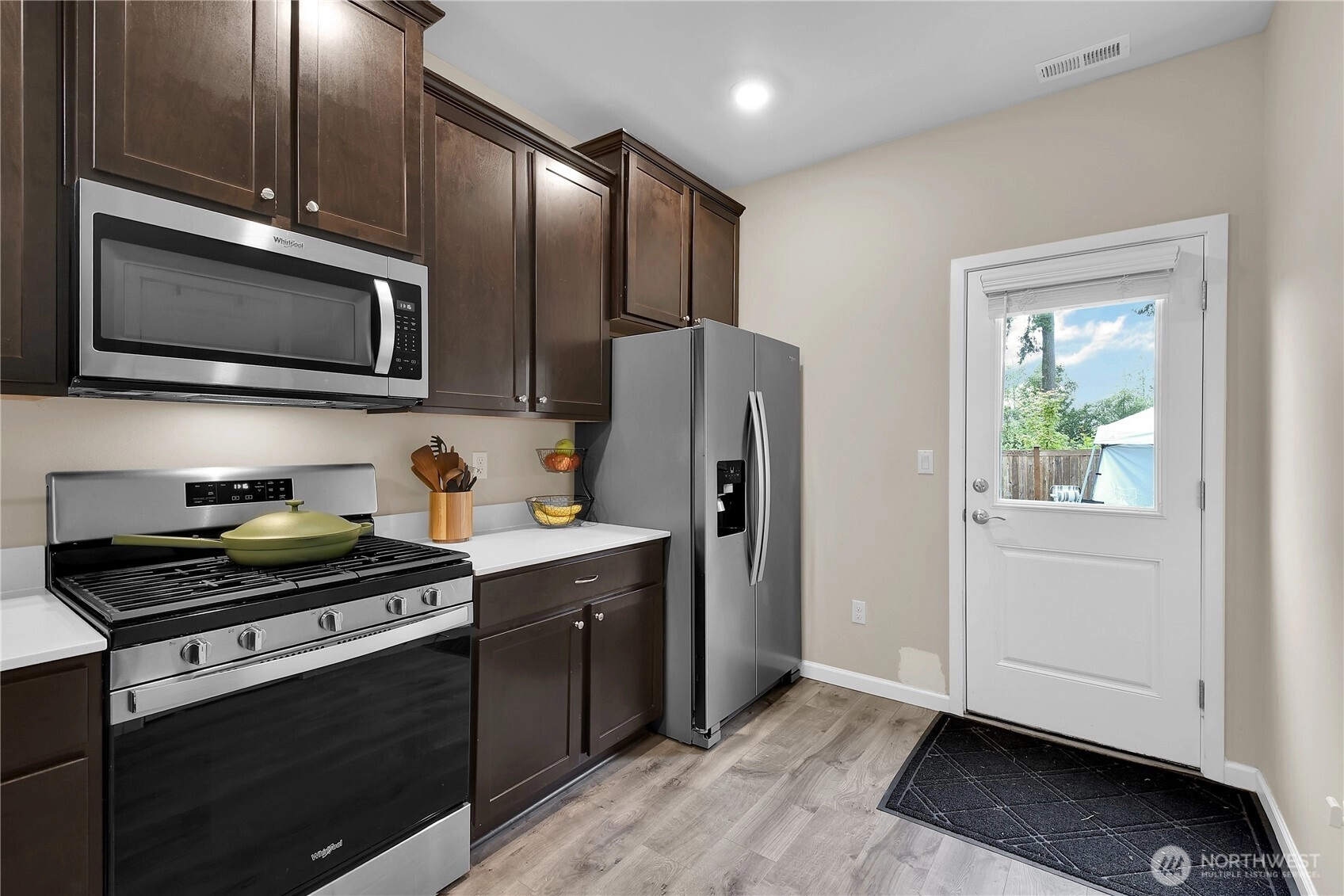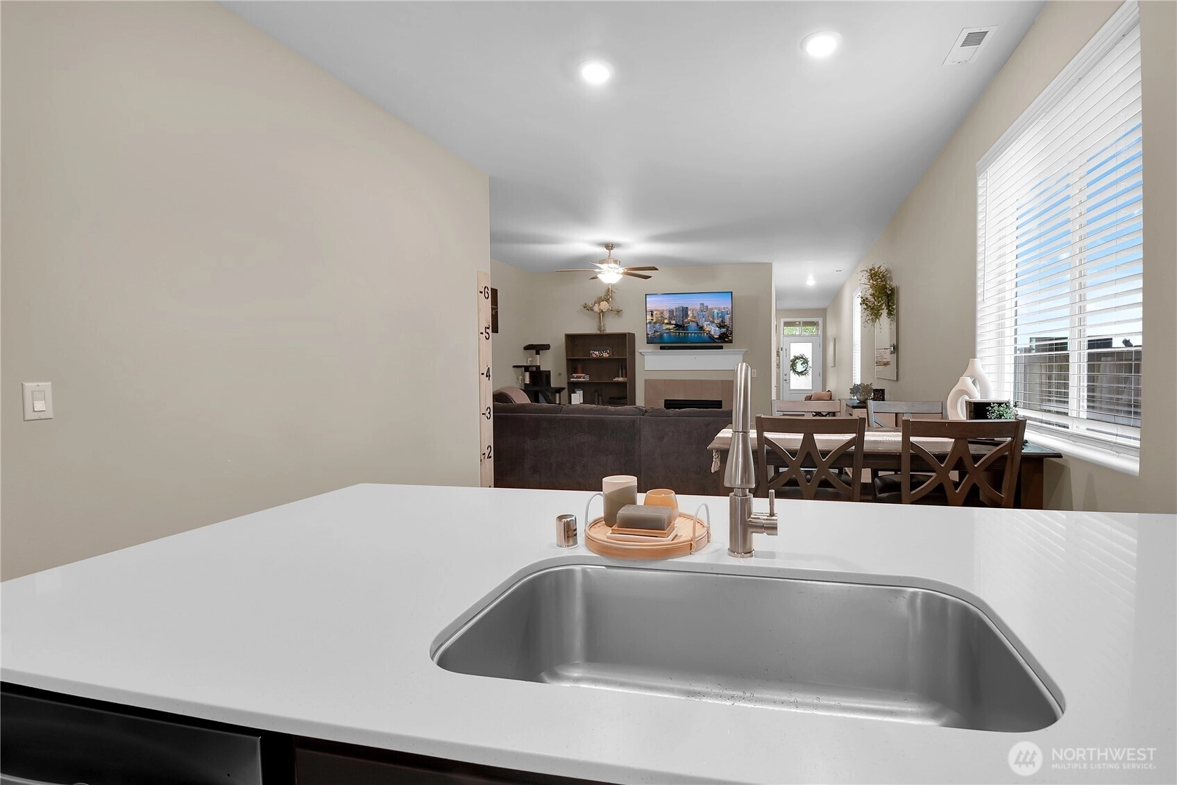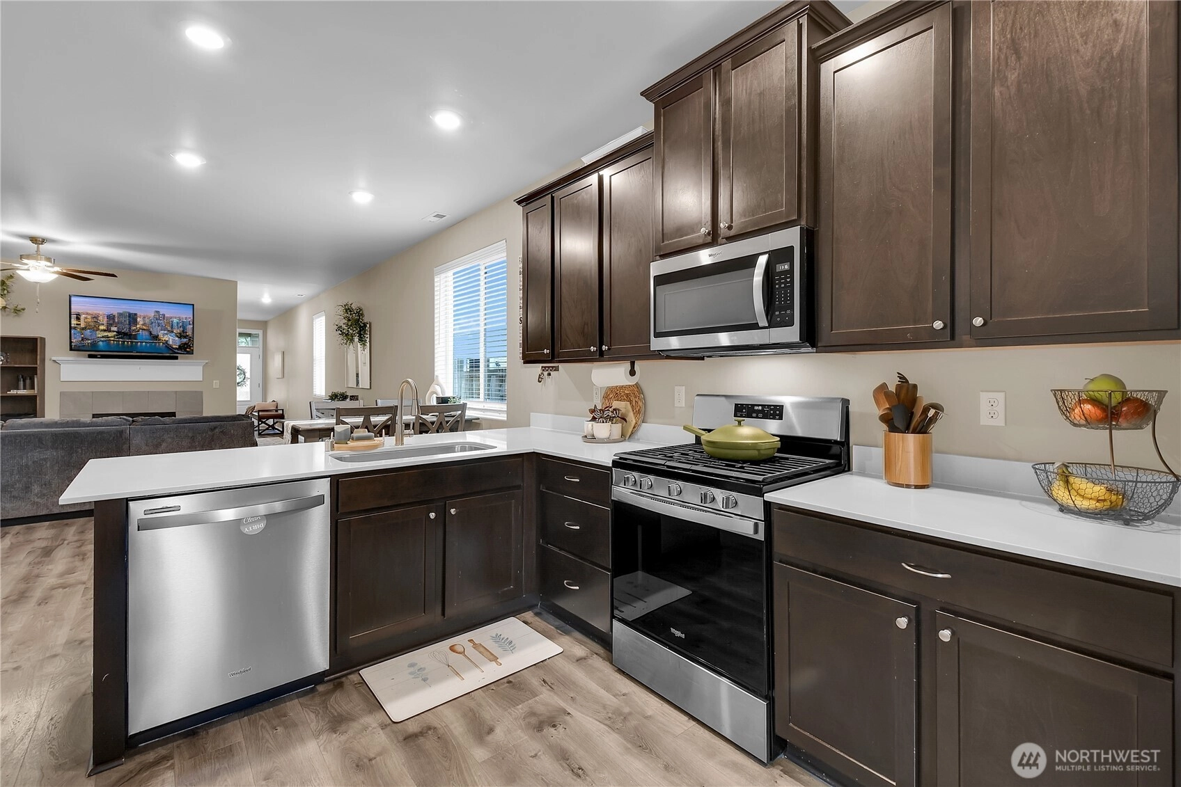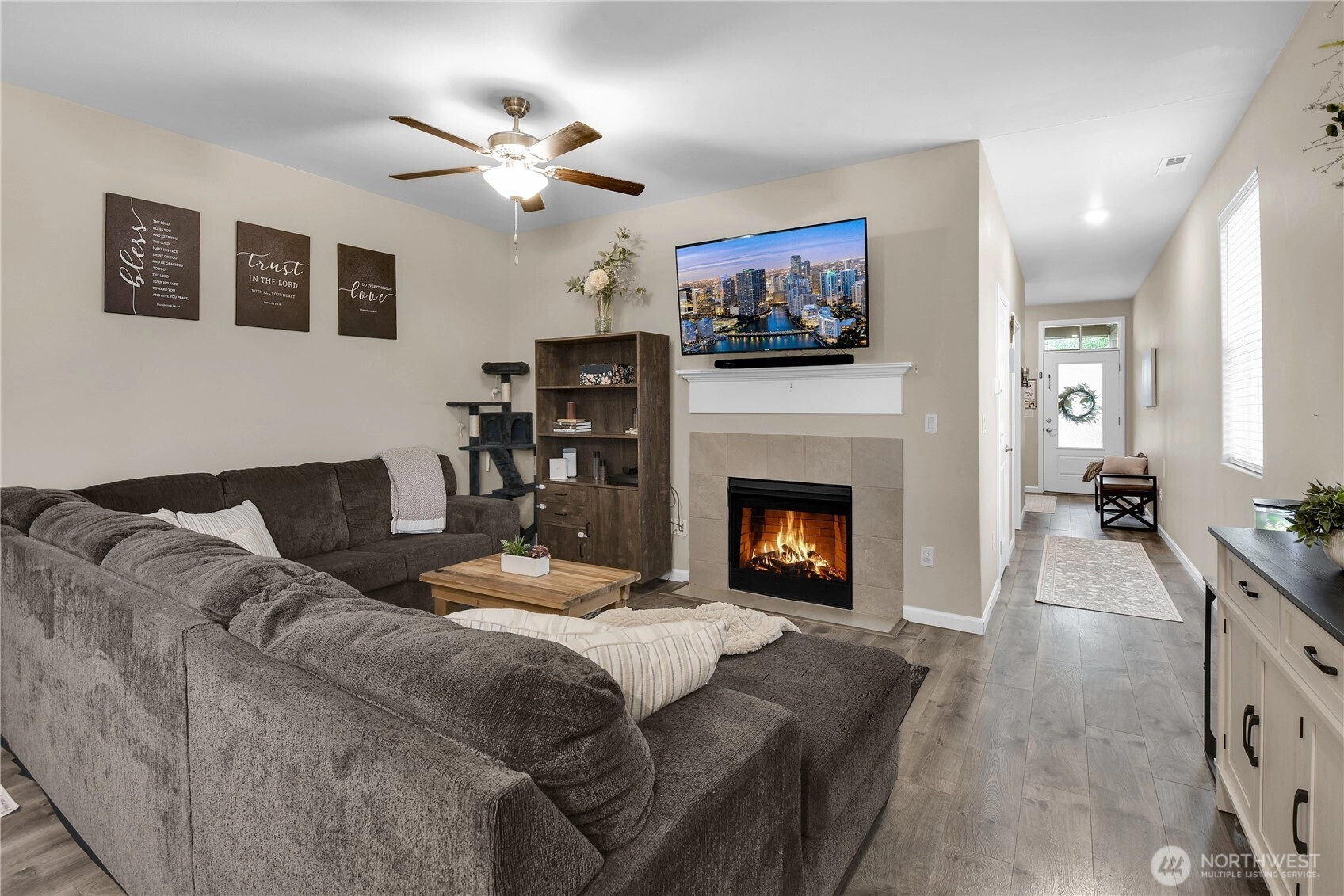 Tucked in a quiet cul-de-sac, this one-owner gem offers both comfort and convenience! Just minutes from Hwy 9, shopping, and top-rated Lake Stevens schools. Step inside to soaring ceilings and sun-filled windows, with an office nook perfect for work or hobbies. Enjoy easy-care laminate floors, a cozy gas fireplace, and a kitchen featuring quartz counters, stainless steel appliances, and a spacious pantry. The primary suite boasts a walk-in closet and a beautifully tiled shower. Outdoors, relax in the fully fenced backyard with greenbelt privacy. Extras include a finished garage, custom screen door, vinyl blinds, and plenty of storage!