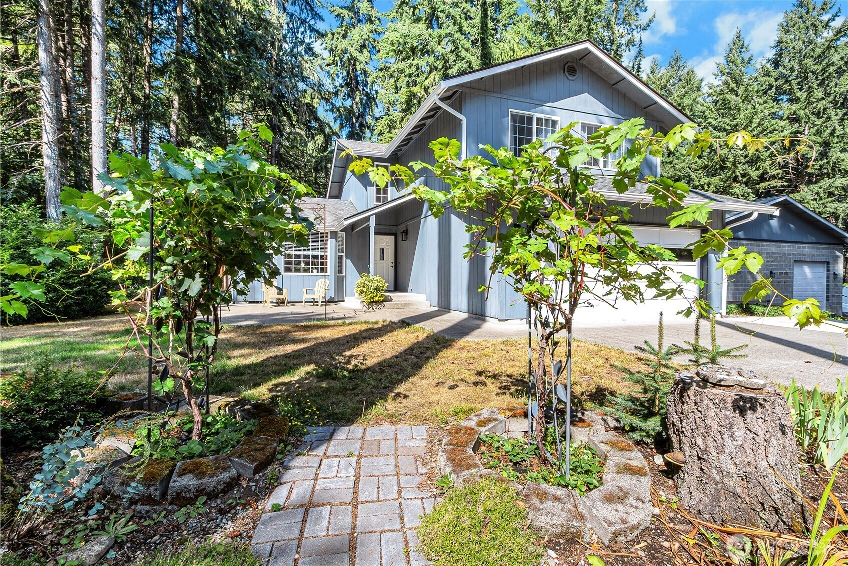 Tucked away yet close to town, this home invites you to slow down and savor every space. Evenings gather under the covered patio by the crackling stone fireplace with the pond waterfall as your backdrop. Weekends bring projects or play in the 36x40 shop—room for RVs, hobbies, a game-day hangout upstairs, plus a 2-post car lift! Inside, a warm kitchen with granite and stainless will inspire your inner chef. Dining and living spaces are designed for connection and memories. Upstairs, the primary bedroom offers a quiet retreat with double closets and full bath. With updates—new furnace, roofs, deck, fences, and more—plus lawnmower included, this home blends country peace with town convenience. Welcome home to your next chapter in Rainier!