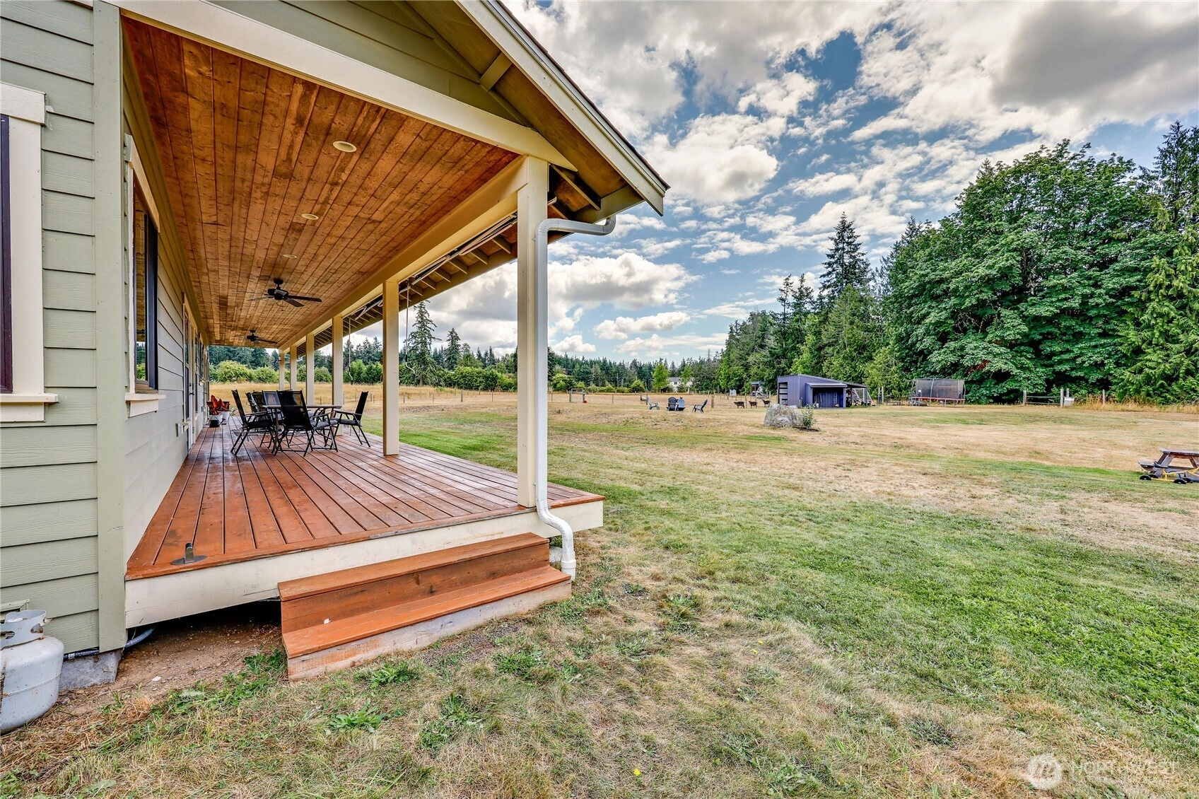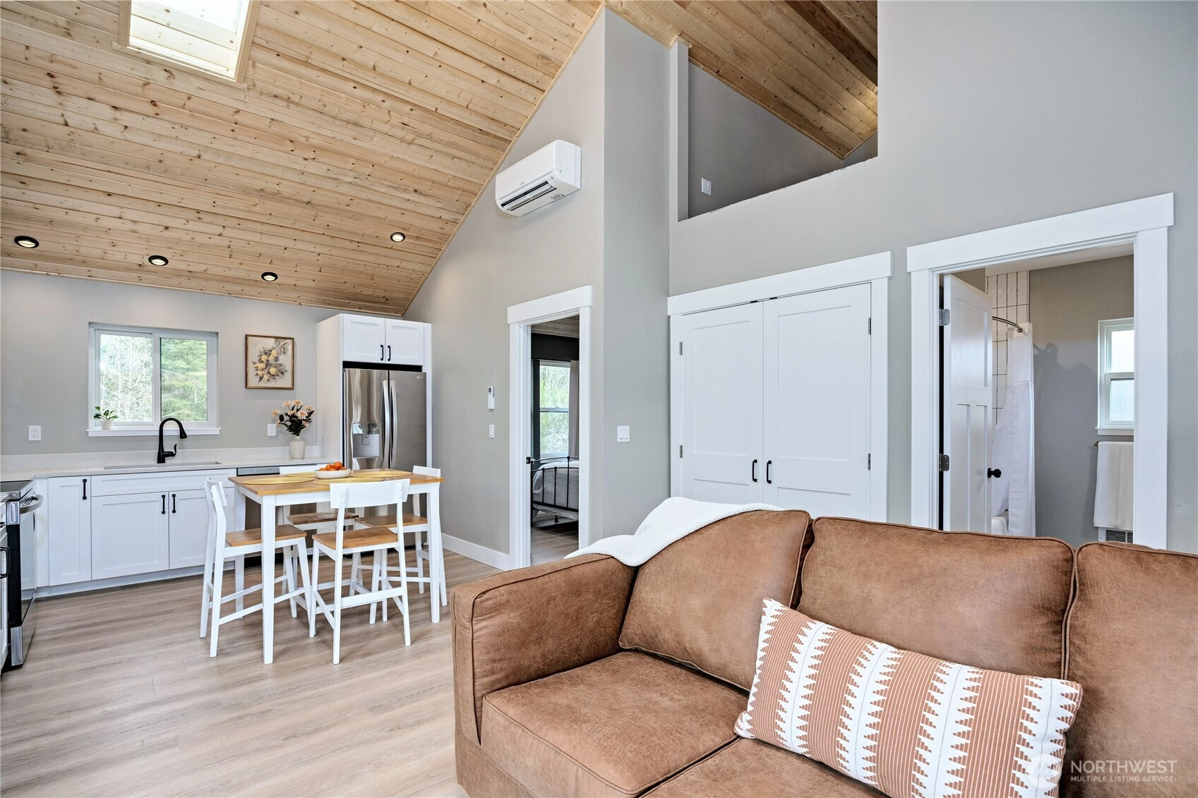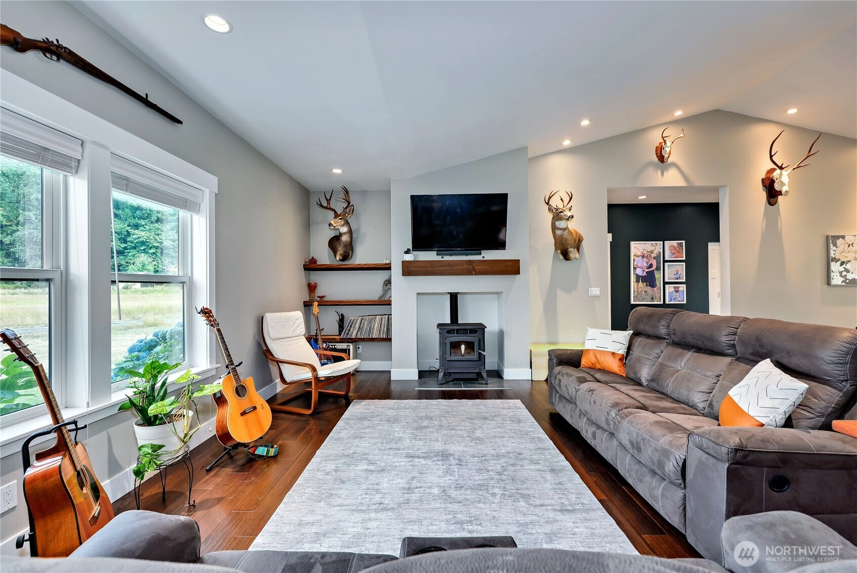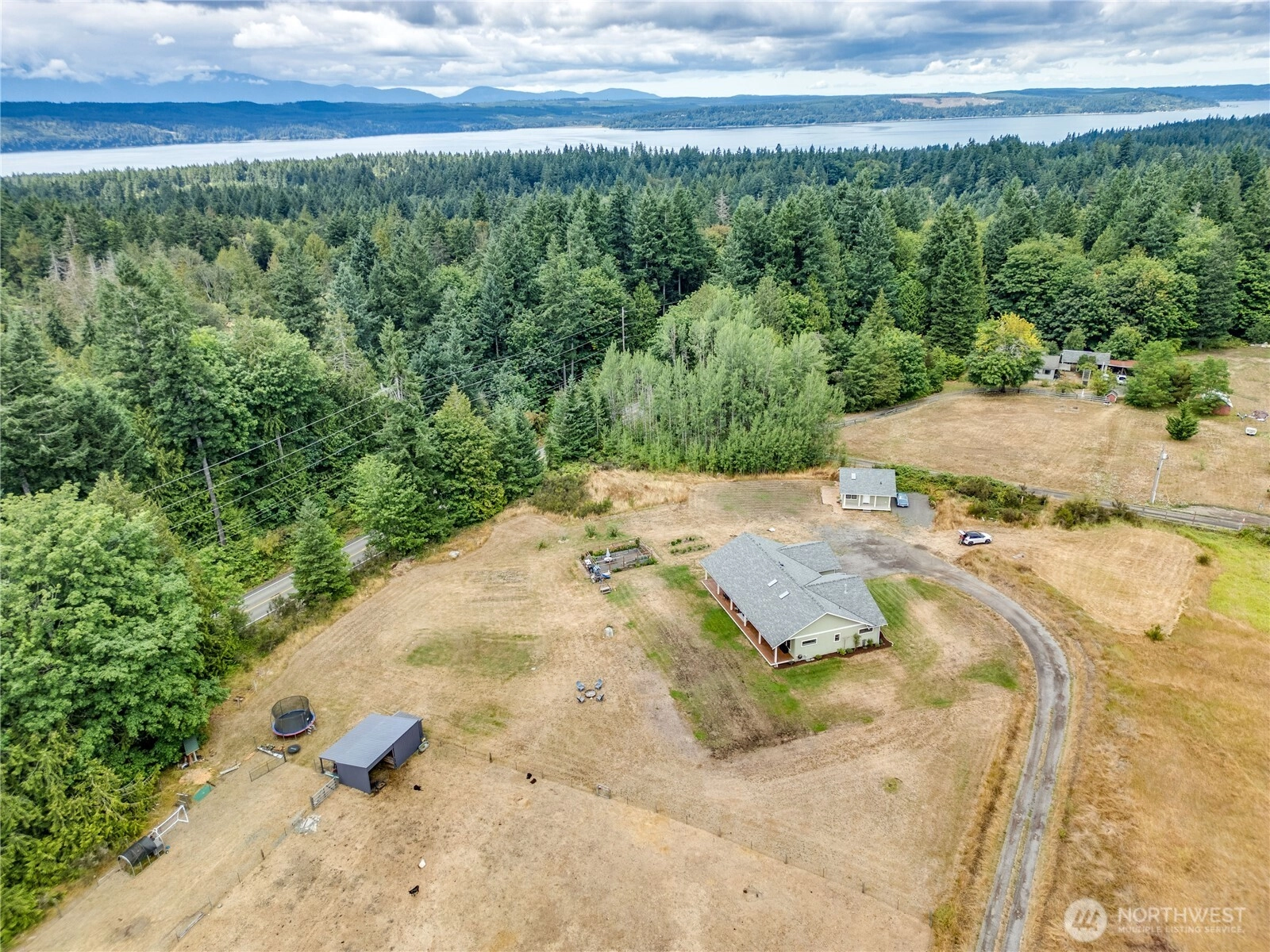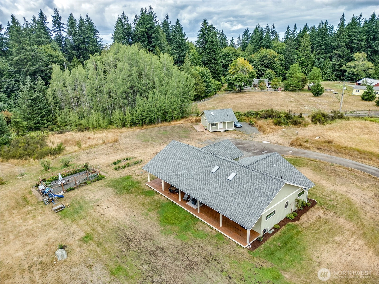 Welcome to your serene Poulsbo retreat! This charming rambler sits on 5 level and dry acres, perfect for your four-legged friends with a barn and fence already in place. Inside, offers a perfect blend of comfort and nature with vaulted ceilings and abundant natural light. The cozy wood stove, granite counters, large island, and stainless appliances make the kitchen a true standout. The oversized primary suite includes a 5-piece bath and a private deck. A separate guest cottage is perfect for multi-generational living or rental income. This property is your canvas for the best of PNW living—gardening, entertaining, or simply relaxing under the stars. With room to breathe and space to grow- don't miss this rare opportunity!