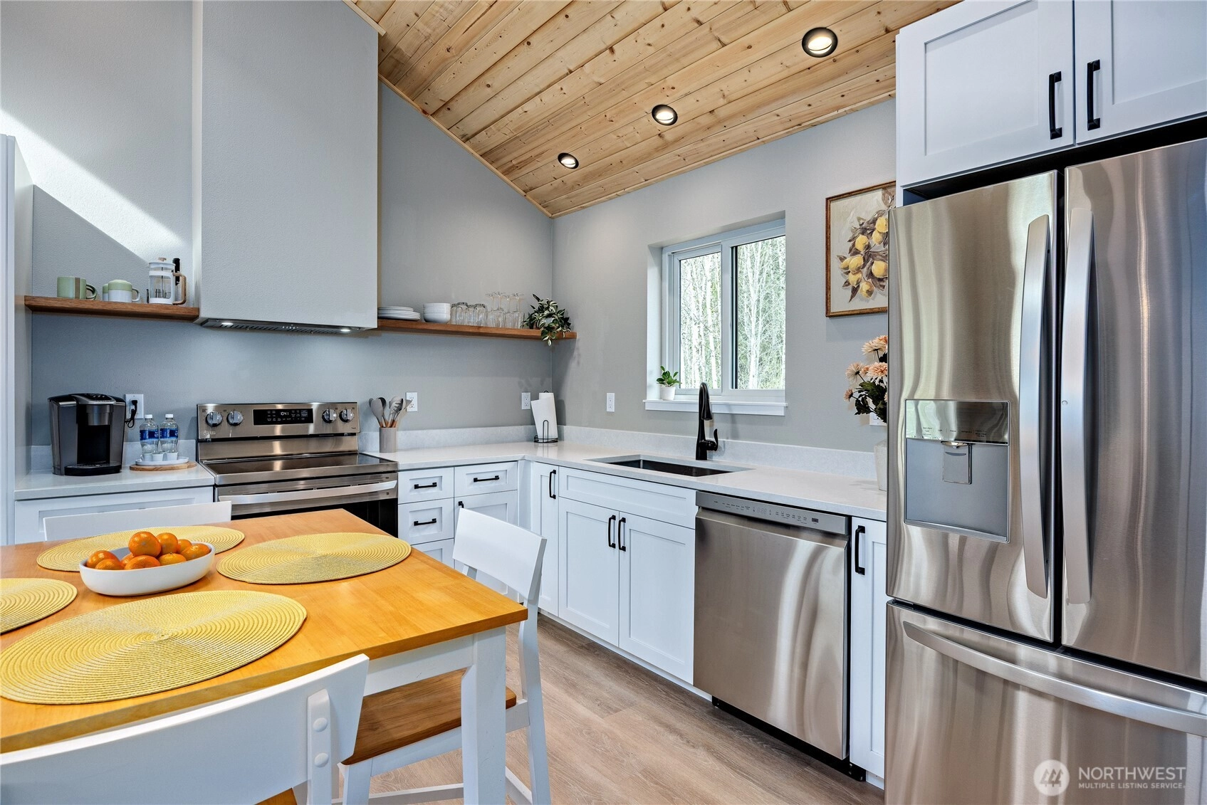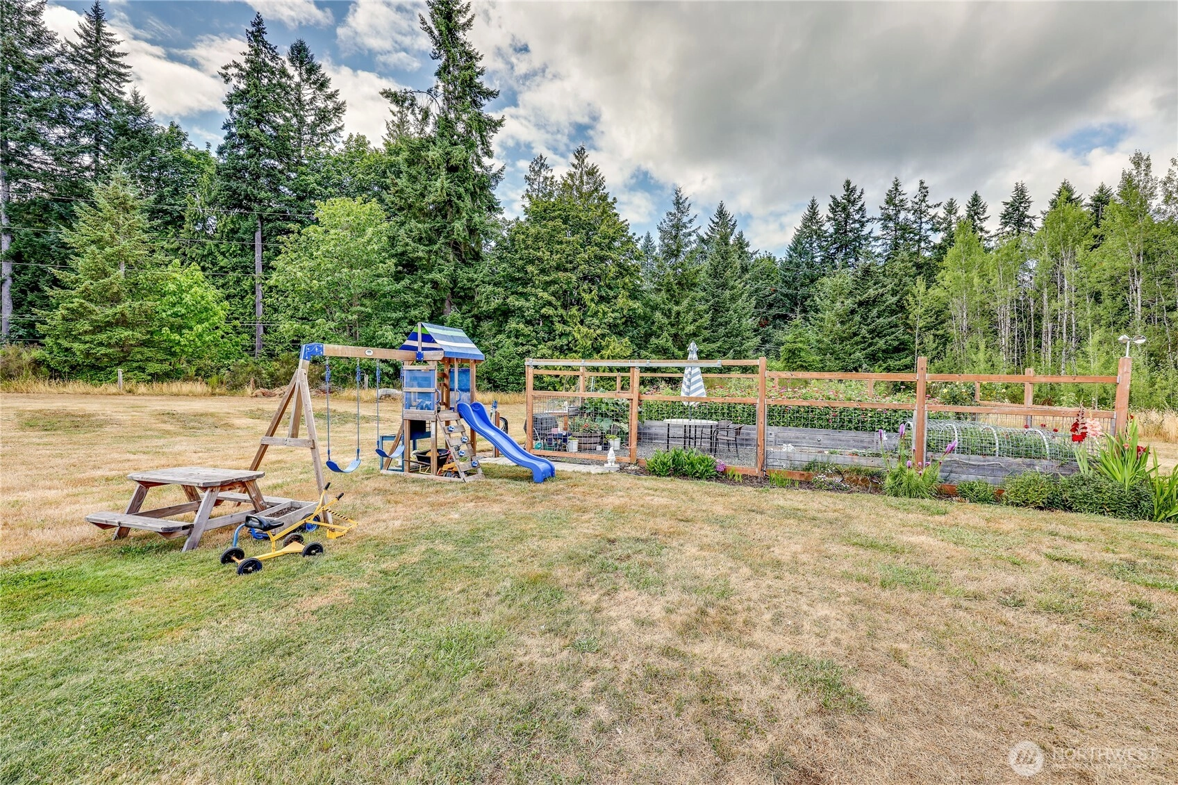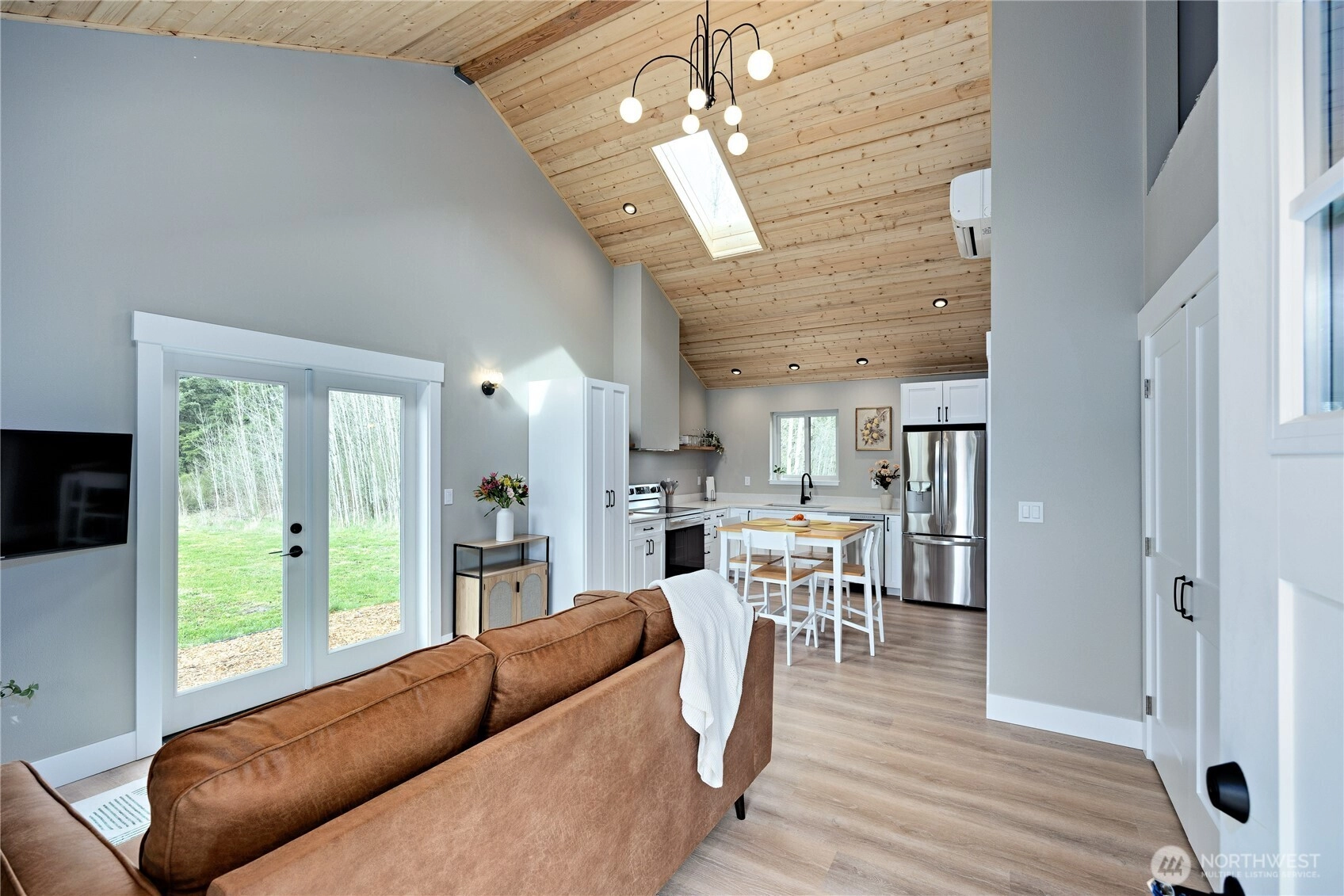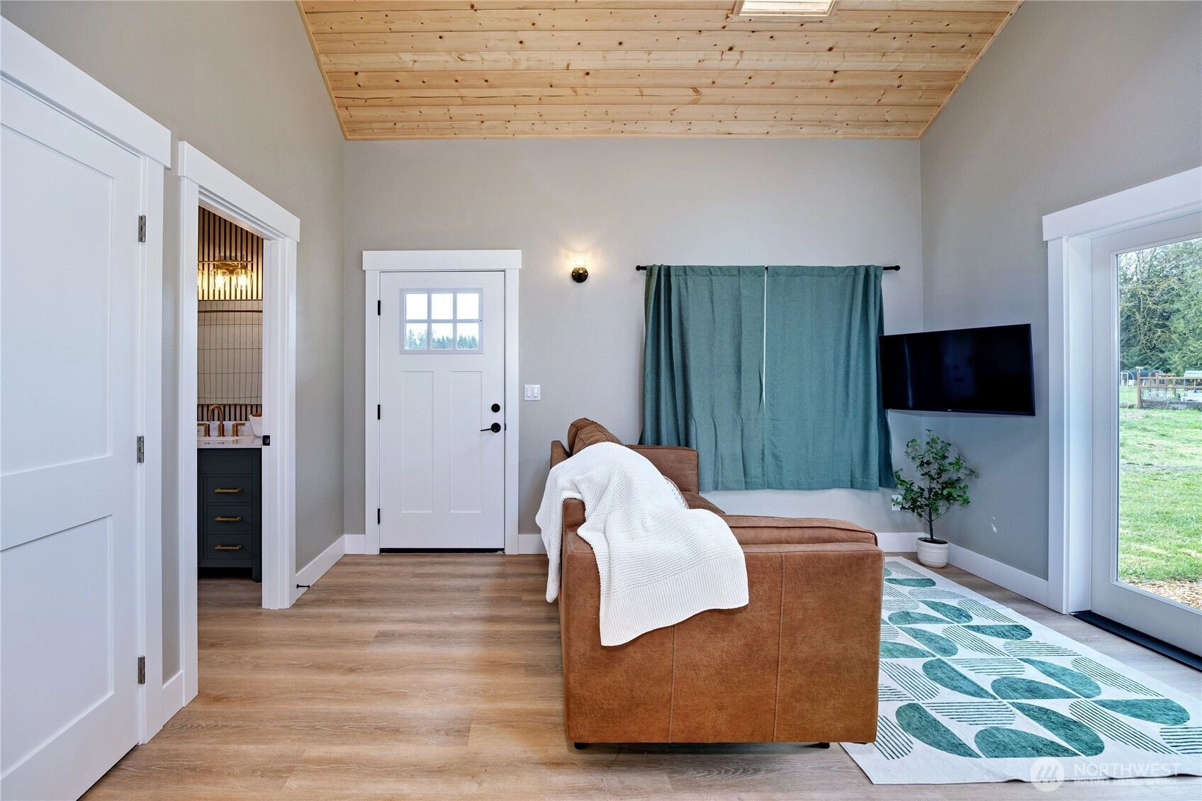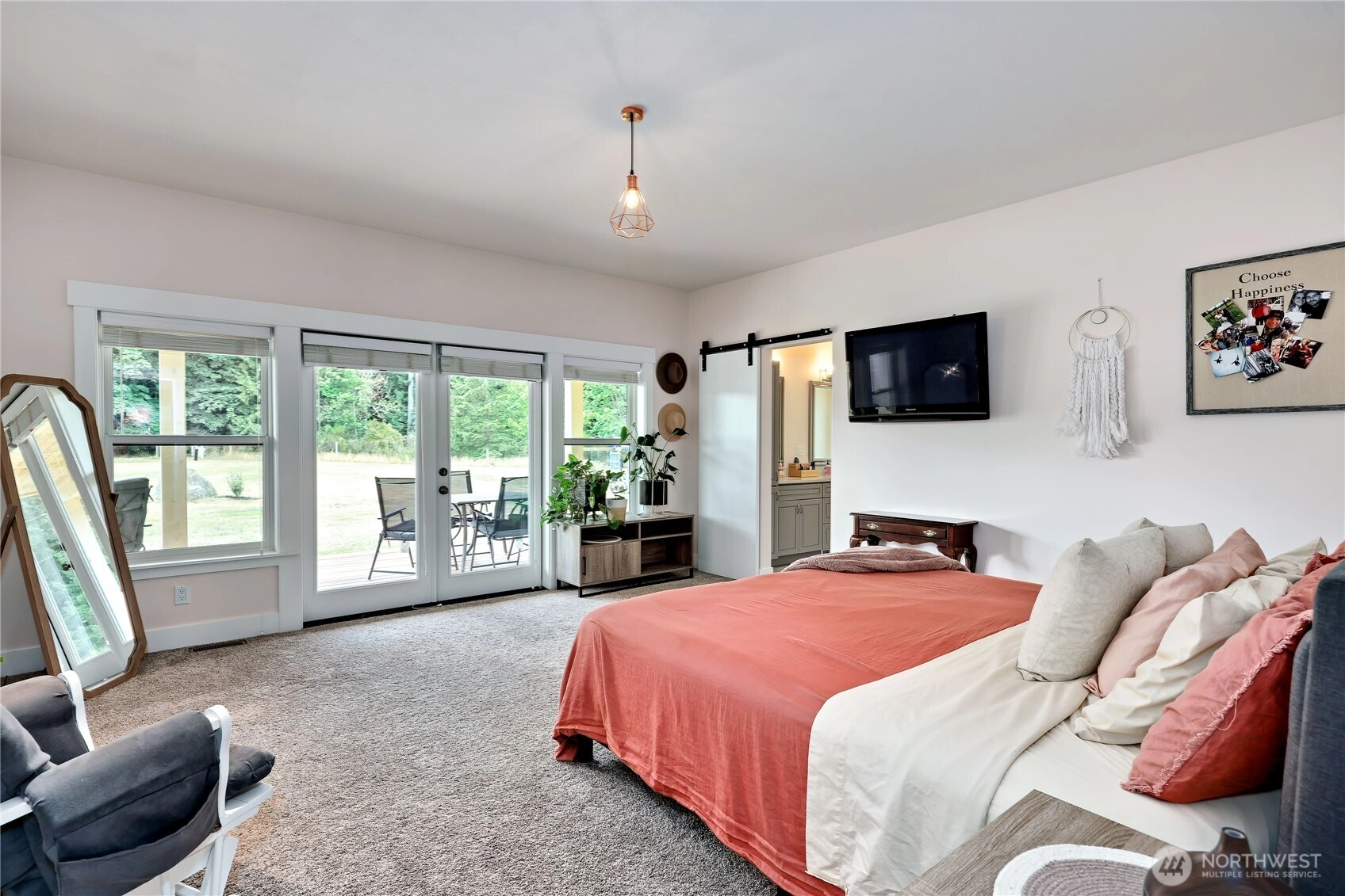 Welcome to your serene Poulsbo retreat! This charming rambler sits on 5 level and dry acres, perfect for your four-legged friends with a barn and fence already in place. Inside, offers a perfect blend of comfort and nature with vaulted ceilings and abundant natural light. The cozy wood stove, granite counters, large island, and stainless appliances make the kitchen a true standout. The oversized primary suite includes a 5-piece bath and a private deck. A separate guest cottage is perfect for multi-generational living or rental income. This property is your canvas for the best of PNW living—gardening, entertaining, or simply relaxing under the stars. With room to breathe and space to grow- don't miss this rare opportunity!
