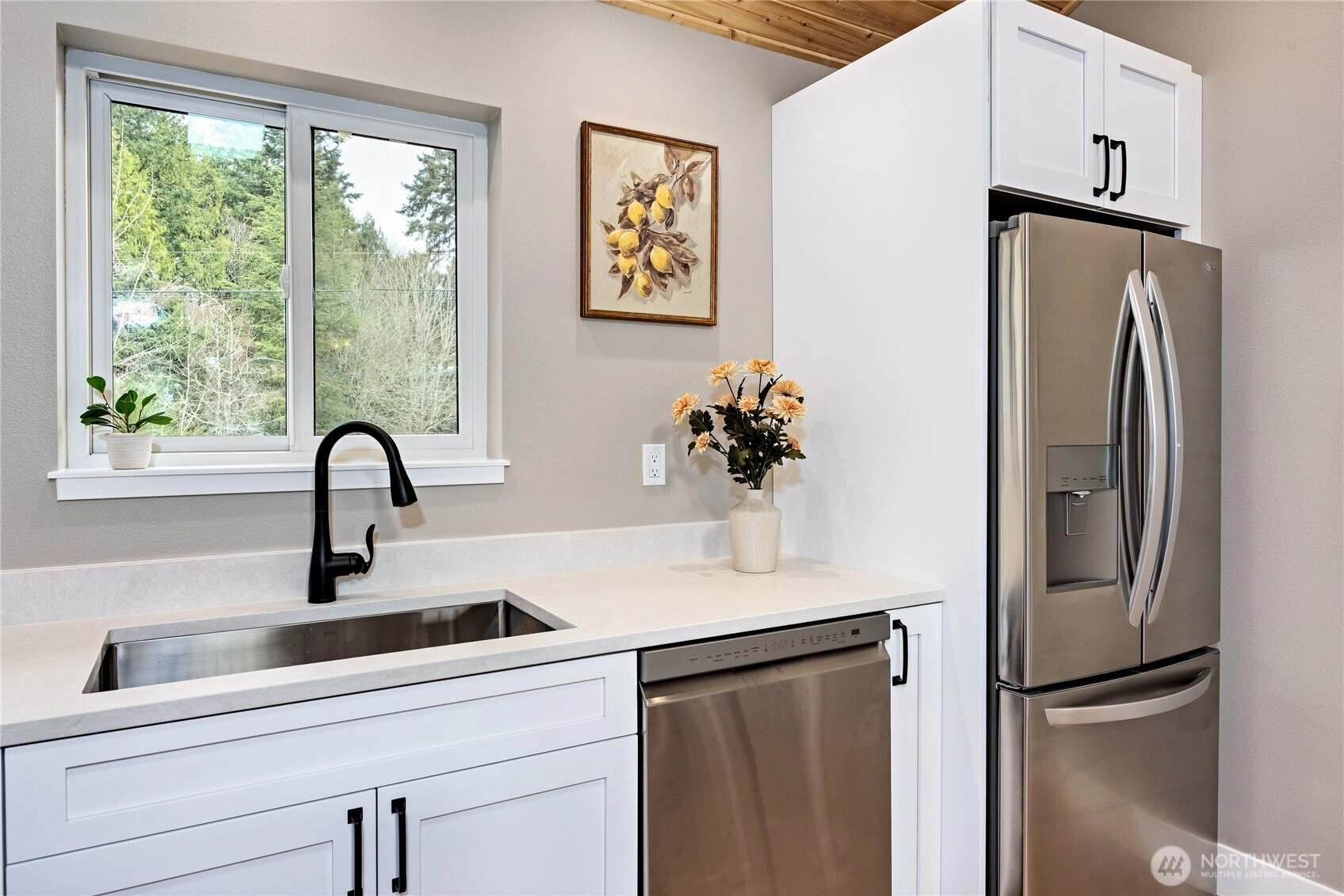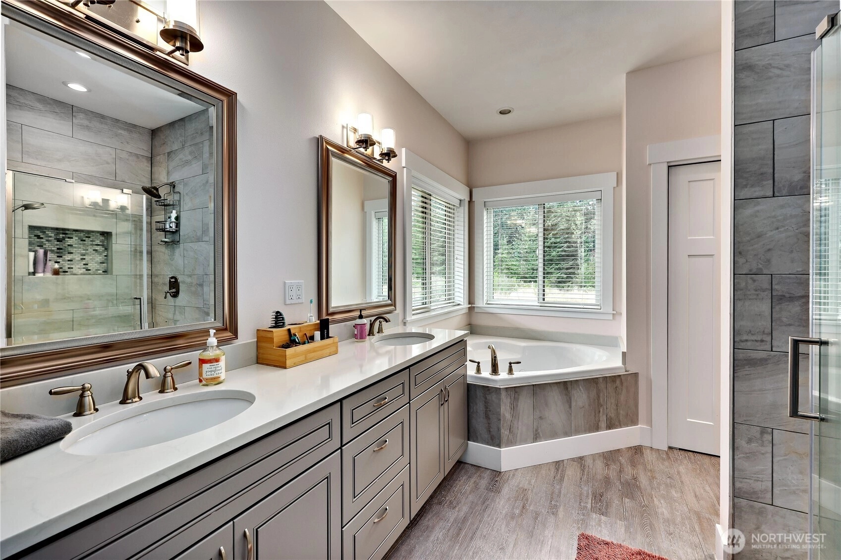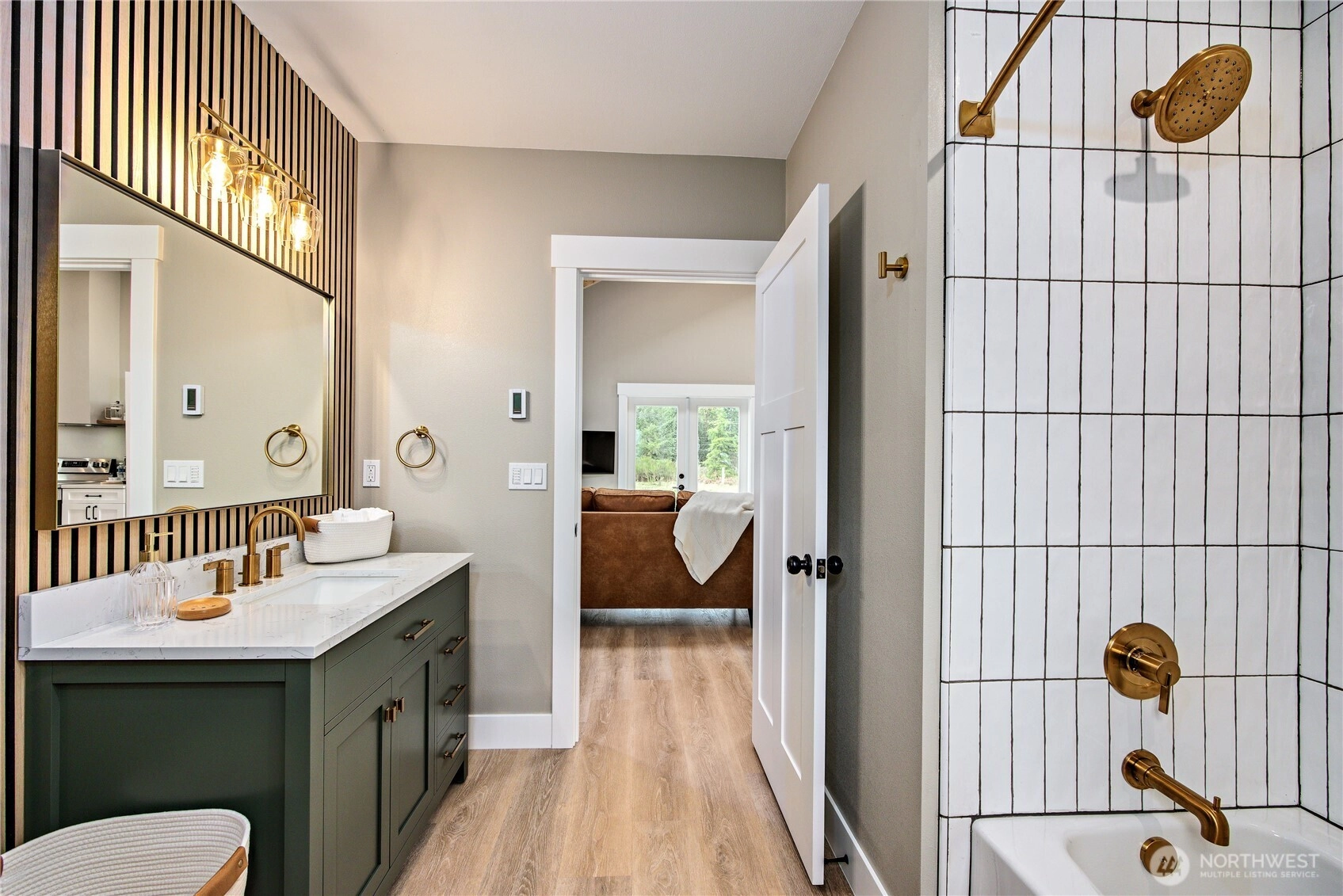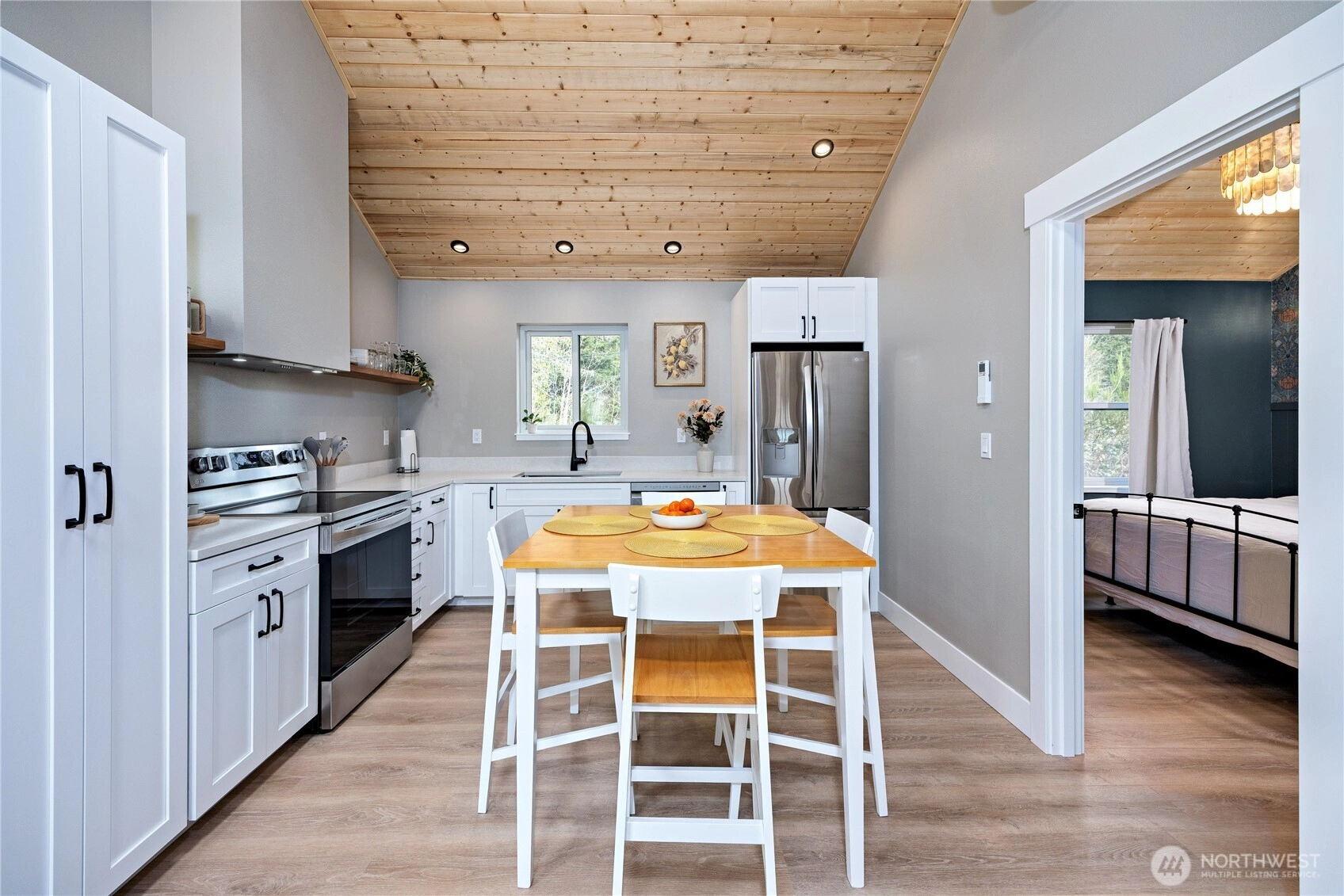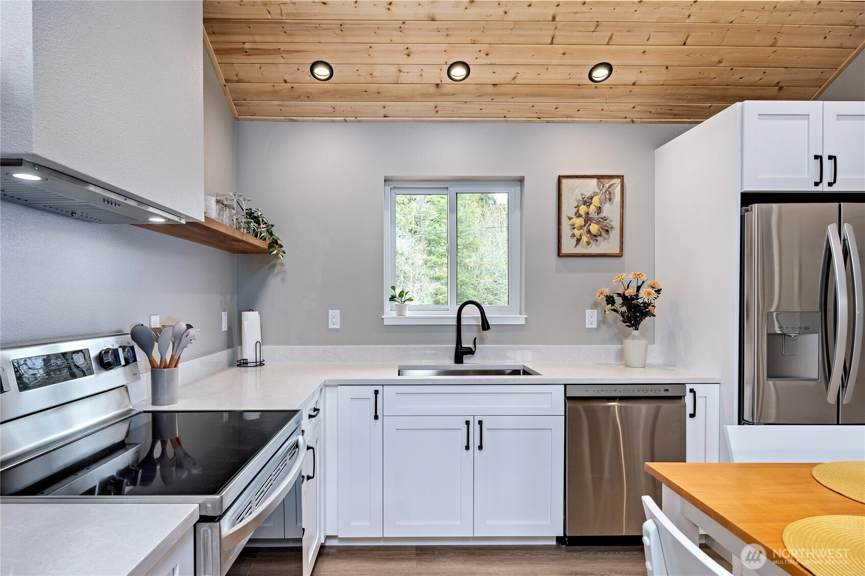 Welcome to your serene Poulsbo retreat! This charming rambler sits on 5 level and dry acres, perfect for your four-legged friends with a barn and fence already in place. Inside, offers a perfect blend of comfort and nature with vaulted ceilings and abundant natural light. The cozy wood stove, granite counters, large island, and stainless appliances make the kitchen a true standout. The oversized primary suite includes a 5-piece bath and a private deck. A separate guest cottage is perfect for multi-generational living or rental income. This property is your canvas for the best of PNW living—gardening, entertaining, or simply relaxing under the stars. With room to breathe and space to grow- don't miss this rare opportunity!