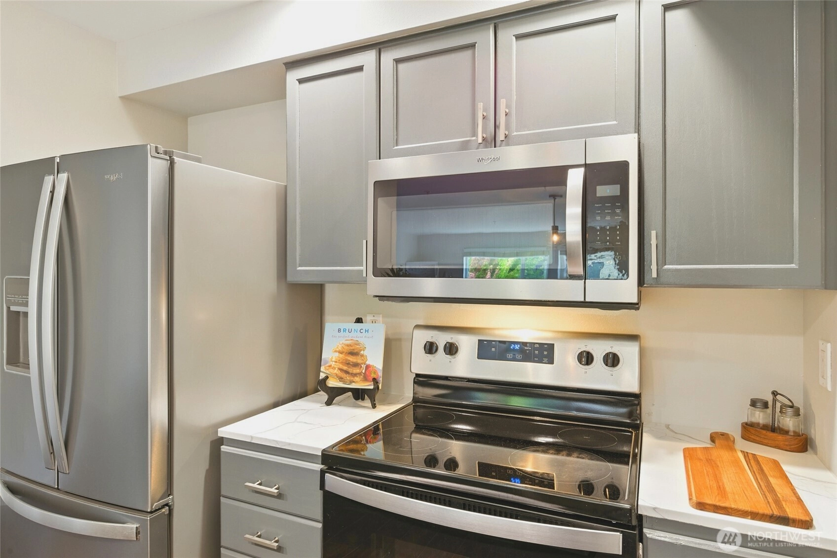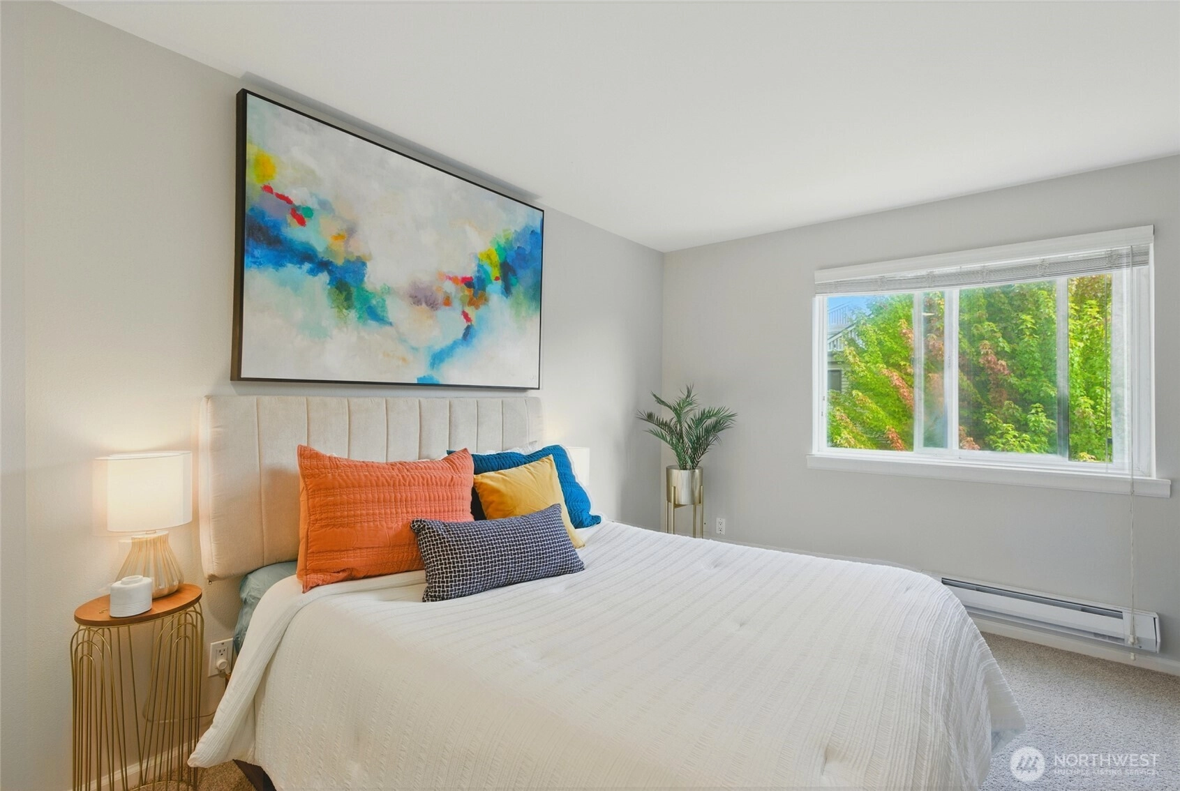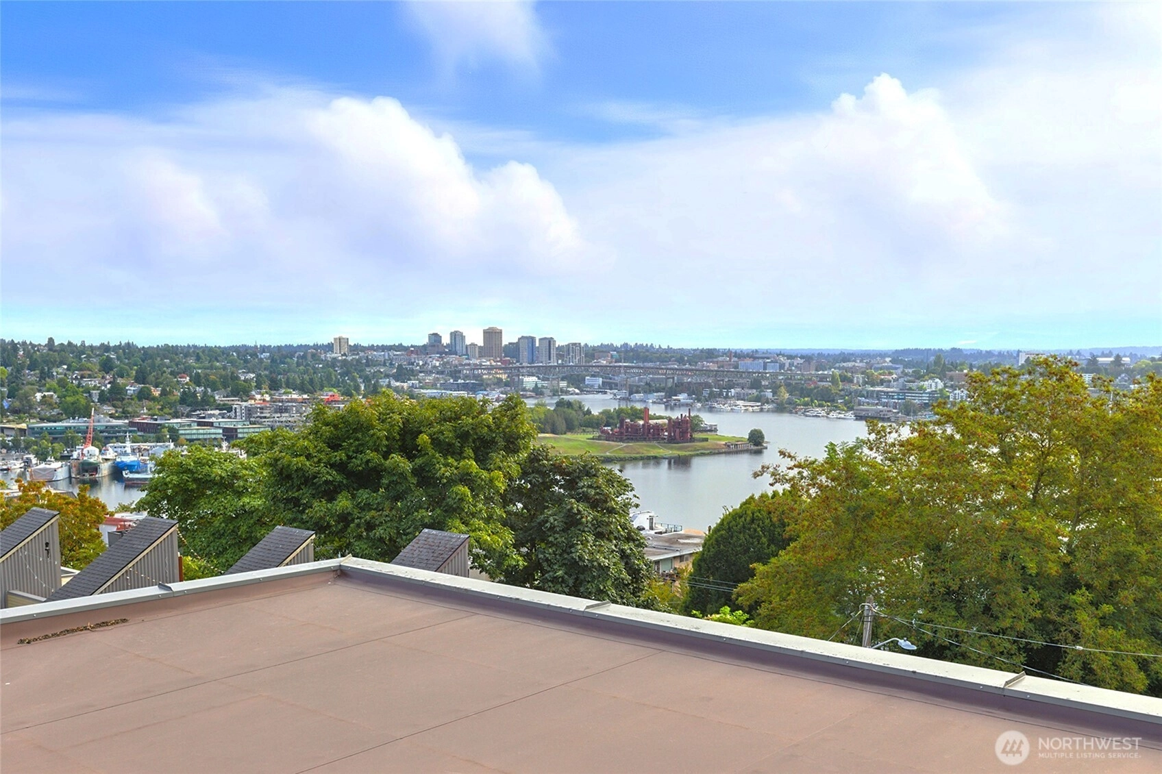 Discover the perfect blend of comfort and convenience in this spacious 2-bedroom condo in Queen Anne. Enjoy stunning rooftop views of Lake Union, Gas Works Park, and the Seattle skyline. Recently updated with fresh paint, quartz countertops, new carpet, and modern light fixtures, the home feels bright and move-in ready. The kitchen with breakfast bar flows into a warm living area featuring a fireplace—ideal for cozy evenings. A double vanity bath and in-unit laundry add everyday ease. The pet-friendly building offers secured entry and parking, plus this home has been pre-inspected for added confidence. With quick access to downtown, Hwy 99, I-5, and public transit, it’s a commuter’s dream.