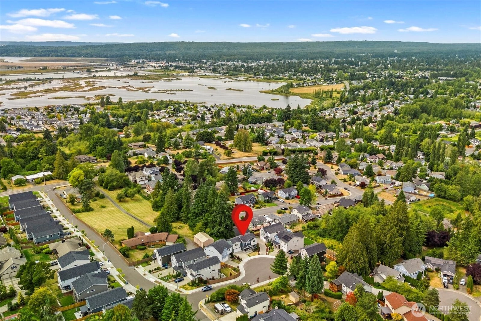 Peacefully situated at the end of a cul-de-sac, this newer home blends comfort, convenience & style. The open main level features a kitchen w/quartz counters, stainless appliances & abundant storage, flowing into dining/living areas anchored by a cozy gas FP—perfect for lively gatherings or quiet evenings. Upstairs, a spacious primary suite is joined by additional BR's, full bath, a loft ideal for a reading nook or home office + convenient laundry room. Enjoy sunsets that stretch wide across the horizon from your fully fenced backyard. Experience year-round comfort from an efficient heat pump & the low maintenance peace of mind that only newer construction provides. Just minutes to Lake Stevens, shopping, dining & multiple commuter routes.