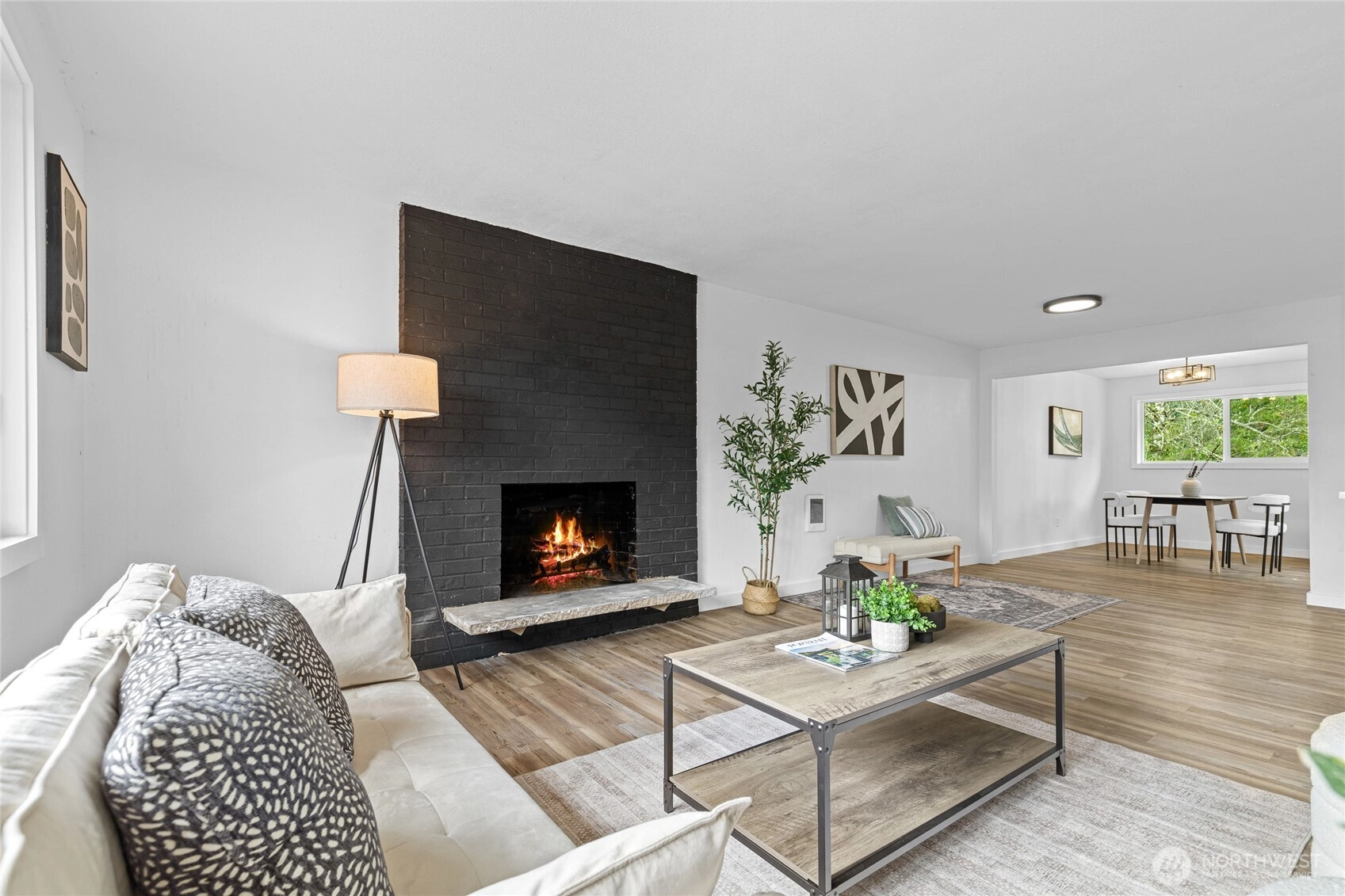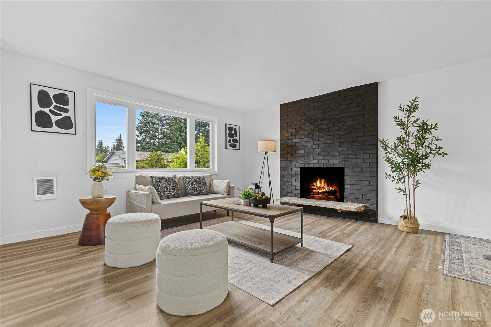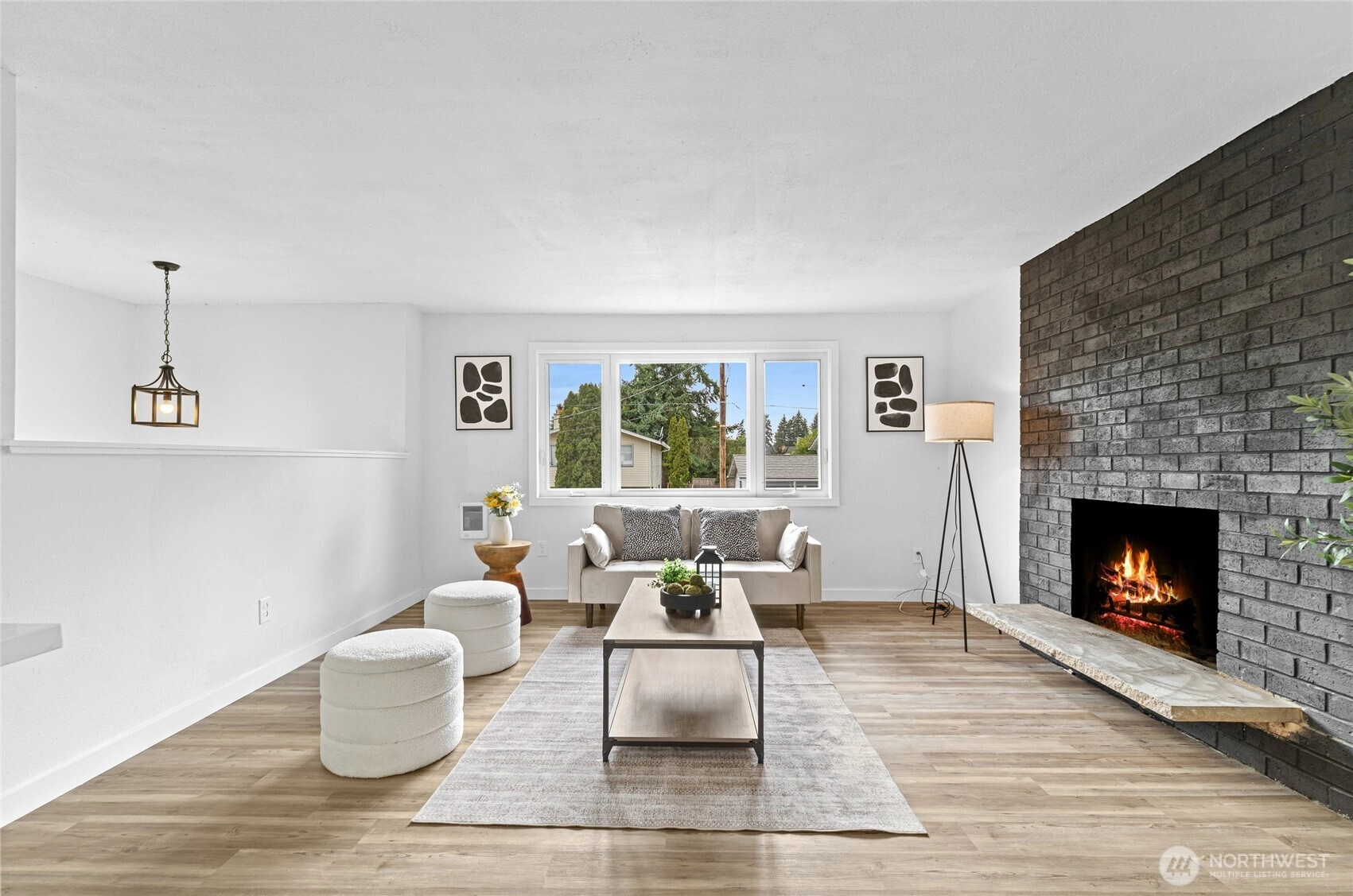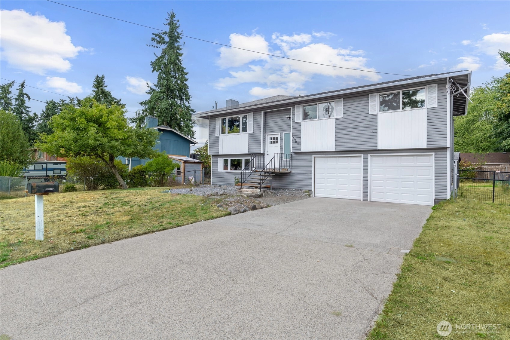 Step inside this tastefully remodeled 4-bedroom, 2-bath home and fall in love with its thoughtful design and inviting spaces. The main level features a cozy living room with fireplace, dining area, and kitchen that opens to a second-story deck. The lower level offers flexibility with its own fireplace, laundry, and a private bedroom. With a spacious fenced backyard, two sheds, and a double garage, storage and outdoor enjoyment come easy. Located in a friendly Spanaway neighborhood within the Bethel School District, this home is move-in ready and full of charm.