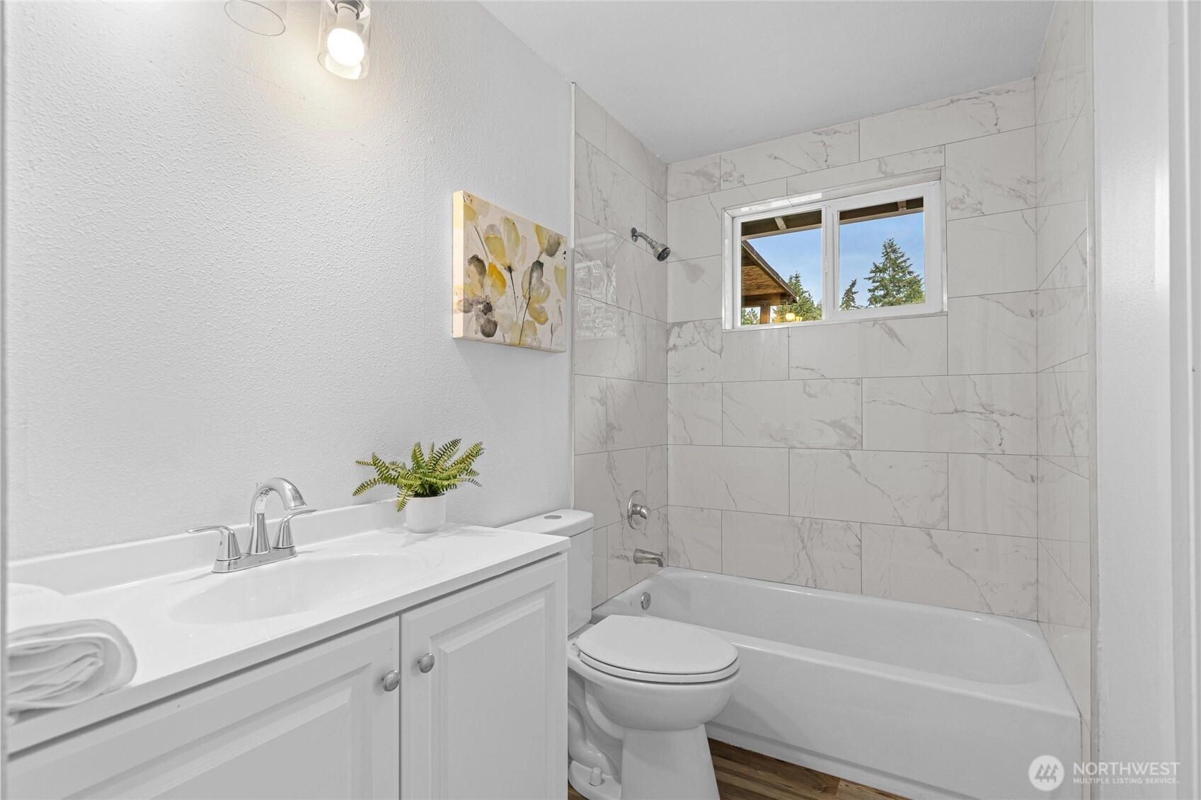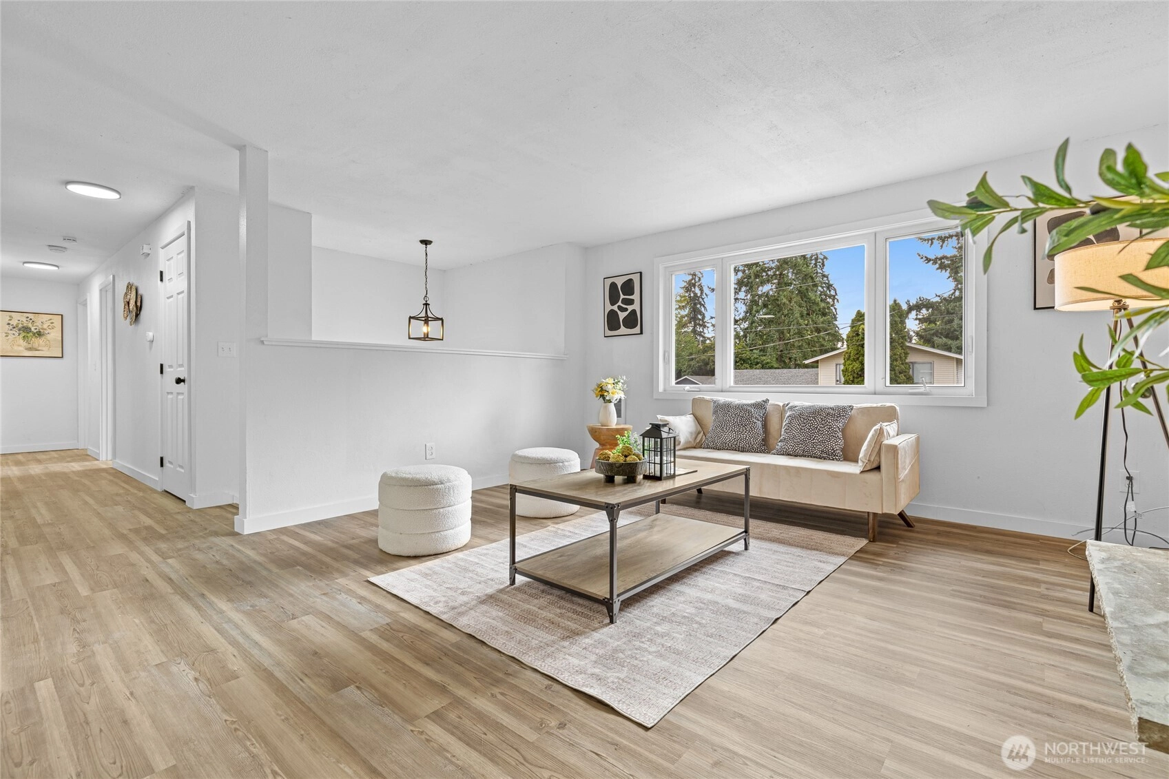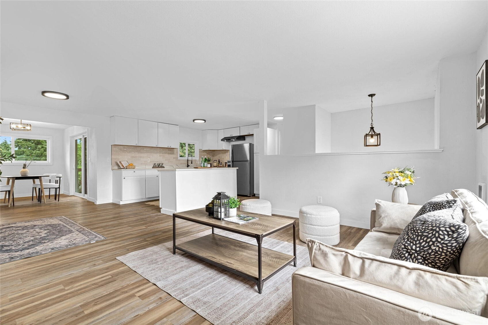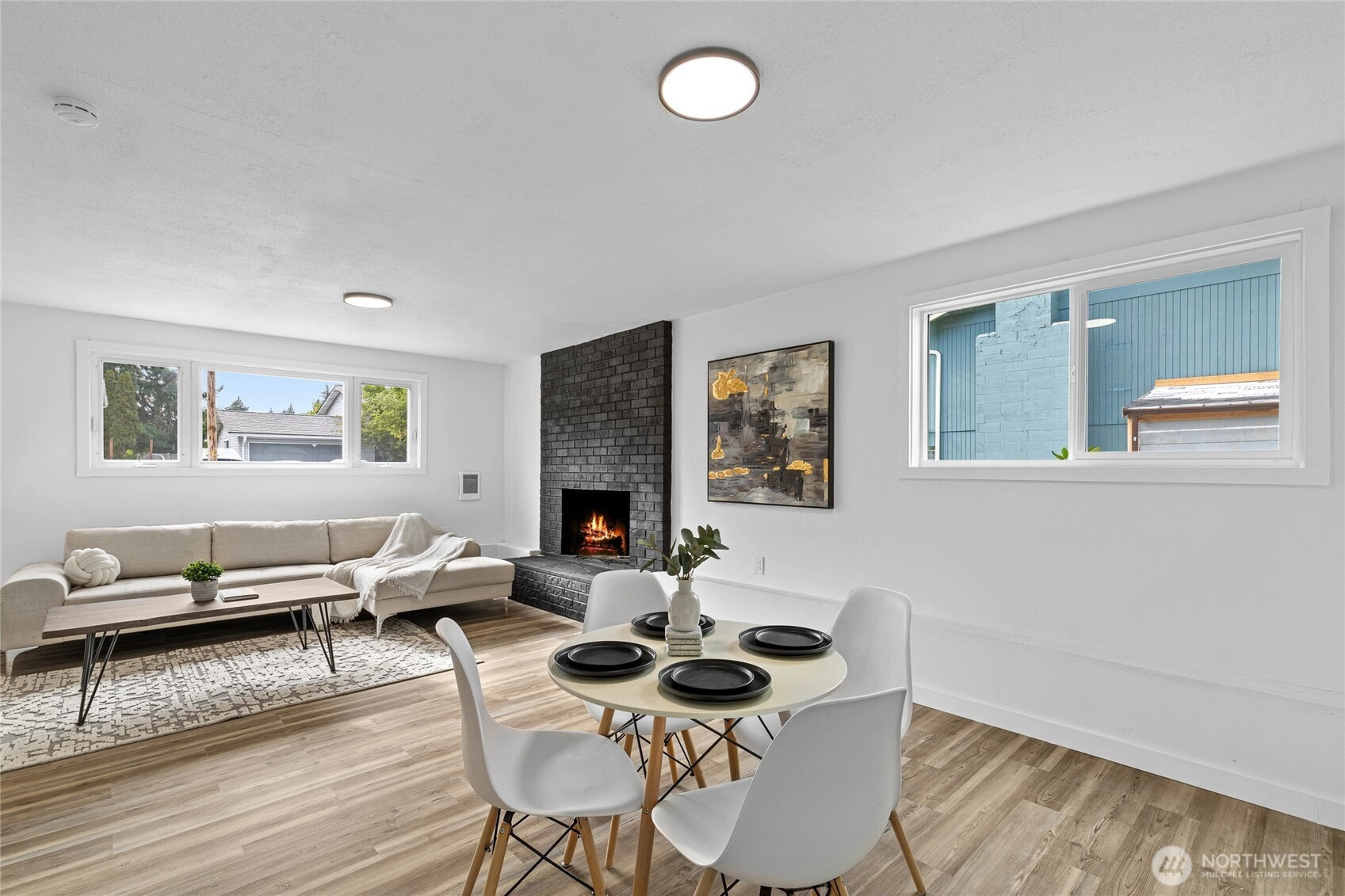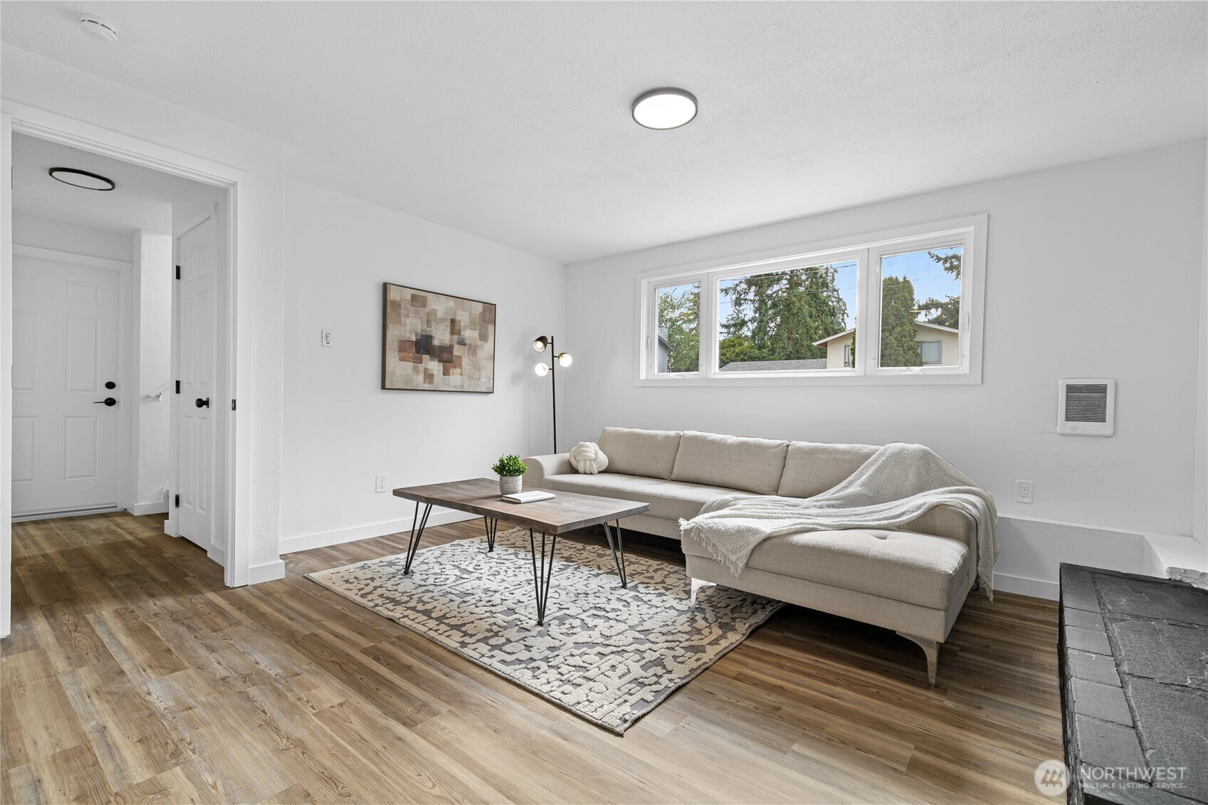 Step inside this tastefully remodeled 4-bedroom, 2-bath home and fall in love with its thoughtful design and inviting spaces. The main level features a cozy living room with fireplace, dining area, and kitchen that opens to a second-story deck. The lower level offers flexibility with its own fireplace, laundry, and a private bedroom. With a spacious fenced backyard, two sheds, and a double garage, storage and outdoor enjoyment come easy. Located in a friendly Spanaway neighborhood within the Bethel School District, this home is move-in ready and full of charm.
