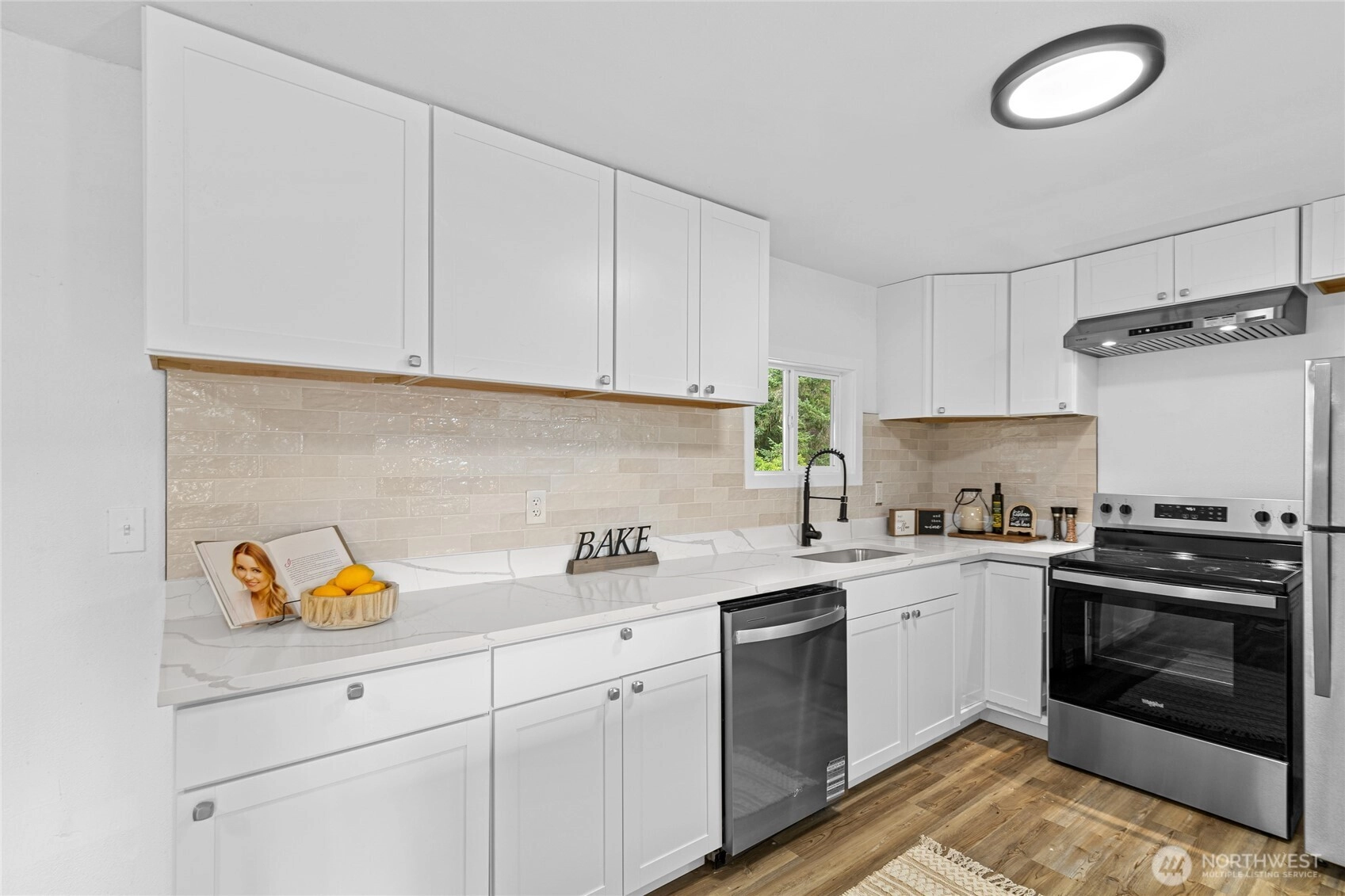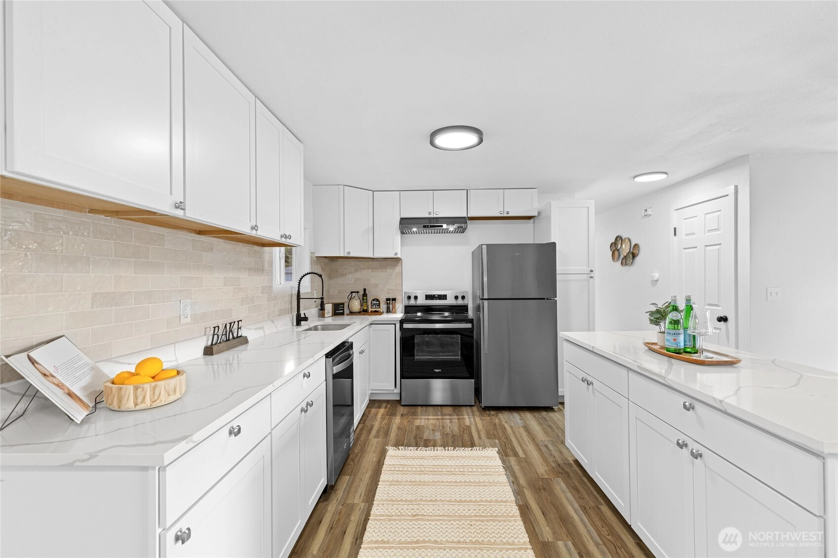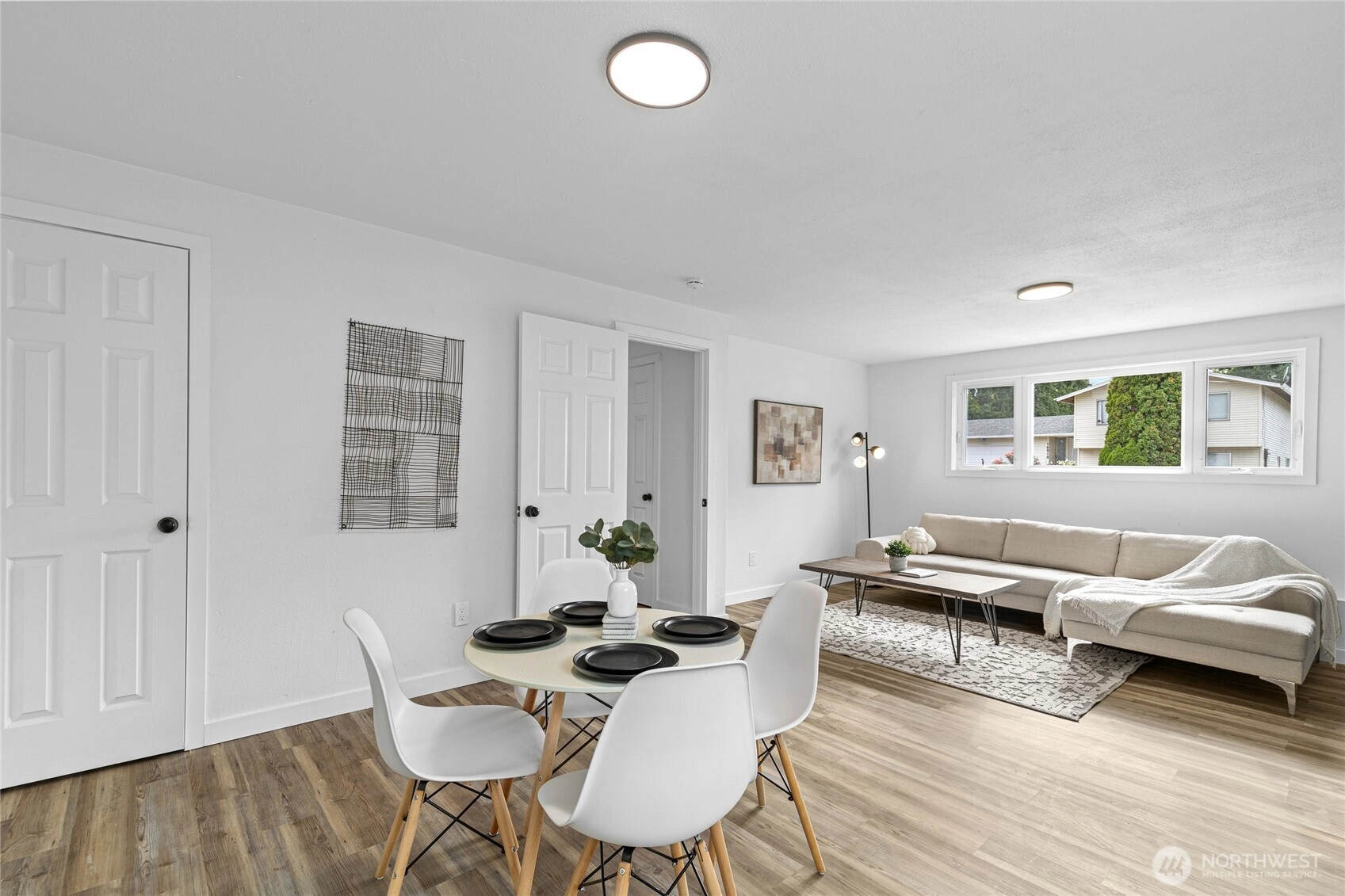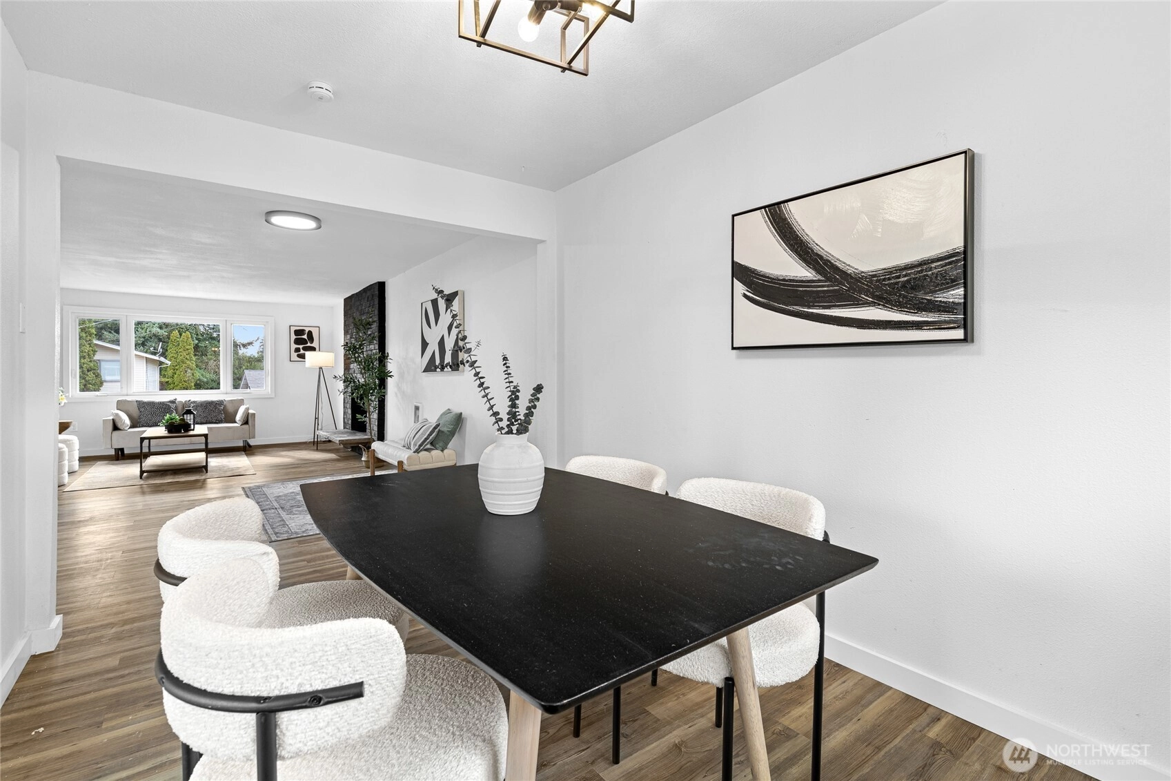 Step inside this tastefully remodeled 4-bedroom, 2-bath home and fall in love with its thoughtful design and inviting spaces. The main level features a cozy living room with fireplace, dining area, and kitchen that opens to a second-story deck. The lower level offers flexibility with its own fireplace, laundry, and a private bedroom. With a spacious fenced backyard, two sheds, and a double garage, storage and outdoor enjoyment come easy. Located in a friendly Spanaway neighborhood within the Bethel School District, this home is move-in ready and full of charm.