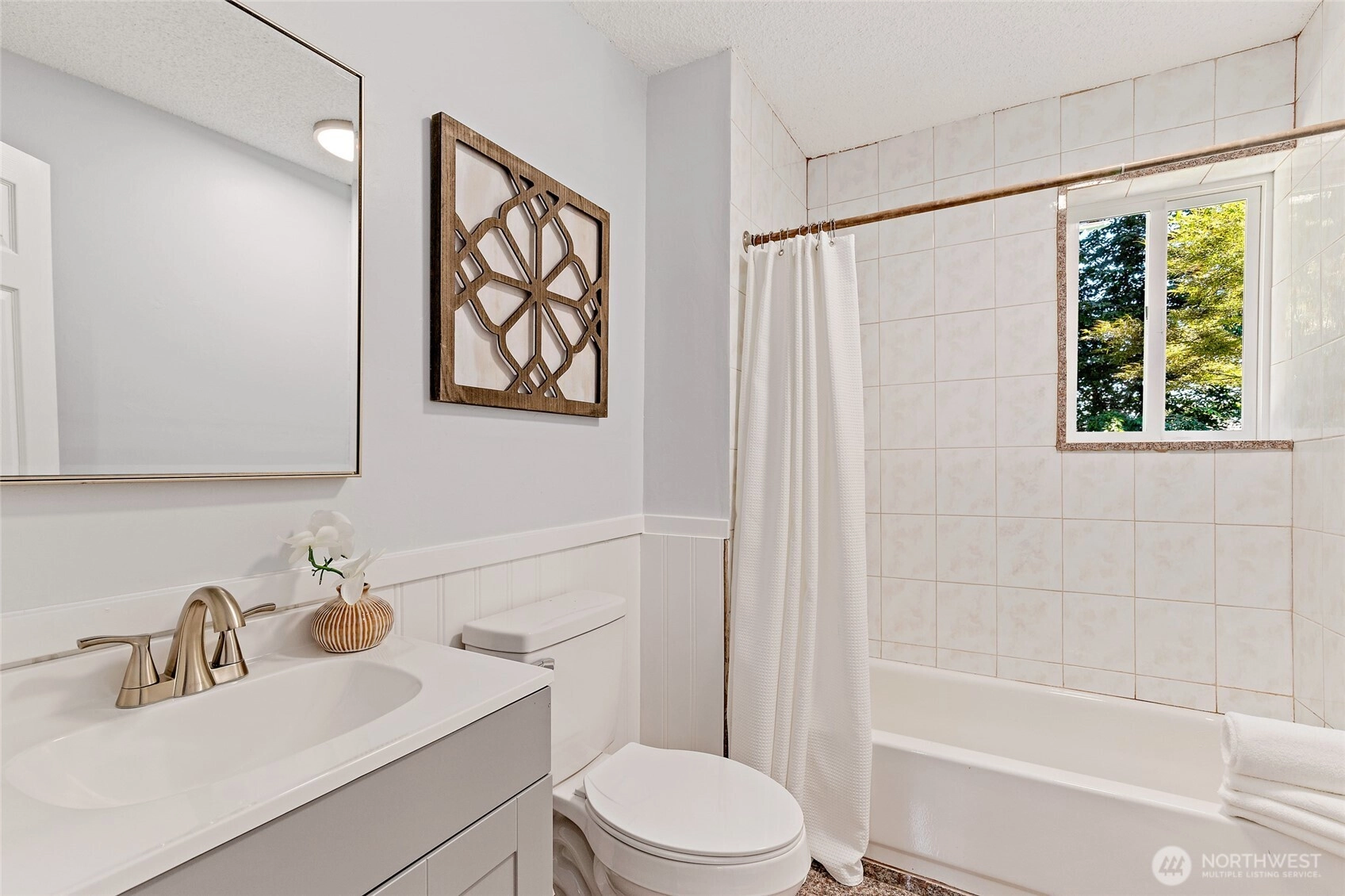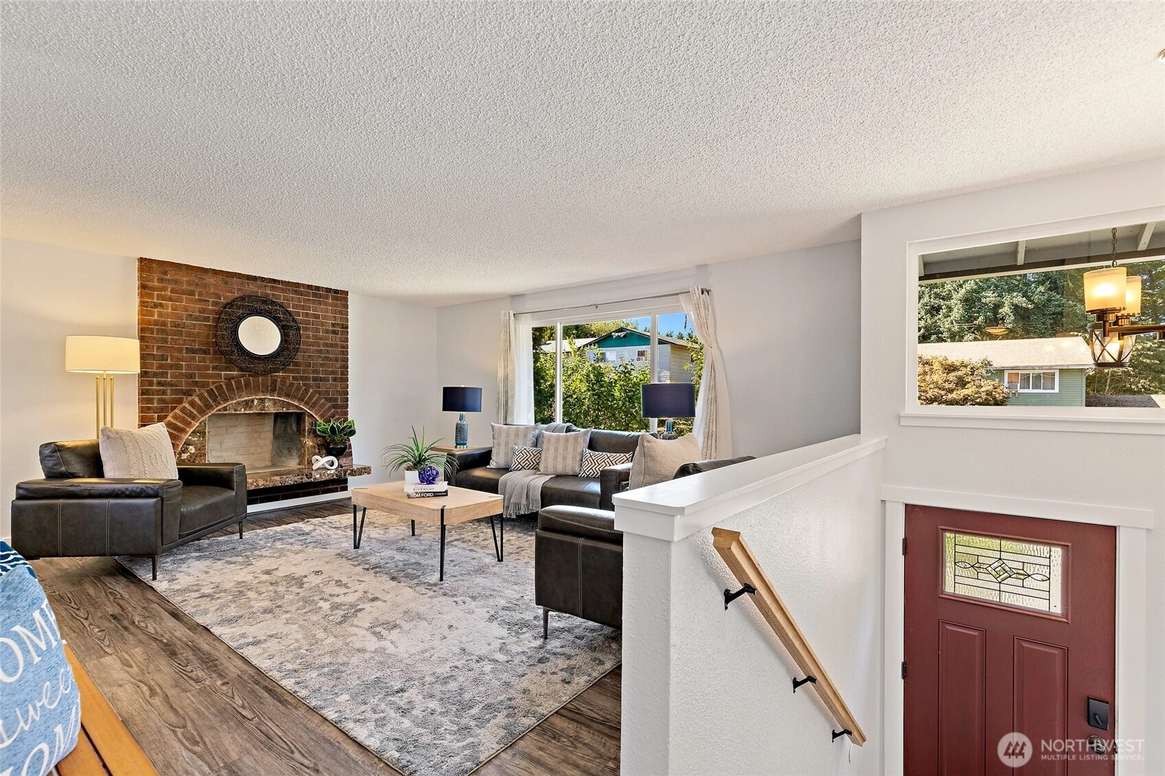 This beautifully updated split-level blends classic charm w/ modern finishes inside & out. Recent upgrades include new siding, exterior paint, energy-efficient windows & a roof within last five years, offering great curb appeal & peace of mind. Light-filled living & dining areas open to a sunny deck—ideal for entertaining. The remodeled kitchen features quartz counters, a stylish backsplash, induction range & stainless appliances. The main level offers a spacious primary suite with ¾ bath, 2 more bedrooms & an updated full bath. Downstairs: large rec room w/ wood-burning fireplace, full bath & laundry. Set on a generous lot with refreshed landscaping & mature trees, this home offers a smart layout, freeway access & nearby amenities.