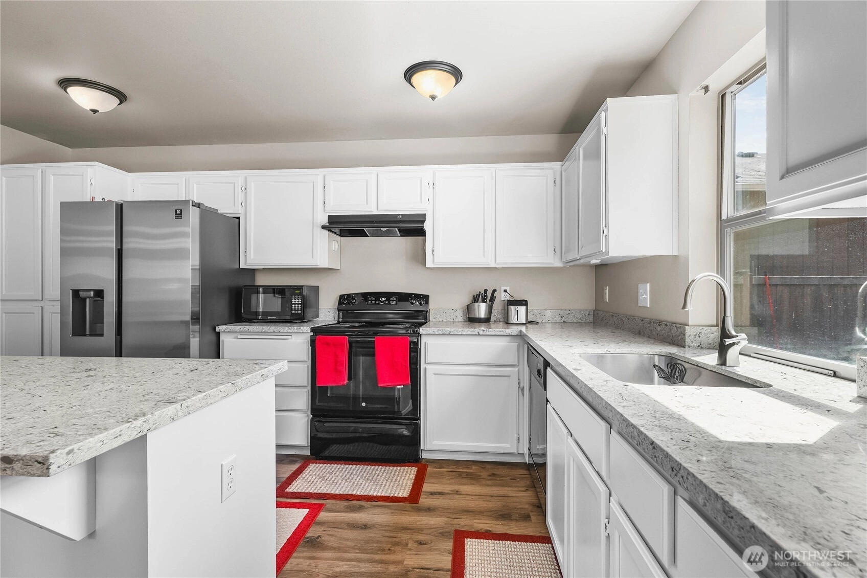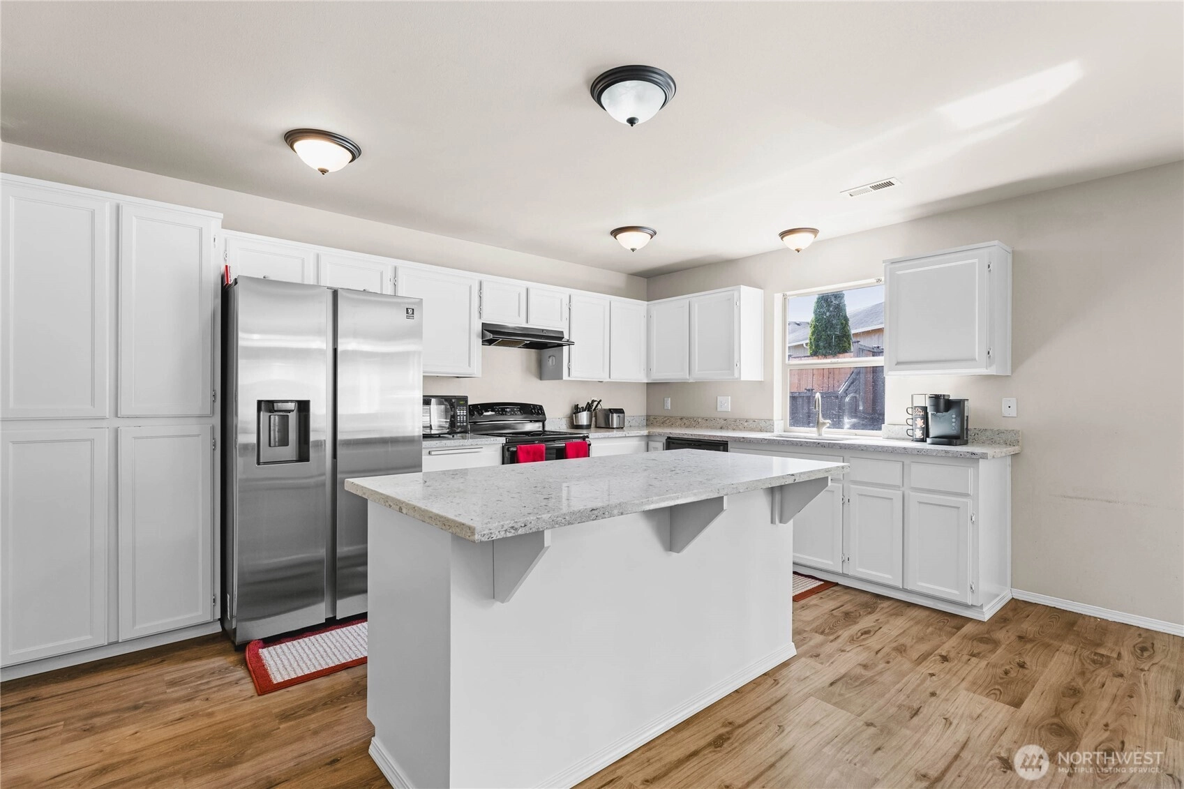 PRICE DROP! Located in a desirable gated community, this 2010-built home offers spacious, open-concept living perfect for entertaining. Enjoy fresh updates throughout, including new flooring in the kitchen, laundry, and bath, freshly painted cabinets, new carpet, and stunning quartz countertops. The kitchen comes fully equipped with all appliances included. Featuring 4 bedrooms plus a versatile bonus room or office on the main level, there’s plenty of space for work or play. Spacious primary bedroom and large guest bedrooms make the upstairs feel spacious. Step outside to the Flat, fully fenced backyard with a great private patio for relaxing or BBQs. Conveniently close to shopping, dining, schools, and just a short commute to JBLM.