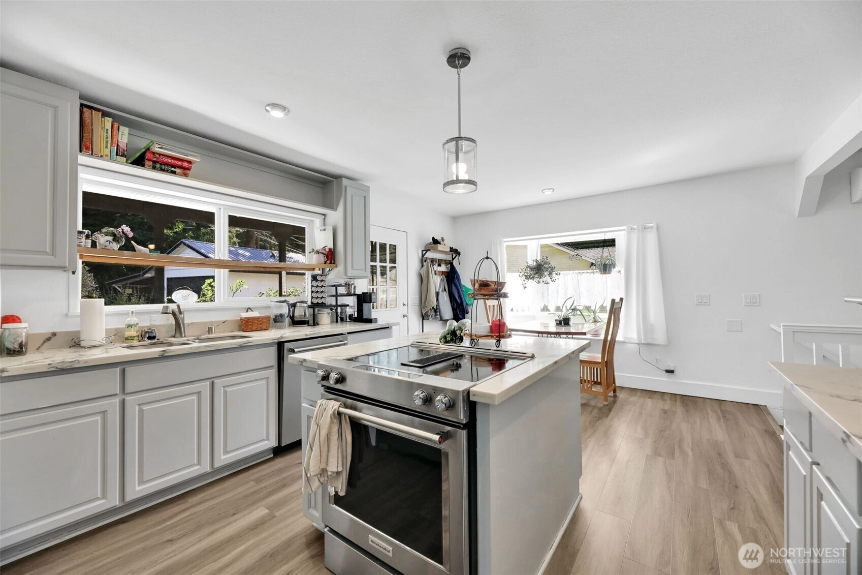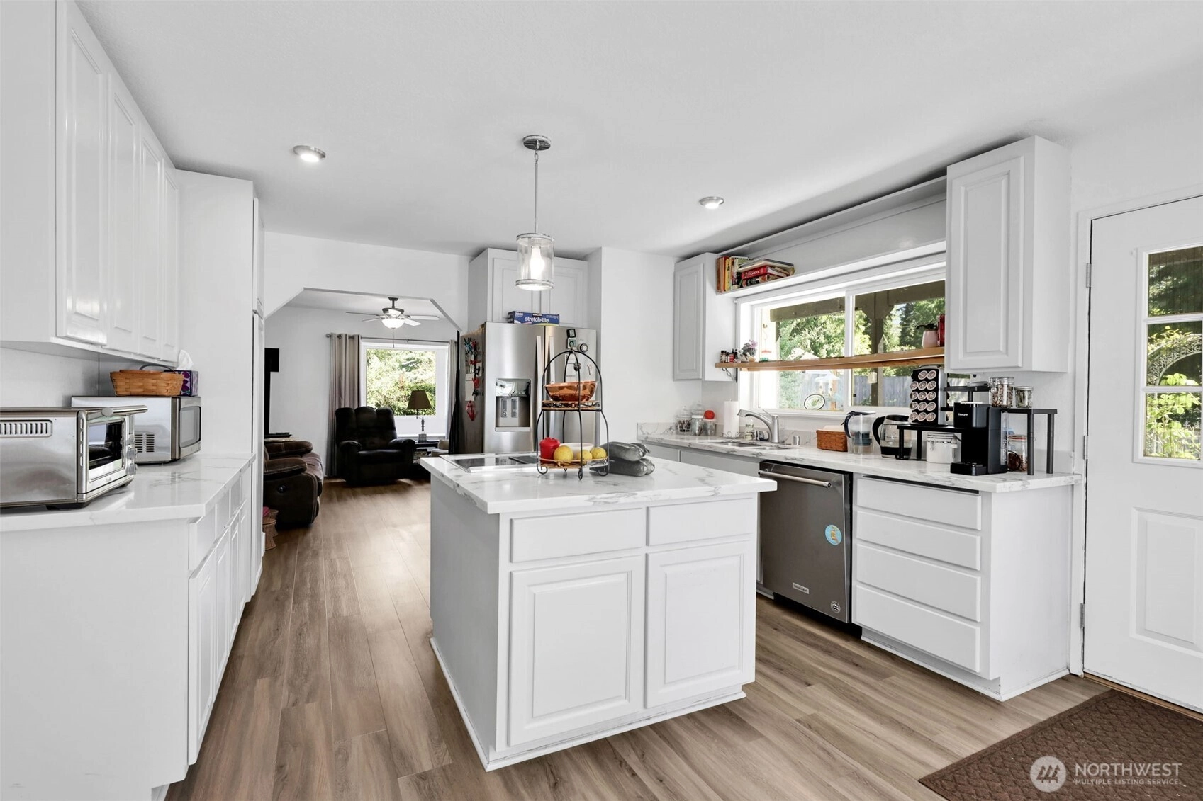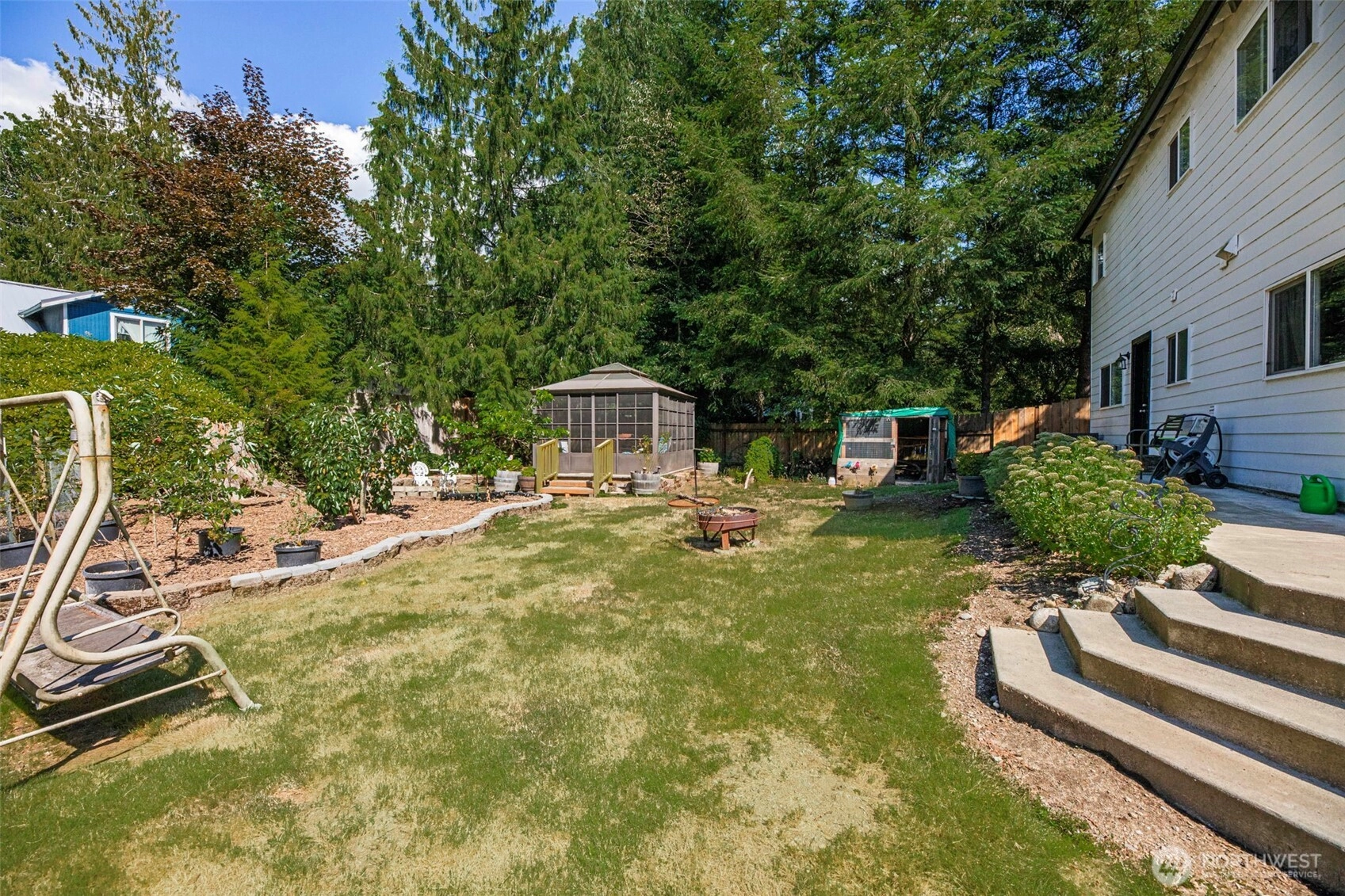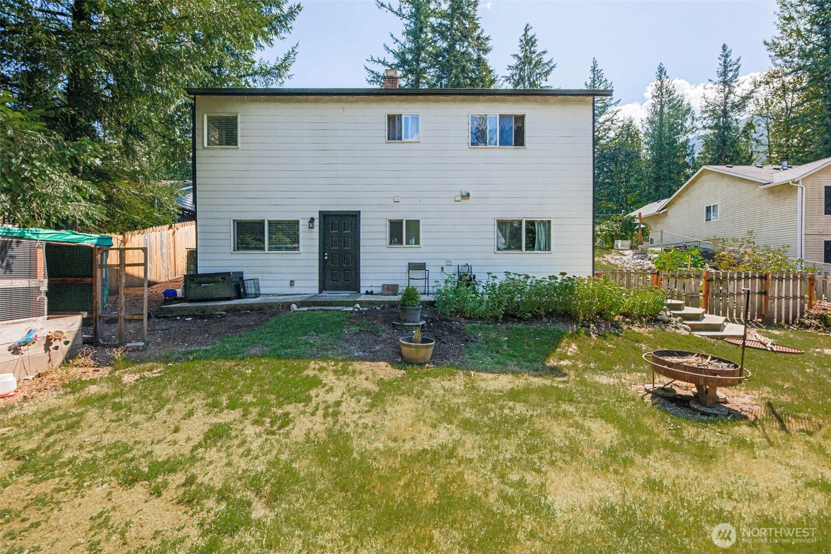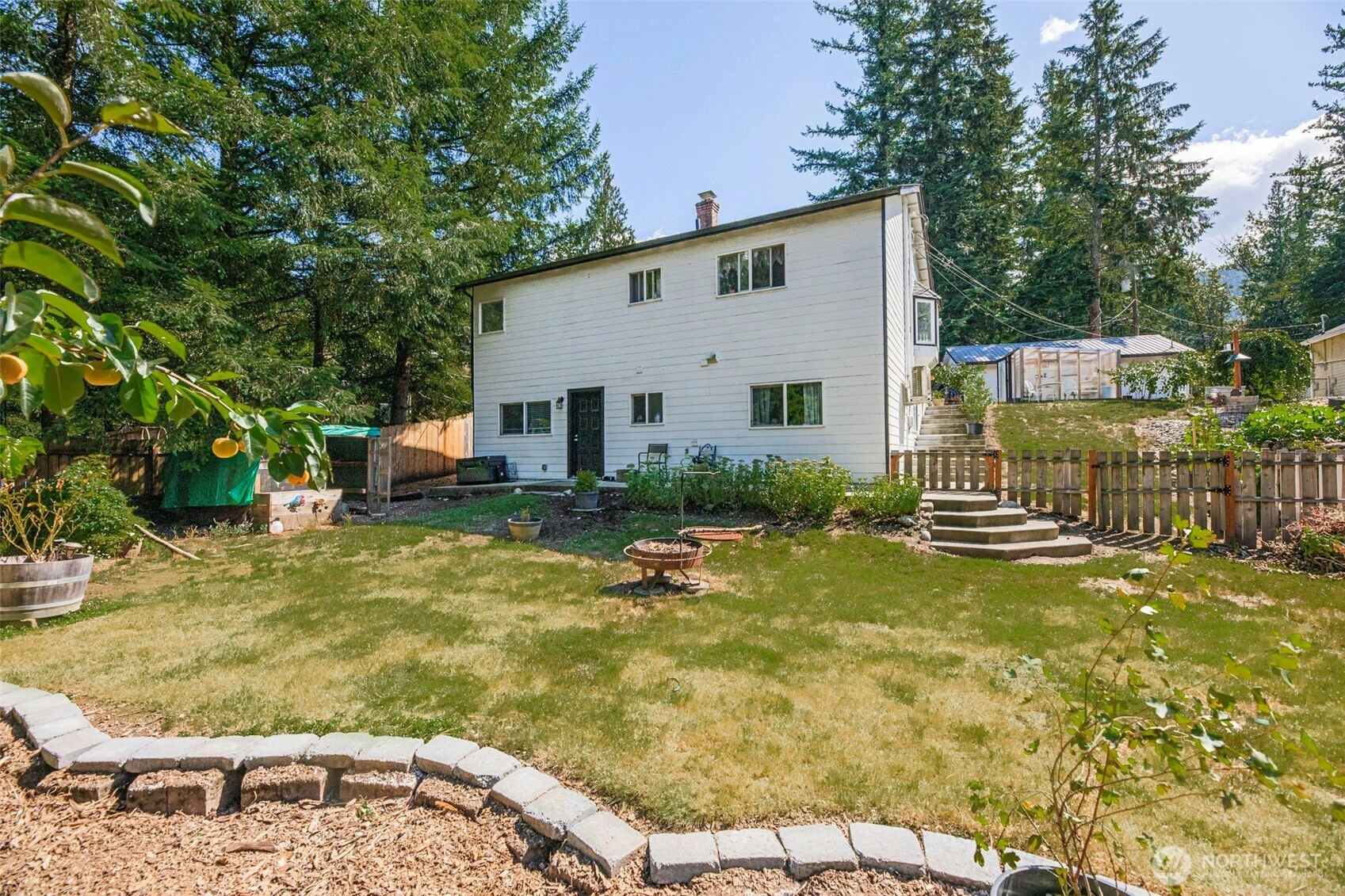 **1% Buyer Credit Available with Preferred Lender!** Looking for a fresh start? This cozy, updated gem makes coming home the best part of your day. Pride of ownership shines in this beautifully updated Greenwater Meadows home. Enjoy privacy with lush landscaping, fruit trees, raised beds, greenhouse, rainwater system & screened gazebo. Relax on the covered porch before entering a stunning kitchen with stainless appliances, new vinyl plank flooring, high-end counters & charming sitting windows. Cozy living room offers propane fireplace & office nook. Main floor primary suite with full bath. Downstairs includes 2 bedrooms, bath, laundry & storage—ideal for MIL setup. Detached garage, gated shed & mountain views complete this Gold Bar gem!