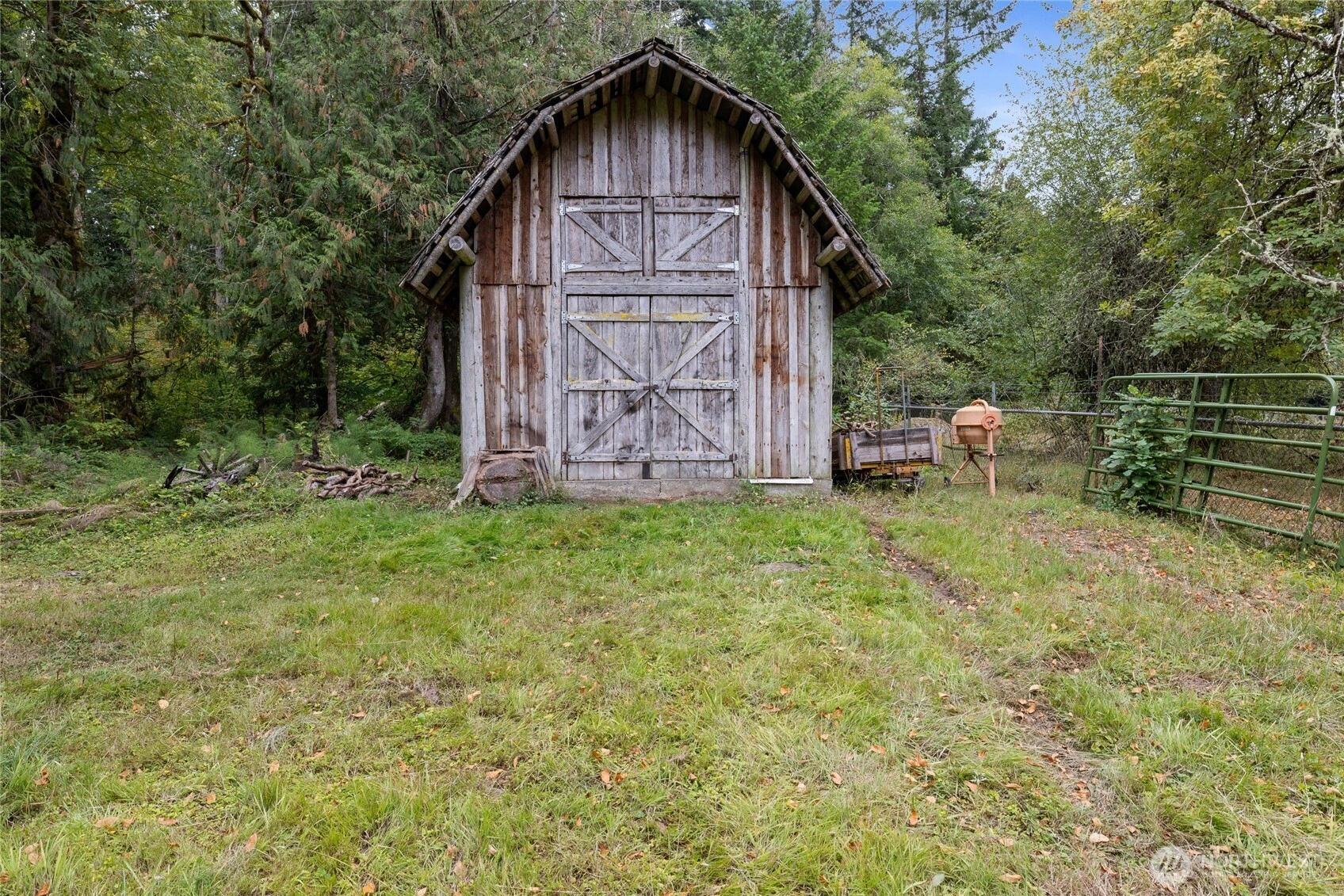 This one-of-a-kind custom home sits on 6.61 gorgeous acres and comes with a 932sq/ft cabin, and new 960sq/ft shop with water & electricity. The moment you step onto this property you feel the stress of daily life fall off your shoulders as you bask in the mature NW forest and listen to the calls of the birds and babbling of the seasonal creek. The home is constructed of quality cedar and with its wraparound country porch it fits the serene setting perfectly. Some of the new updates to the home include flooring, paint, countertops, primary bath & modern light fixtures. There is a rustic barn near the orchard. The driveway runs through the property connecting the dual entrances for easy access. Absolutely stunning property!