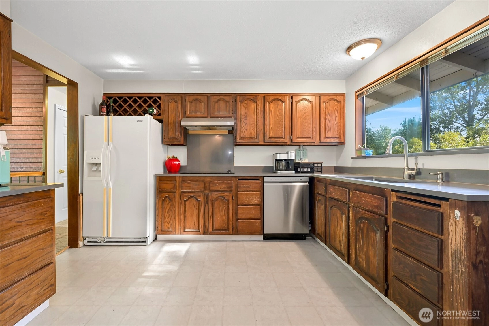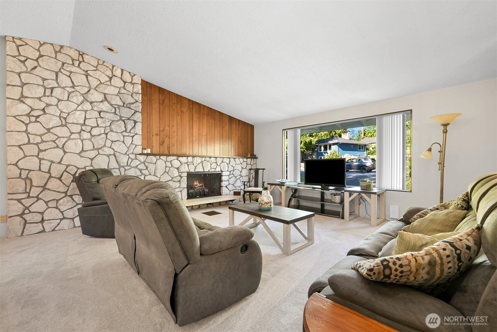 This 5-bedroom home offers flexible living with two separate living areas, each with its own fireplace. The large kitchen features a sunny nook, and the formal dining room opens to a generous back deck—perfect for entertaining. Set on a peaceful half-acre lot with garden space and mature landscaping, it feels like a private retreat. Recent updates include new carpet, countertops, and a 2022 roof. Just minutes from shopping, dining, the hospital, and freeway access.