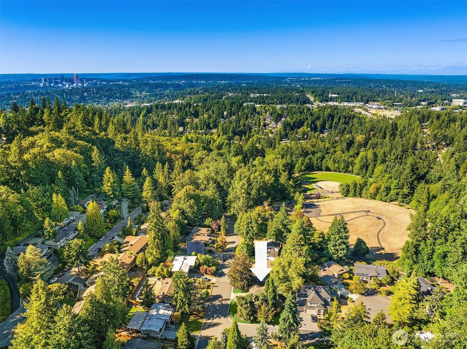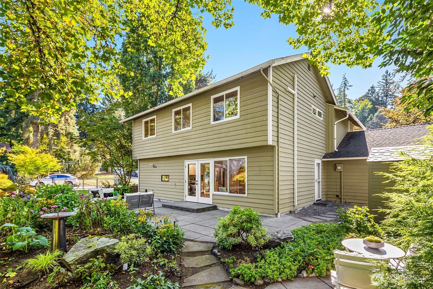 Discover this Northwest Contemporary two-story in coveted Somerset Woods! Soaring vaulted living room with dramatic floor-to-ceiling stone fireplace flows to a formal dining room. Updated kitchen with stainless appliances, bay window, and breakfast bar. The kitchen/family room opens to a sunny patio, perfect for summer evenings surrounded by mature landscaping. Stone pathways wind through perennial gardens, in this fully fenced yard on a gorgeous corner lot. Room for all with four bedrooms plus a den upstairs. Fresh paint and carpet make it move-in ready. Zoned for top Bellevue schools—Somerset, Tyee & Newport. Enjoy nearby trails, parks, Newport Library, and South Bellevue Community Center, with I-90 just minutes away for an easy commute.