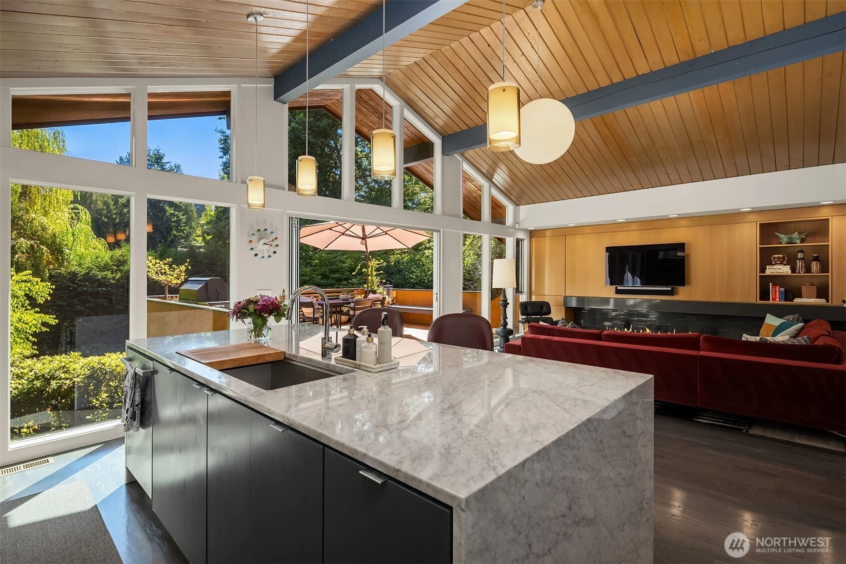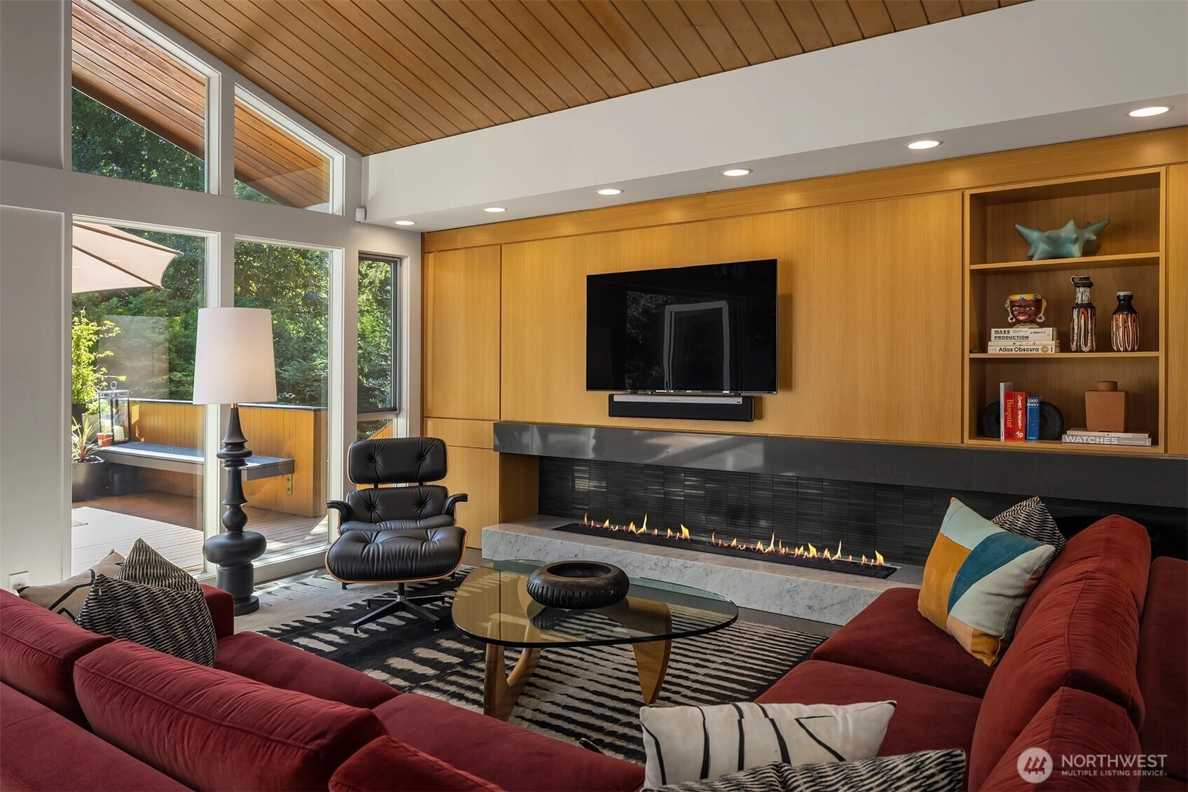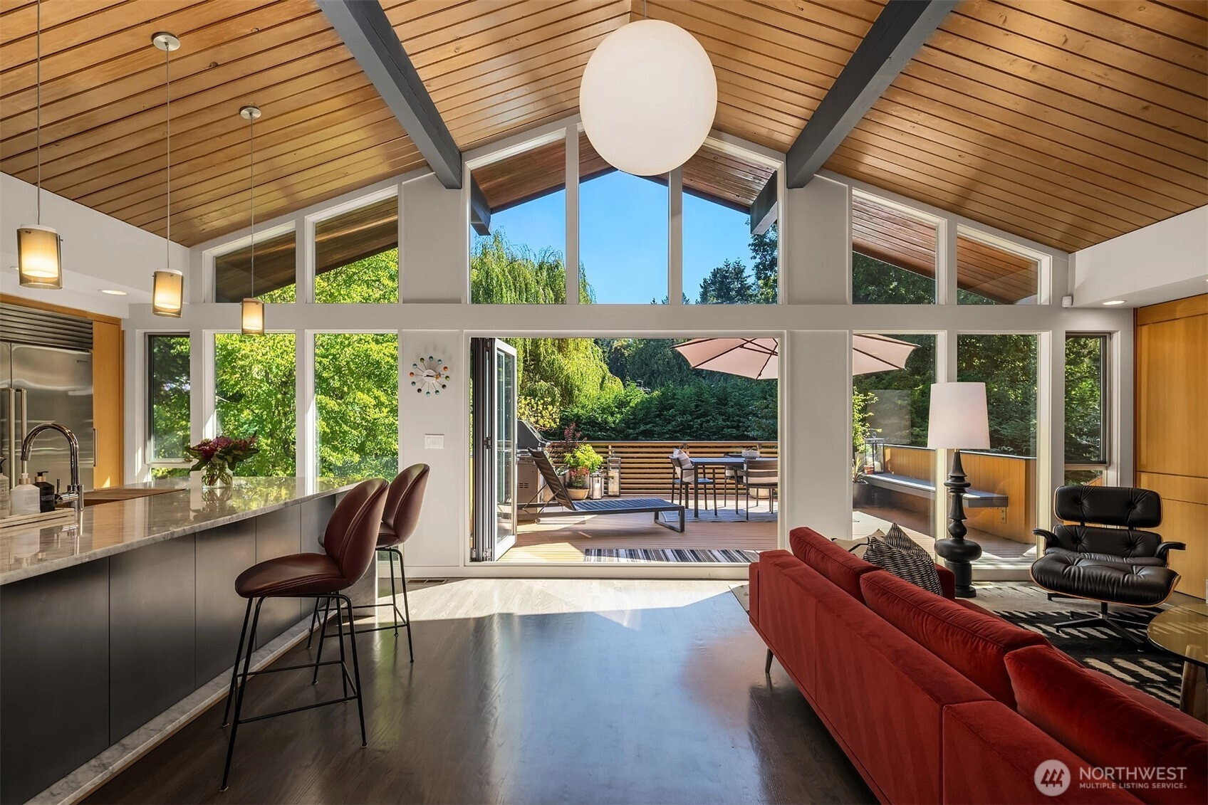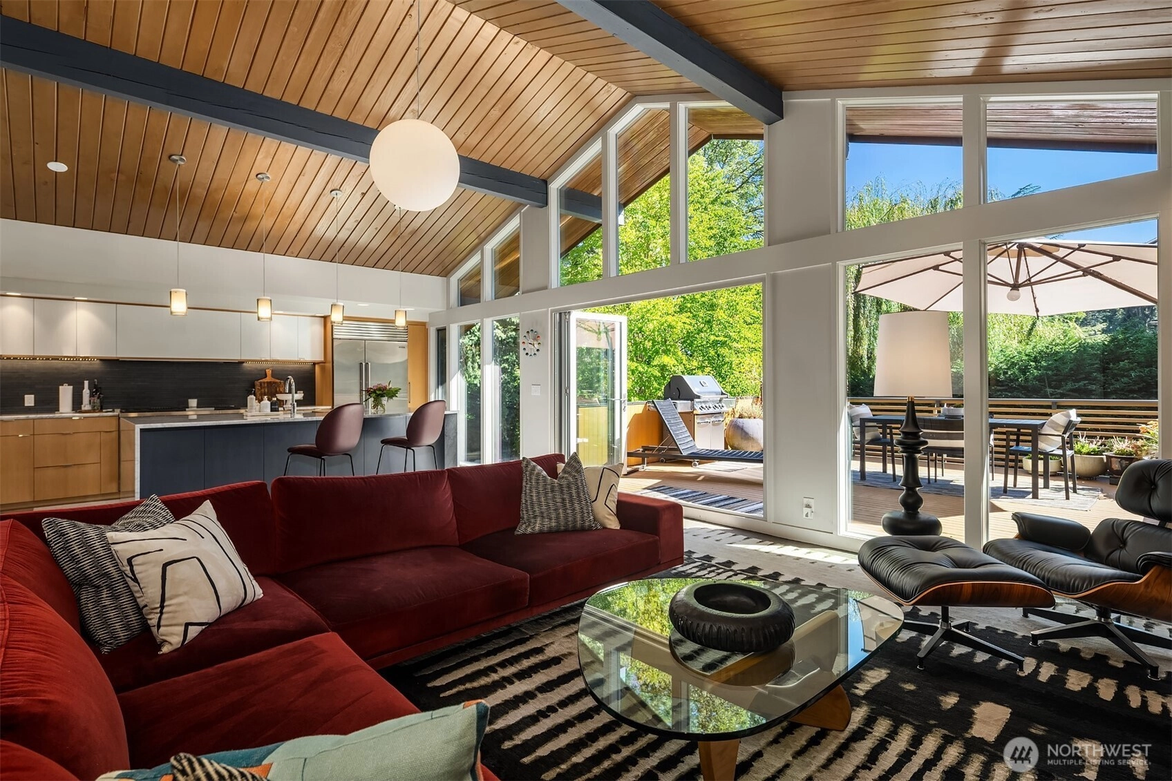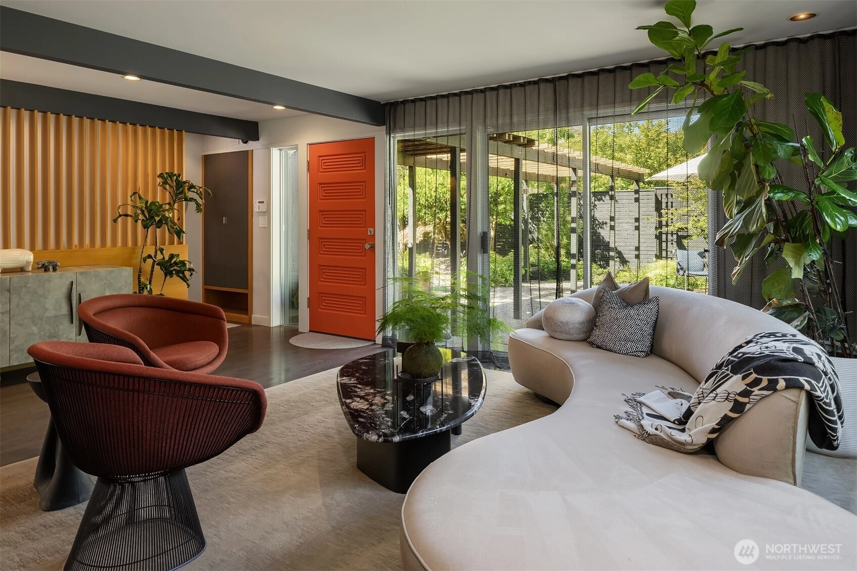Tucked discreetly into an oversized private corner lot, this extensively-renovated MCM beauty is guaranteed to take your breath away. Everything is custom…thoughtfully conceived & masterfully executed, with classic materials like white oak & marble artfully arranged to create spaces that will always feel fresh AND timeless. Accordion doors connect the vaulted Kitchen/Family area to a spacious & sunny deck. Gracious Primary Suite with custom built-in cabinetry and walk-in closet opens to side patio. Large lower level with Family/TV room, full bath, 3rd bedroom, & office with door to lower yard. Lush landscaping front & back. EV plug, tankless hot H2O, smart lighting, new furnace - A/C, new electric/sub-panel, roof, etc...