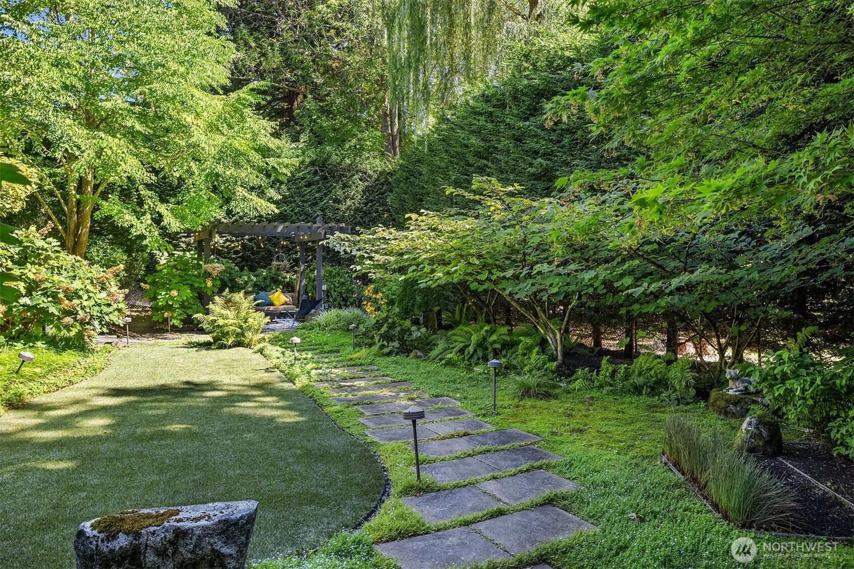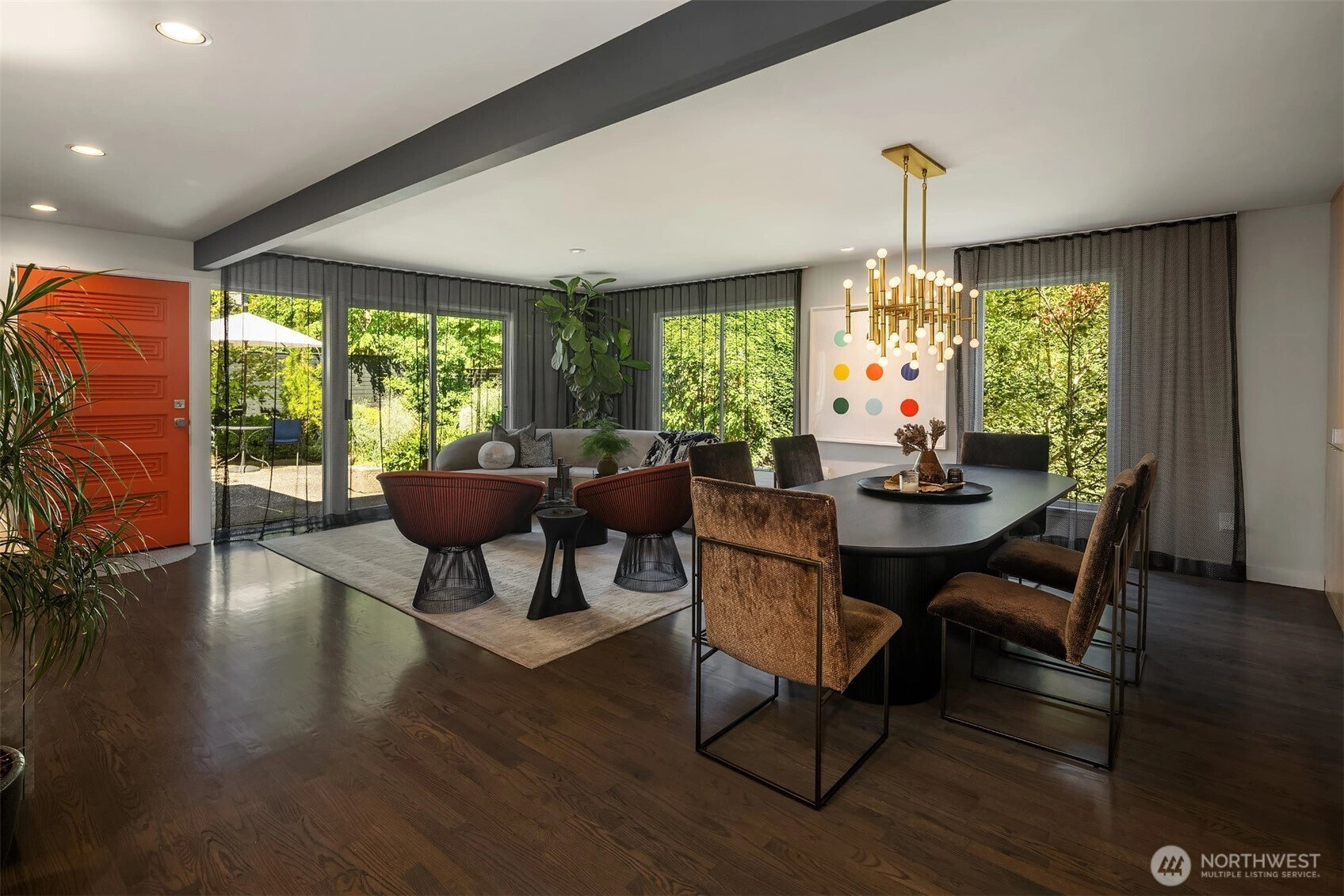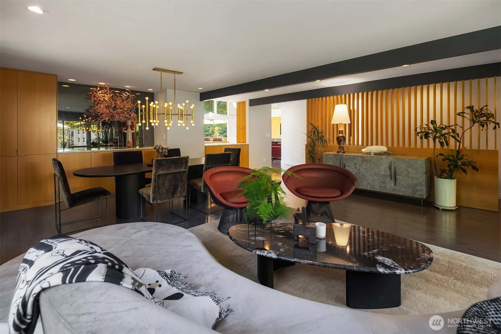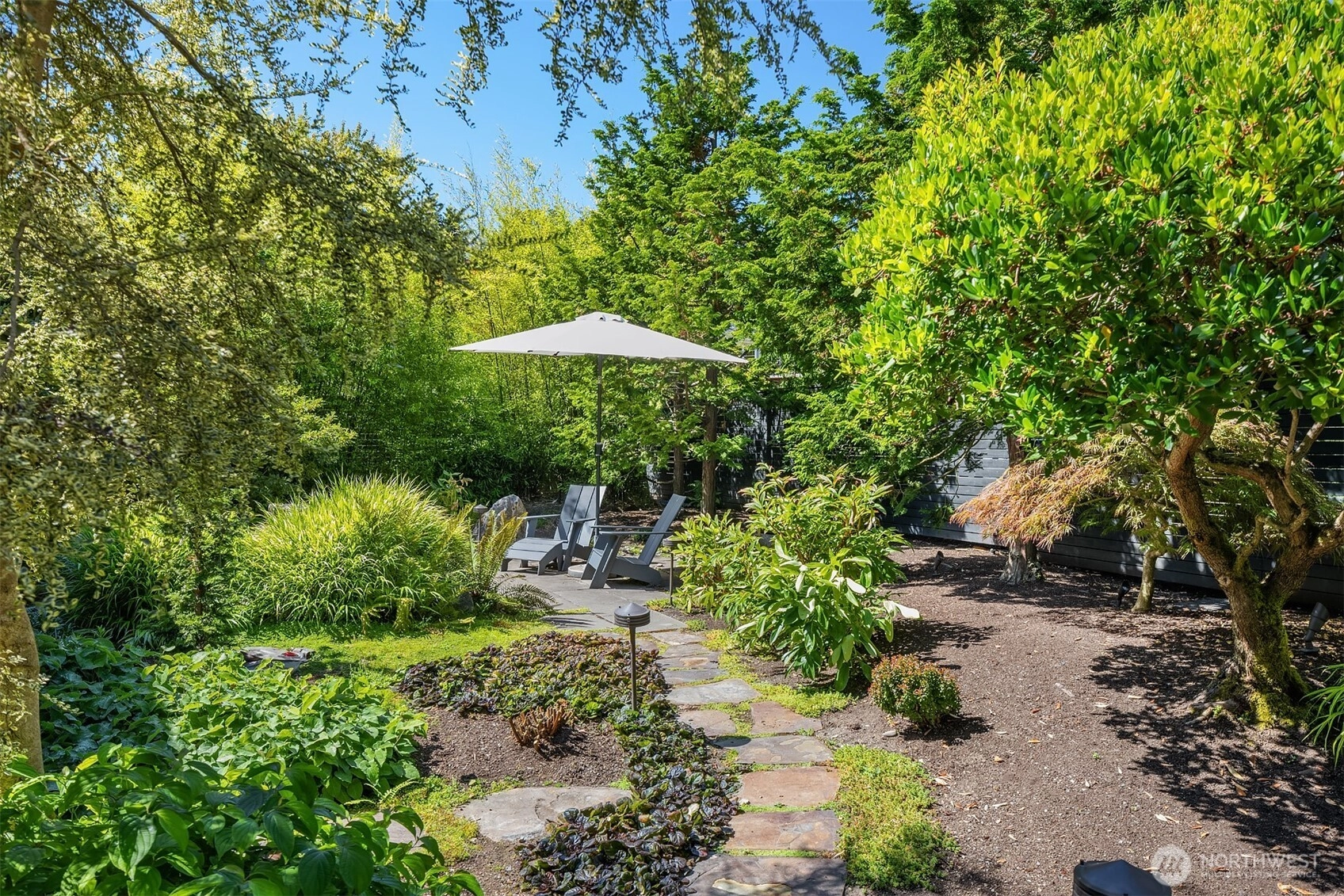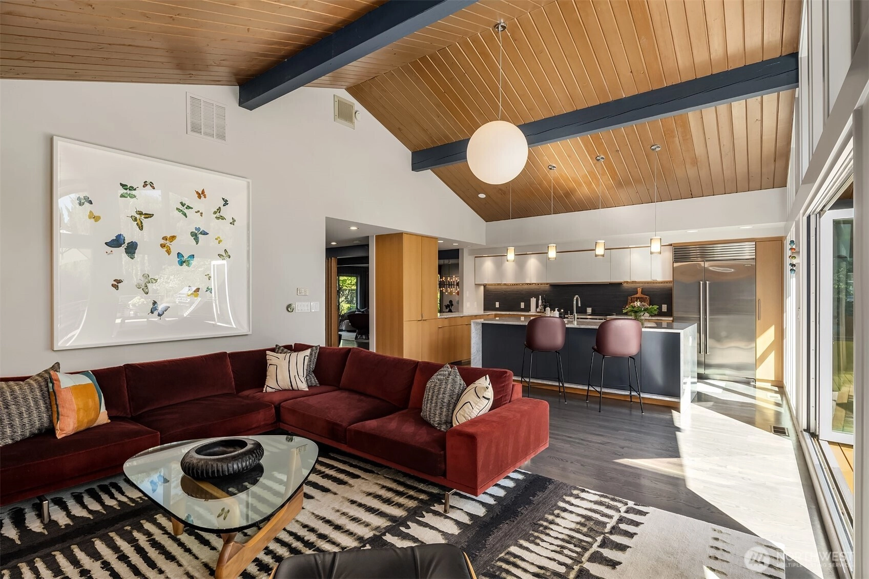 Tucked discreetly into an oversized private corner lot, this extensively-renovated MCM beauty is guaranteed to take your breath away. Everything is custom…thoughtfully conceived & masterfully executed, with classic materials like white oak & marble artfully arranged to create spaces that will always feel fresh AND timeless. Accordion doors connect the vaulted Kitchen/Family area to a spacious & sunny deck. Gracious Primary Suite with custom built-in cabinetry and walk-in closet opens to side patio. Large lower level with Family/TV room, full bath, 3rd bedroom, & office with door to lower yard. Lush landscaping front & back. EV plug, tankless hot H2O, smart lighting, new furnace - A/C, new electric/sub-panel, roof, etc...