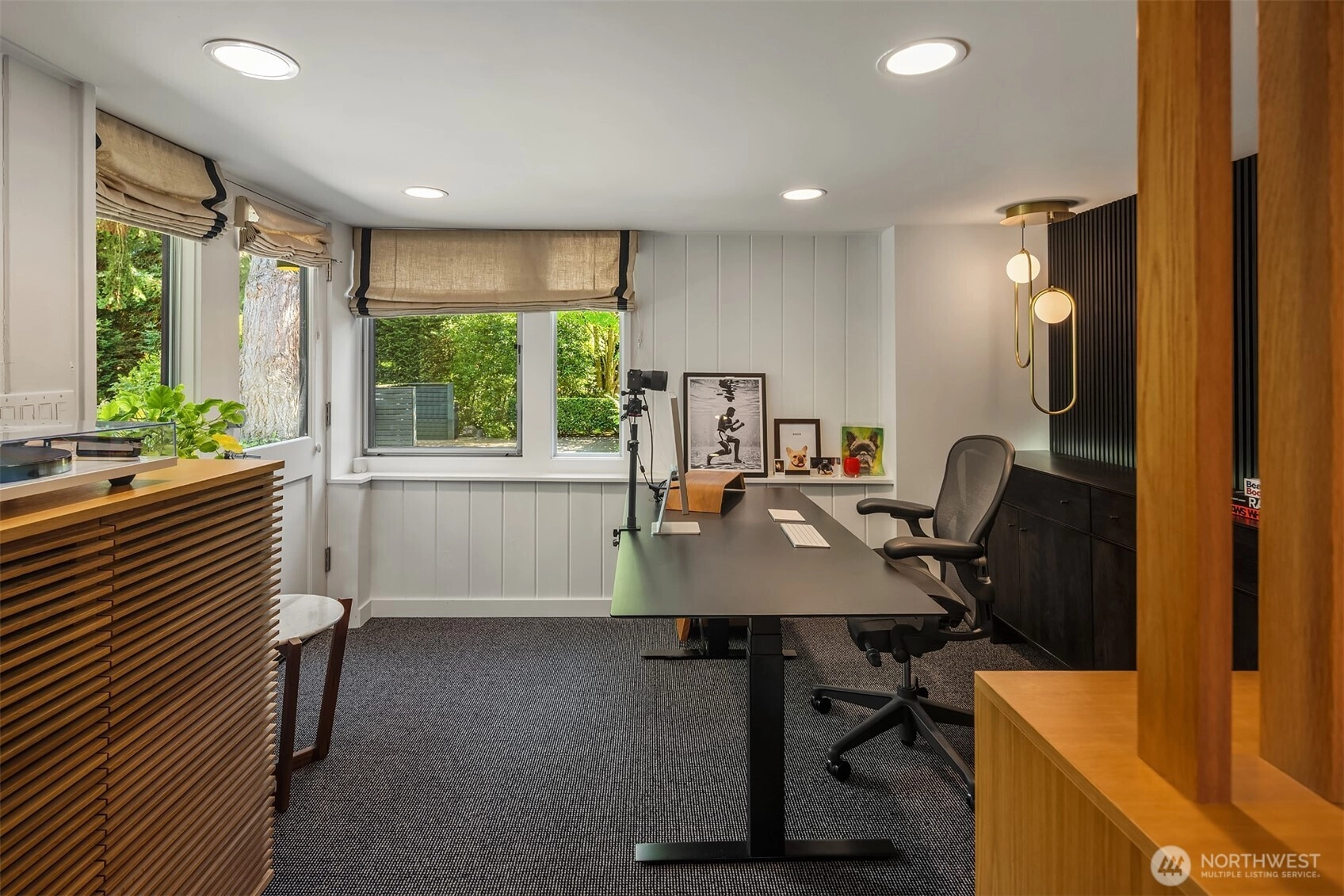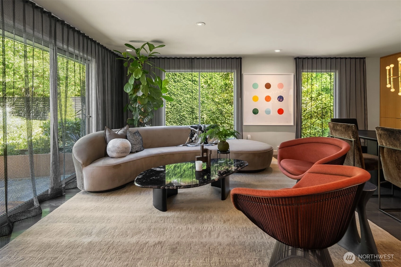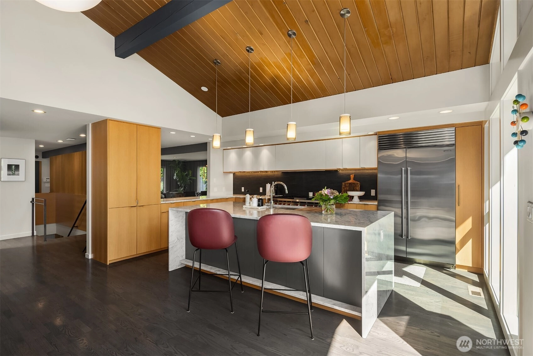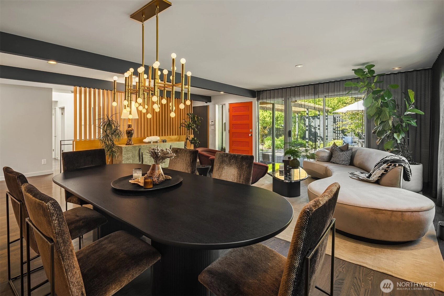 Tucked discreetly into an oversized private corner lot, this extensively-renovated MCM beauty is guaranteed to take your breath away. Everything is custom…thoughtfully conceived & masterfully executed, with classic materials like white oak & marble artfully arranged to create spaces that will always feel fresh AND timeless. Accordion doors connect the vaulted Kitchen/Family area to a spacious & sunny deck. Gracious Primary Suite with custom built-in cabinetry and walk-in closet opens to side patio. Large lower level with Family/TV room, full bath, 3rd bedroom, & office with door to lower yard. Lush landscaping front & back. EV plug, tankless hot H2O, smart lighting, new furnace - A/C, new electric/sub-panel, roof, etc...