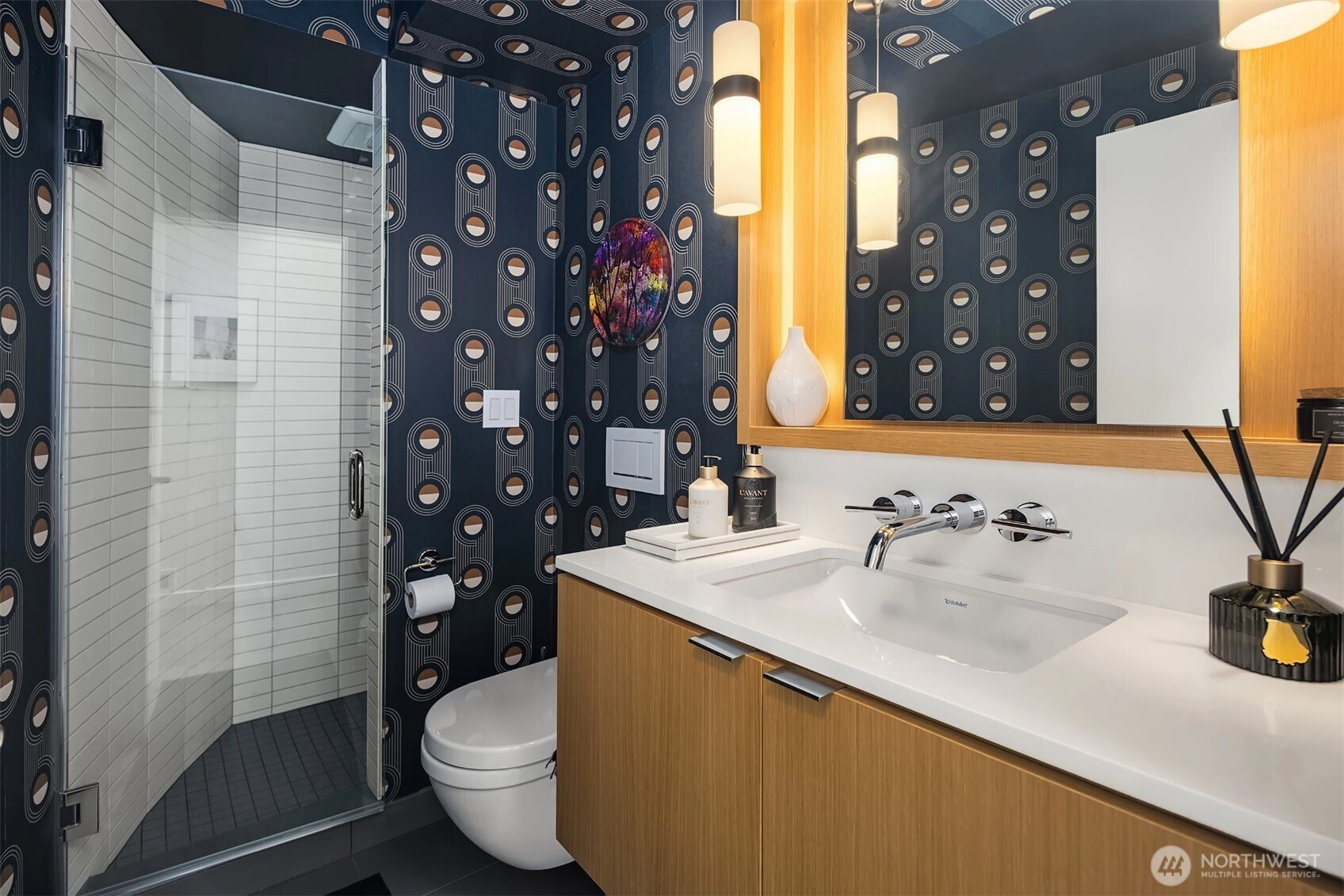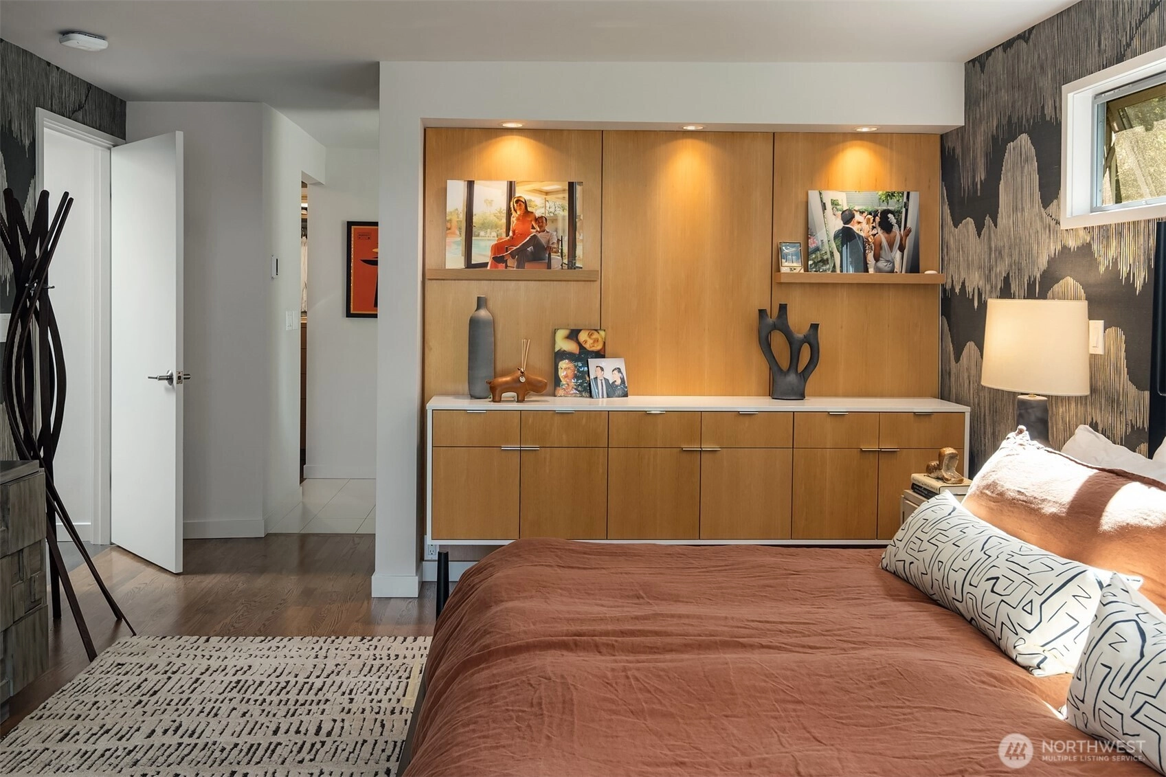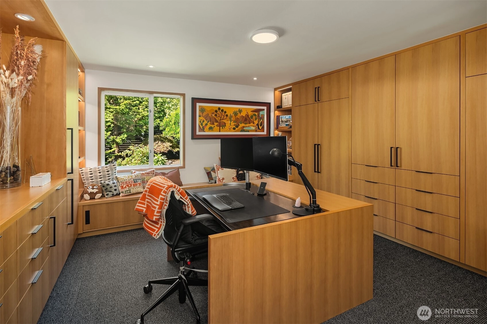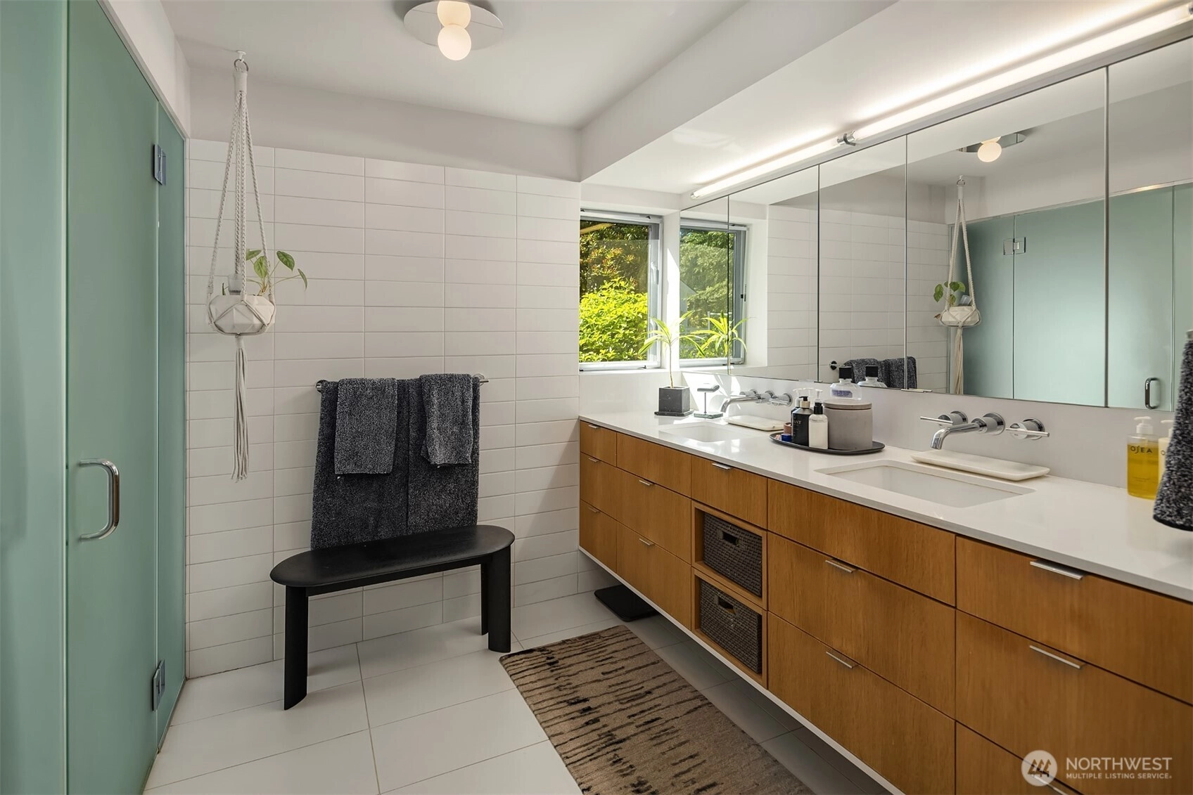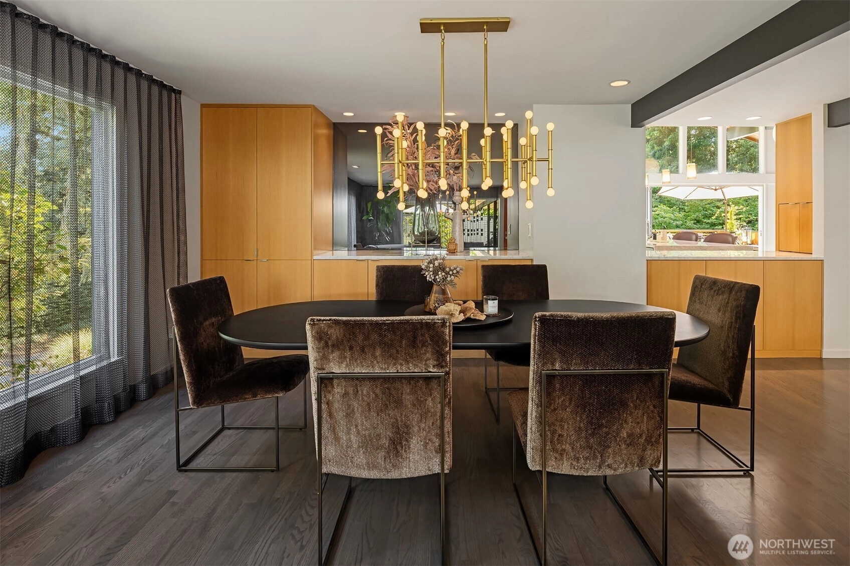 Tucked discreetly into an oversized private corner lot, this extensively-renovated MCM beauty is guaranteed to take your breath away. Everything is custom…thoughtfully conceived & masterfully executed, with classic materials like white oak & marble artfully arranged to create spaces that will always feel fresh AND timeless. Accordion doors connect the vaulted Kitchen/Family area to a spacious & sunny deck. Gracious Primary Suite with custom built-in cabinetry and walk-in closet opens to side patio. Large lower level with Family/TV room, full bath, 3rd bedroom, & office with door to lower yard. Lush landscaping front & back. EV plug, tankless hot H2O, smart lighting, new furnace - A/C, new electric/sub-panel, roof, etc...