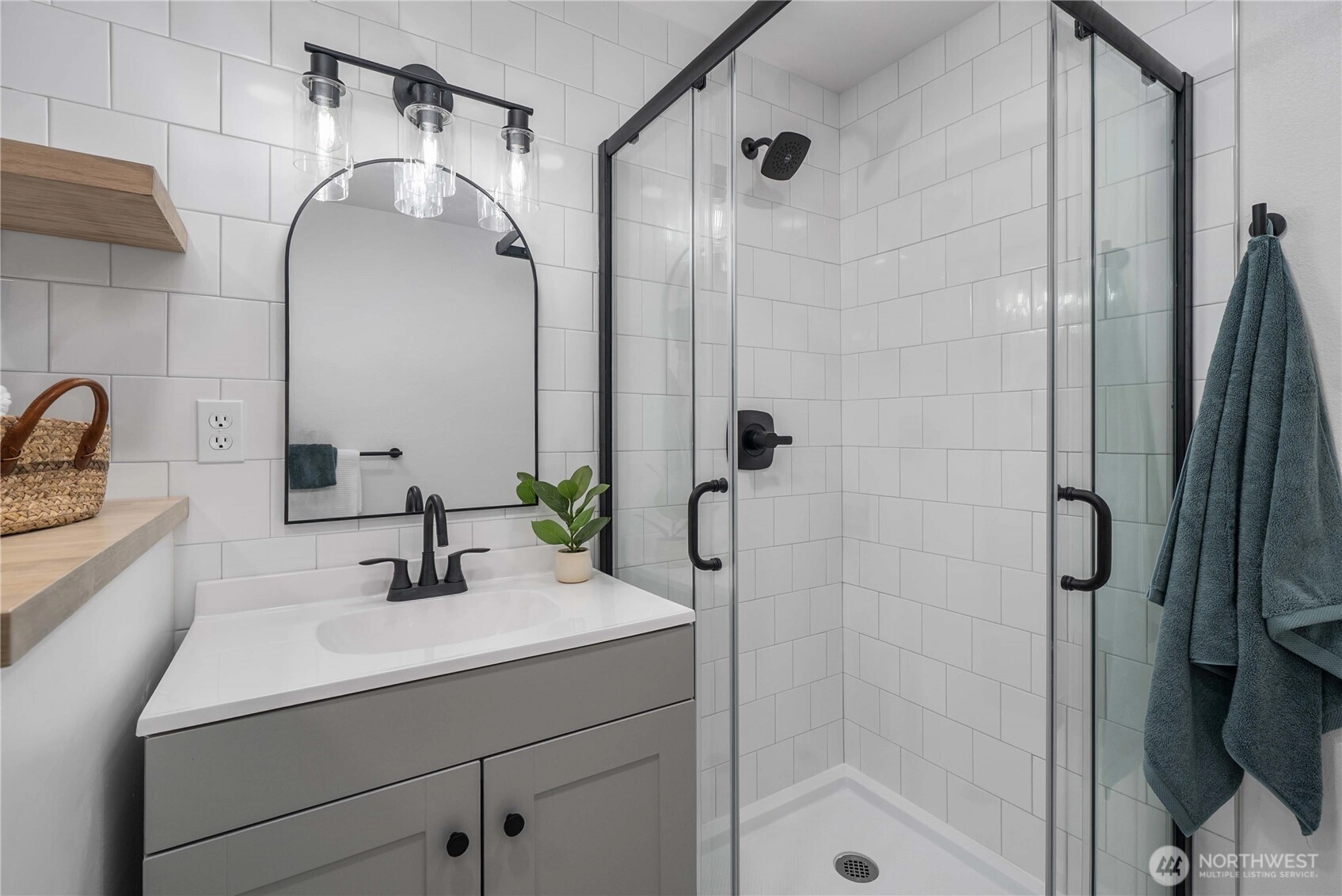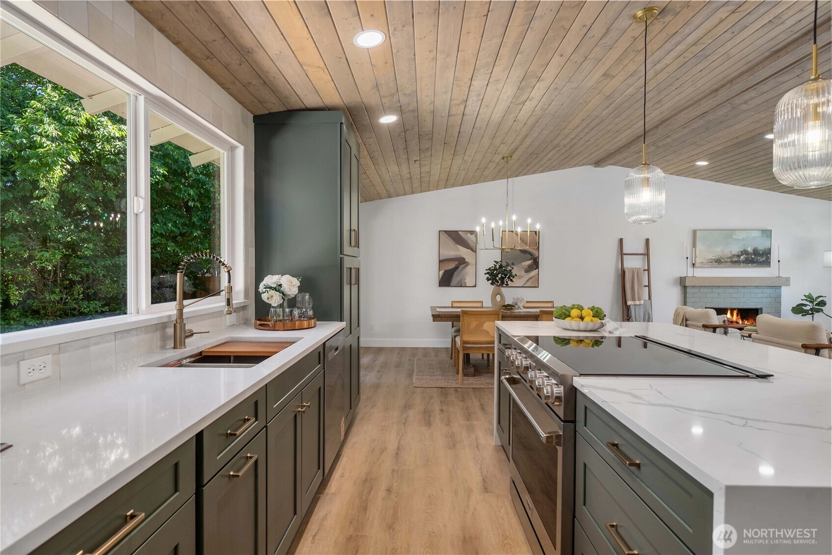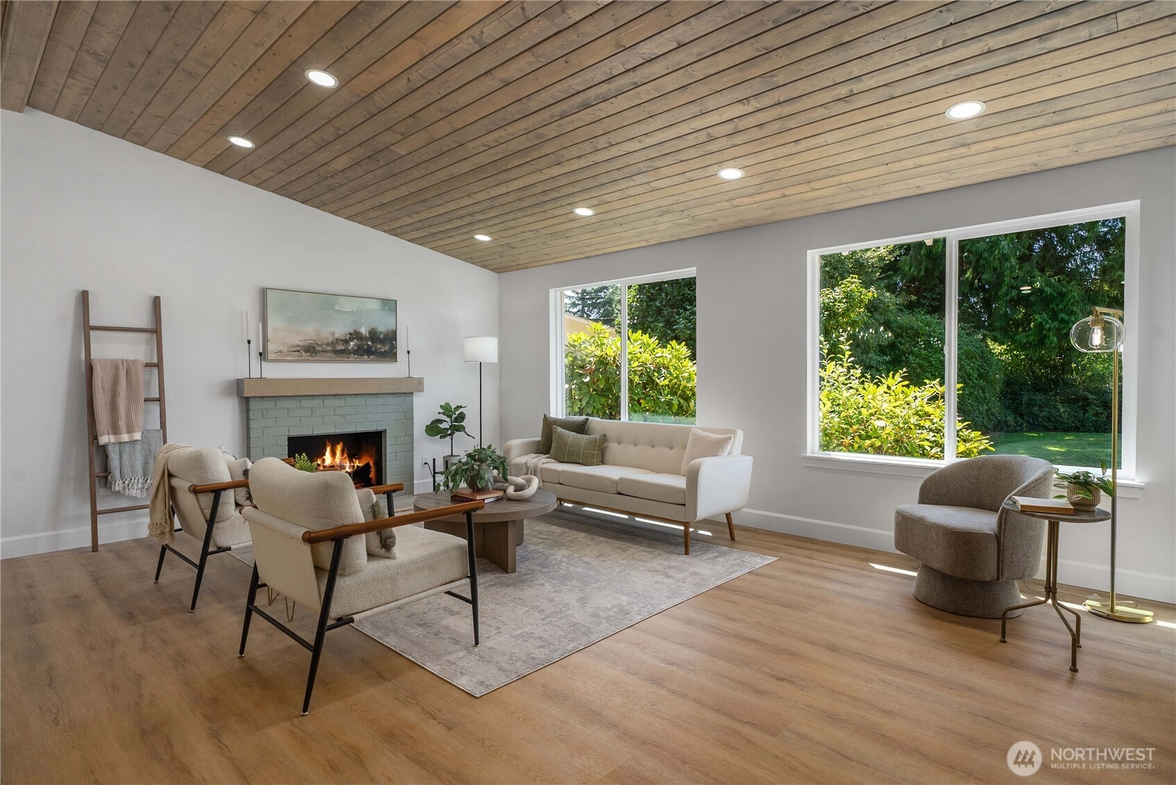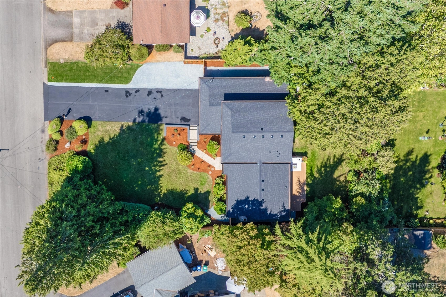 Exceptional mid-century modern tri-level home exceeds all expectations. Completely & professionally remodeled in 2025, this 4 bed/3 bath home features major system upgrades; brand new roof, windows & doors, high efficiency heat pump+A/C, attic & crawlspace insulation, appliances, tile, flooring & so much more. Enjoy your favorite coffee house drink on-demand every morning with your built-in Bosch coffee maker. Vaulted ceilings, stunning all-new kitchen & baths, 2 fireplaces & wet bar w/ beverage fridge elevate day-to-day living. Oversized 2-car garage is pre-wired for EV charging. Partial mountain & sound views, new deck, outdoor firepit, fruit trees & fully-fenced backyard complete this one-of-a-kind, turn key dream home!
