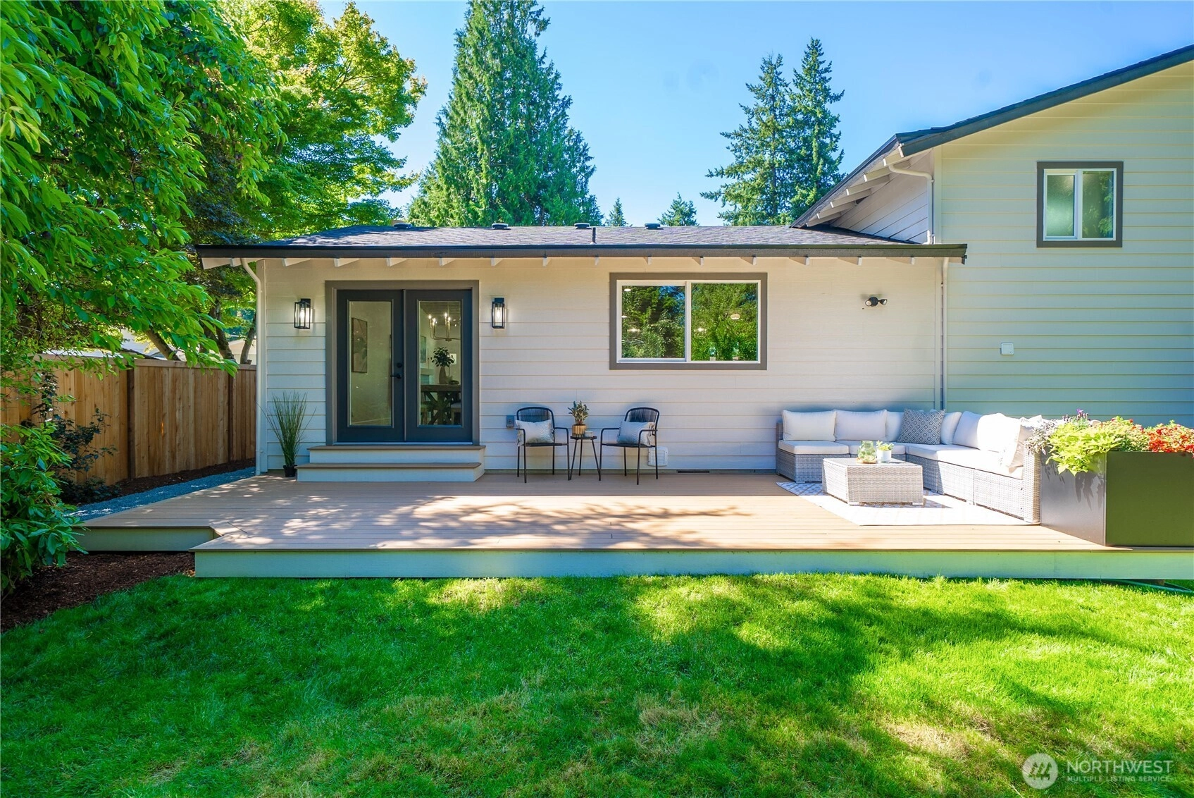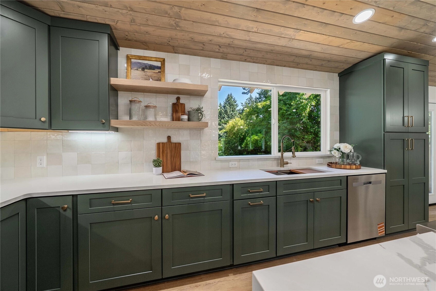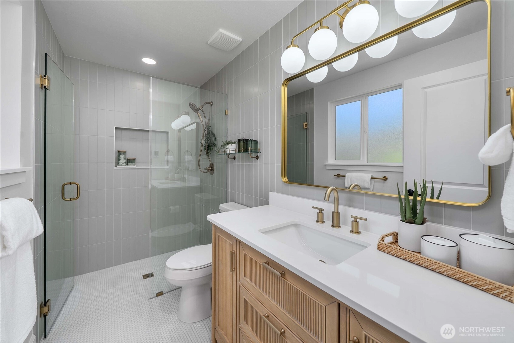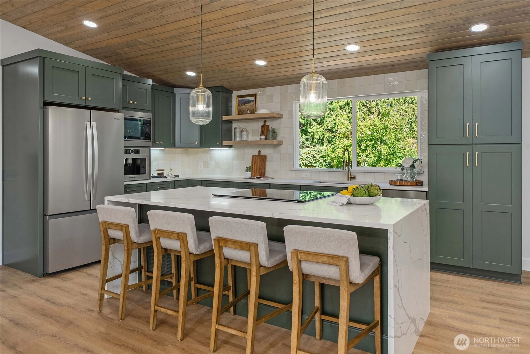 Exceptional mid-century modern tri-level home exceeds all expectations. Completely & professionally remodeled in 2025, this 4 bed/3 bath home features major system upgrades; brand new roof, windows & doors, high efficiency heat pump+A/C, attic & crawlspace insulation, appliances, tile, flooring & so much more. Enjoy your favorite coffee house drink on-demand every morning with your built-in Bosch coffee maker. Vaulted ceilings, stunning all-new kitchen & baths, 2 fireplaces & wet bar w/ beverage fridge elevate day-to-day living. Oversized 2-car garage is pre-wired for EV charging. Partial mountain & sound views, new deck, outdoor firepit, fruit trees & fully-fenced backyard complete this one-of-a-kind, turn key dream home!