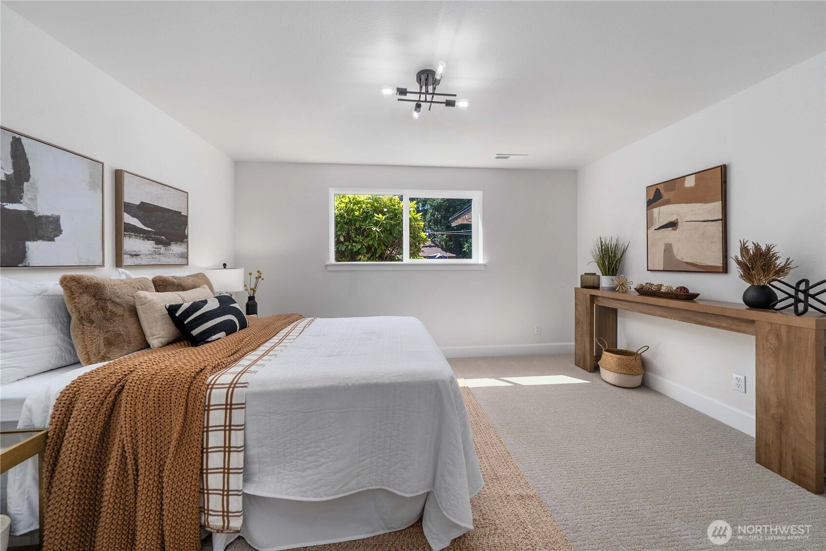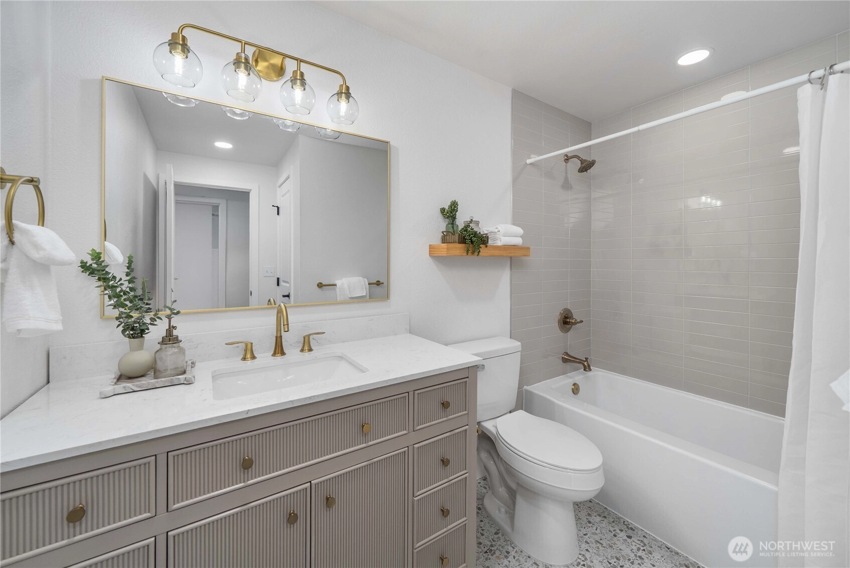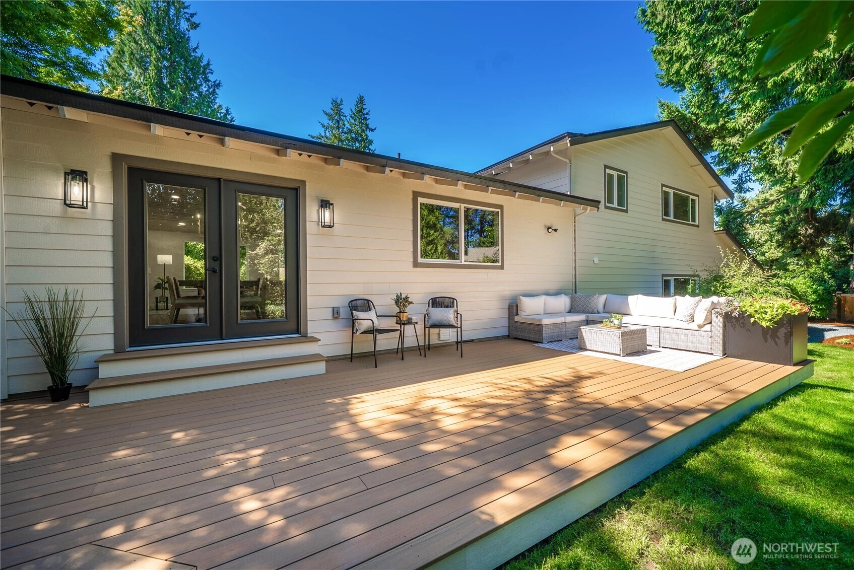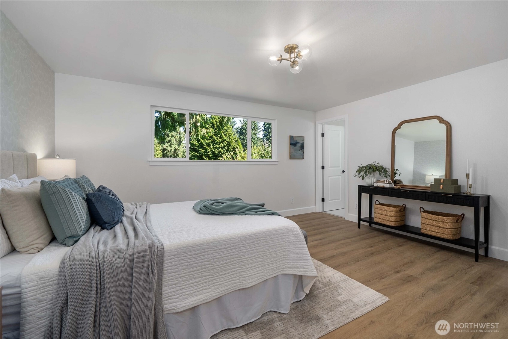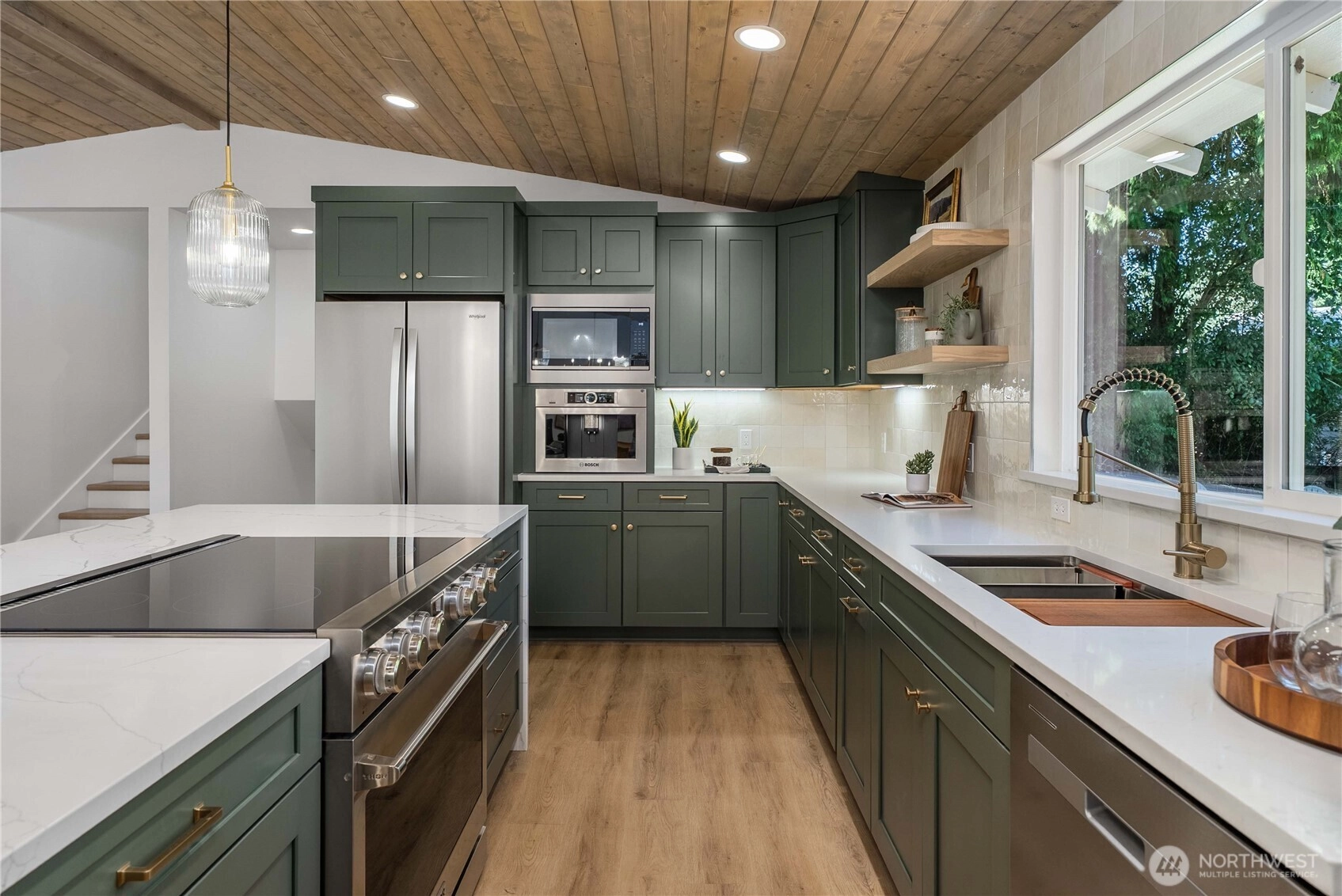Exceptional mid-century modern tri-level home exceeds all expectations. Completely & professionally remodeled in 2025, this 4 bed/3 bath home features major system upgrades; brand new roof, windows & doors, high efficiency heat pump+A/C, attic & crawlspace insulation, appliances, tile, flooring & so much more. Enjoy your favorite coffee house drink on-demand every morning with your built-in Bosch coffee maker. Vaulted ceilings, stunning all-new kitchen & baths, 2 fireplaces & wet bar w/ beverage fridge elevate day-to-day living. Oversized 2-car garage is pre-wired for EV charging. Partial mountain & sound views, new deck, outdoor firepit, fruit trees & fully-fenced backyard complete this one-of-a-kind, turn key dream home!