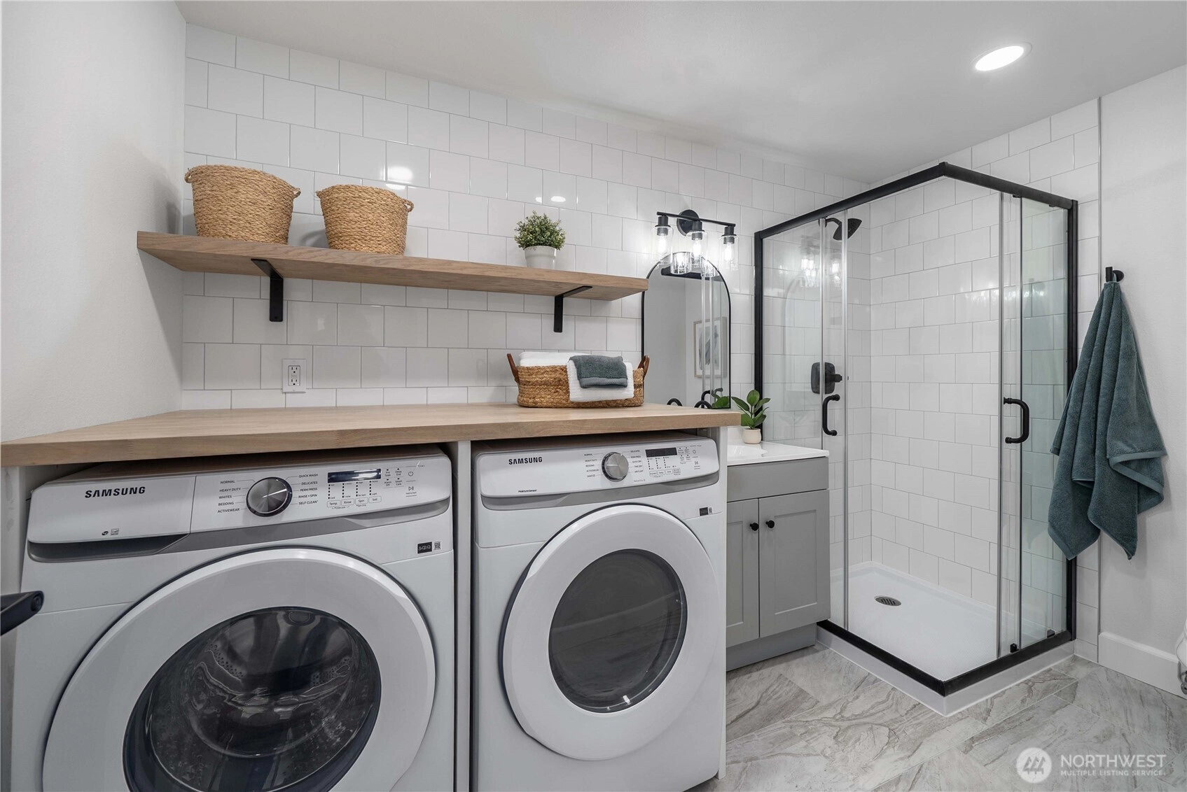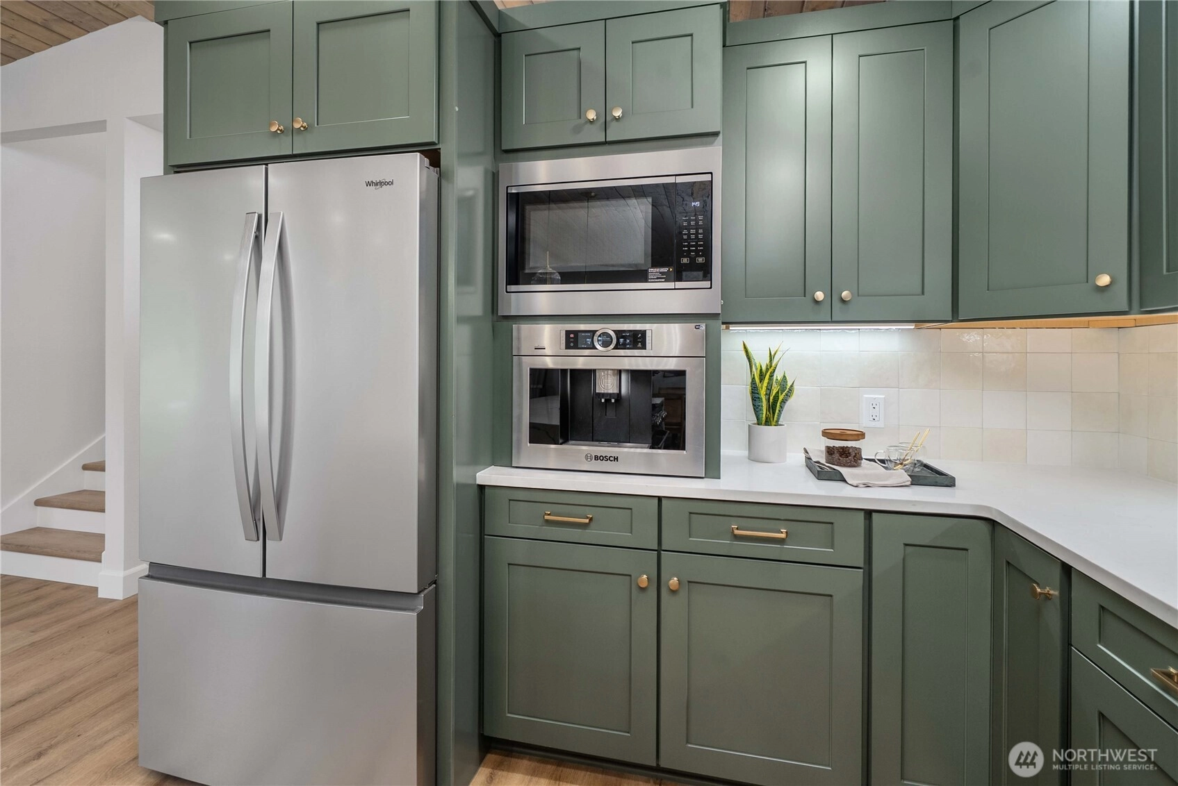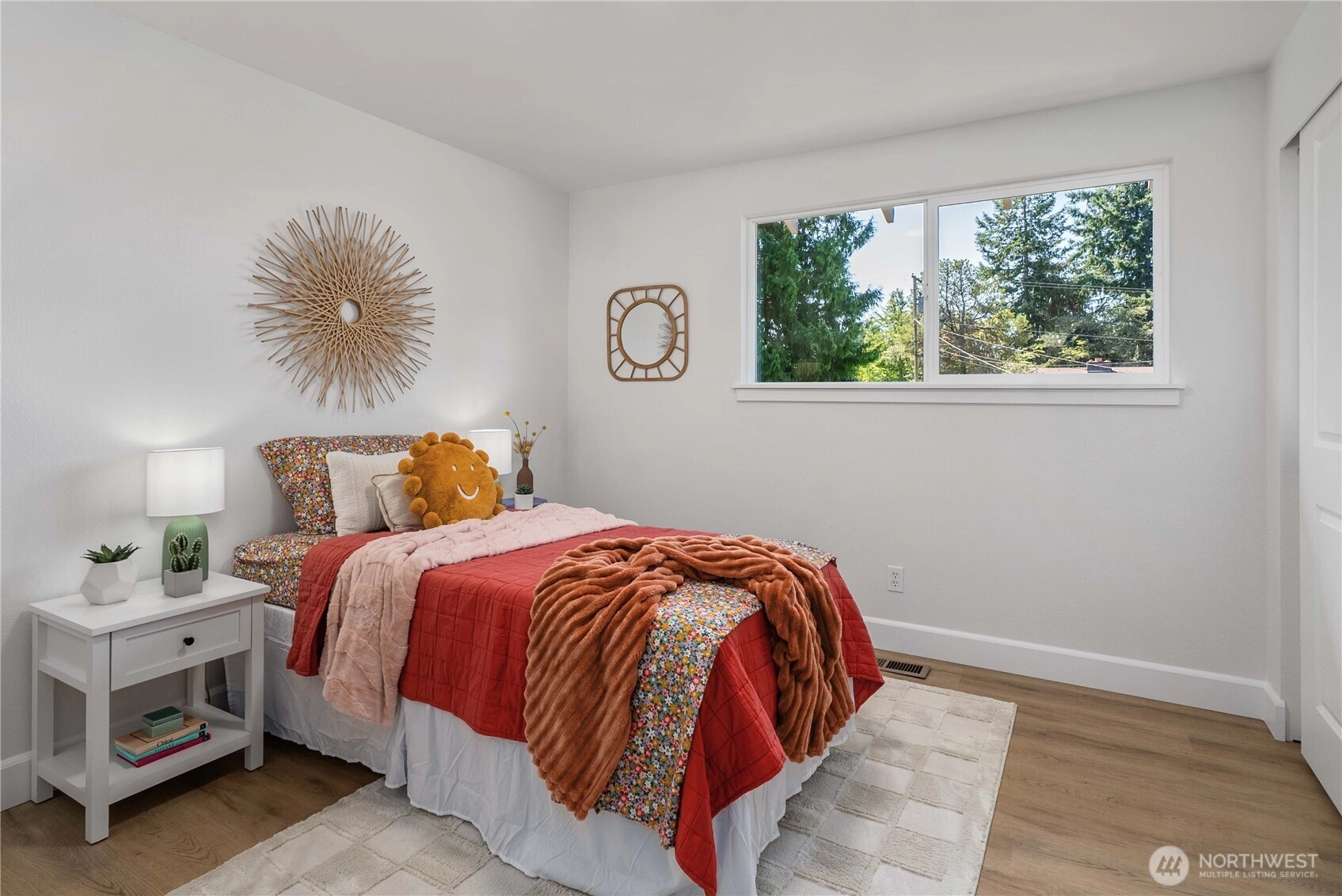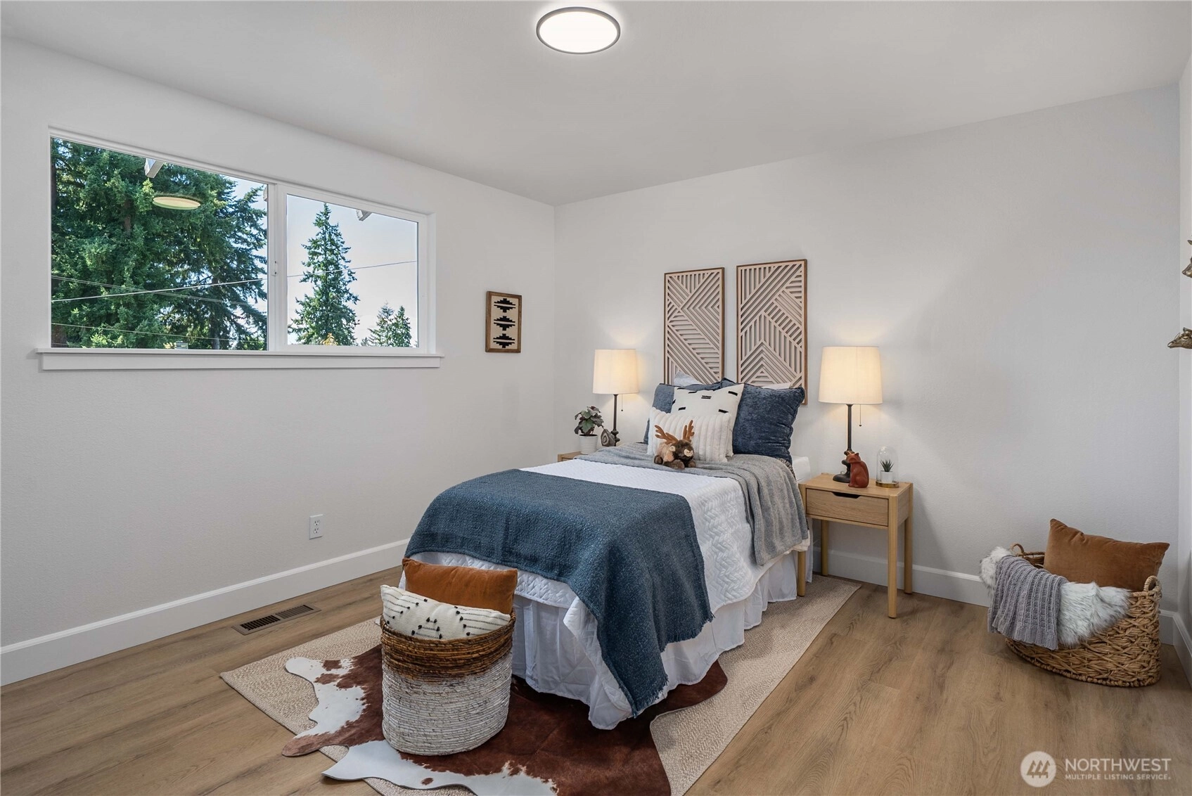 Exceptional mid-century modern tri-level home exceeds all expectations. Completely & professionally remodeled in 2025, this 4 bed/3 bath home features major system upgrades; brand new roof, windows & doors, high efficiency heat pump+A/C, attic & crawlspace insulation, appliances, tile, flooring & so much more. Enjoy your favorite coffee house drink on-demand every morning with your built-in Bosch coffee maker. Vaulted ceilings, stunning all-new kitchen & baths, 2 fireplaces & wet bar w/ beverage fridge elevate day-to-day living. Oversized 2-car garage is pre-wired for EV charging. Partial mountain & sound views, new deck, outdoor firepit, fruit trees & fully-fenced backyard complete this one-of-a-kind, turn key dream home!