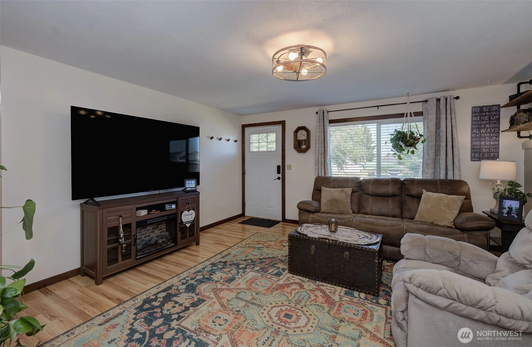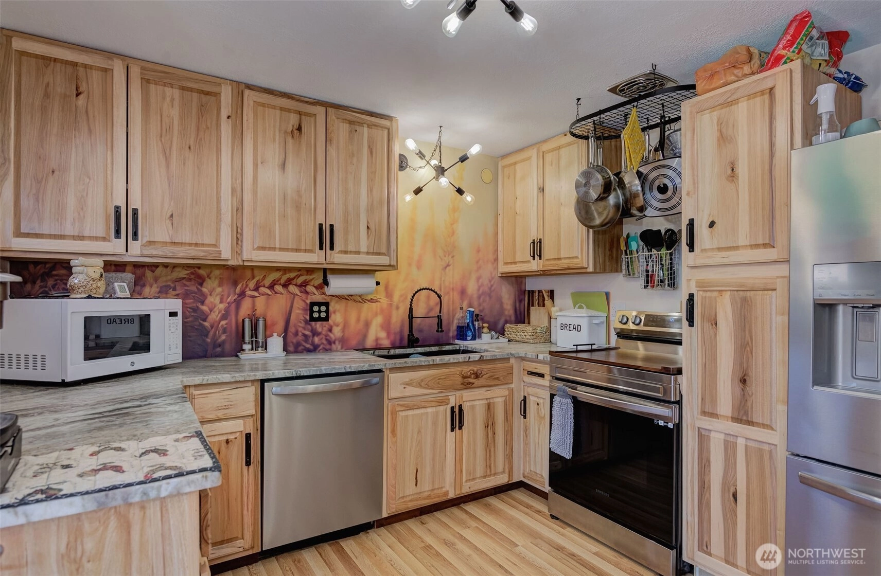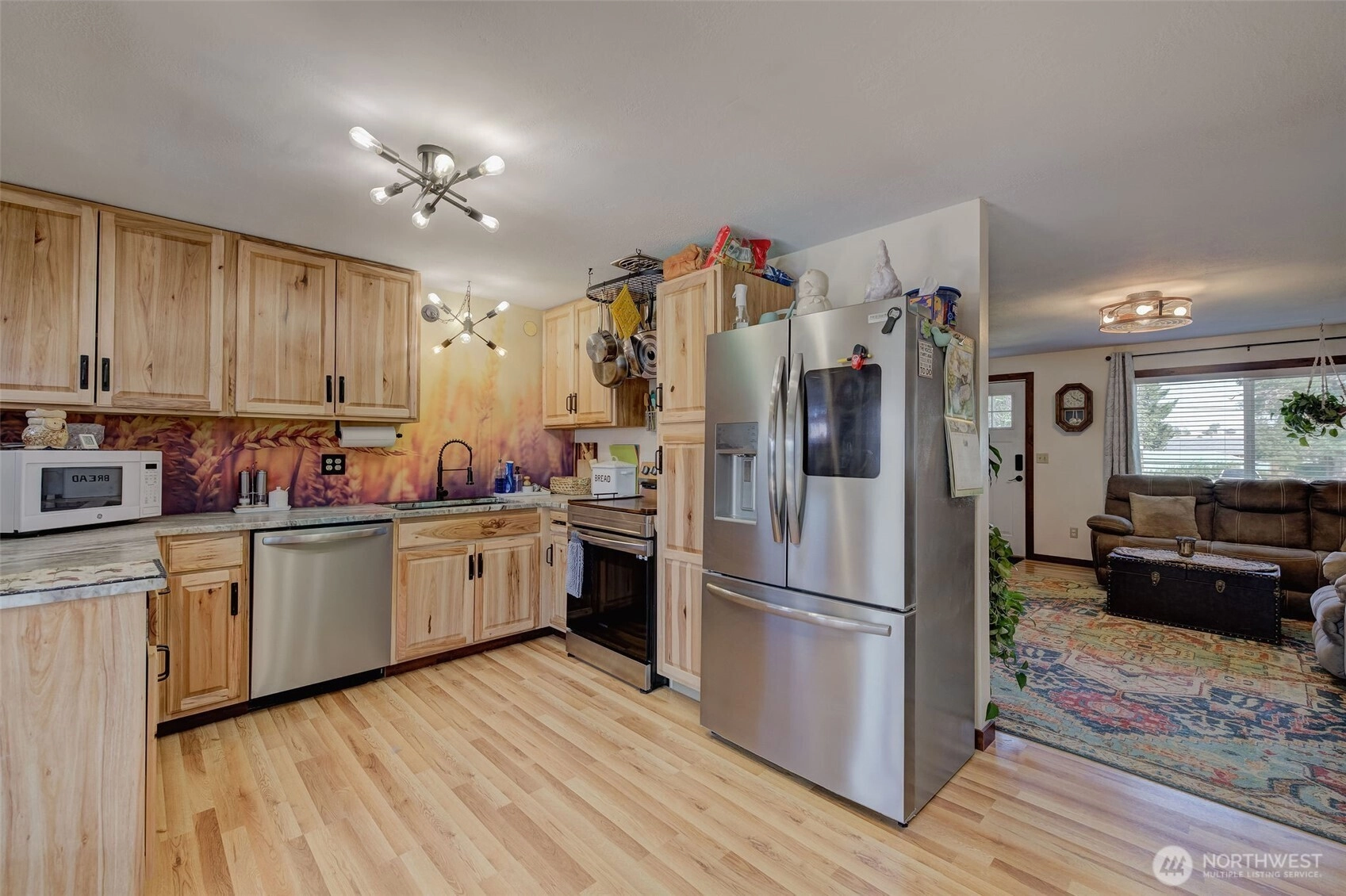 Charming 3bd 2 bath Rambler with a Shop! So many updates to this sweet home; kitchen remodel, updated Primary suite, new flooring, interior and exterior paint. The updated eat-in kitchen includes a sizeable island, Quartz countertops and plenty of storage. Beautiful new LVP flooring throughout creates a bright and clean continuity. Mini-Splits are less than a year old. In addition to the garage, there is plenty of off-street parking, including room for RV parking. The backyard also has updates, with a lovely pergola to enjoy the private backyard space and a firepit! The huge bonus is an 800+ sq ft shop and a lean-to with even more storage space! Enjoy the peaceful small-town life just 30 minutes from East Wenatchee or Chelan.