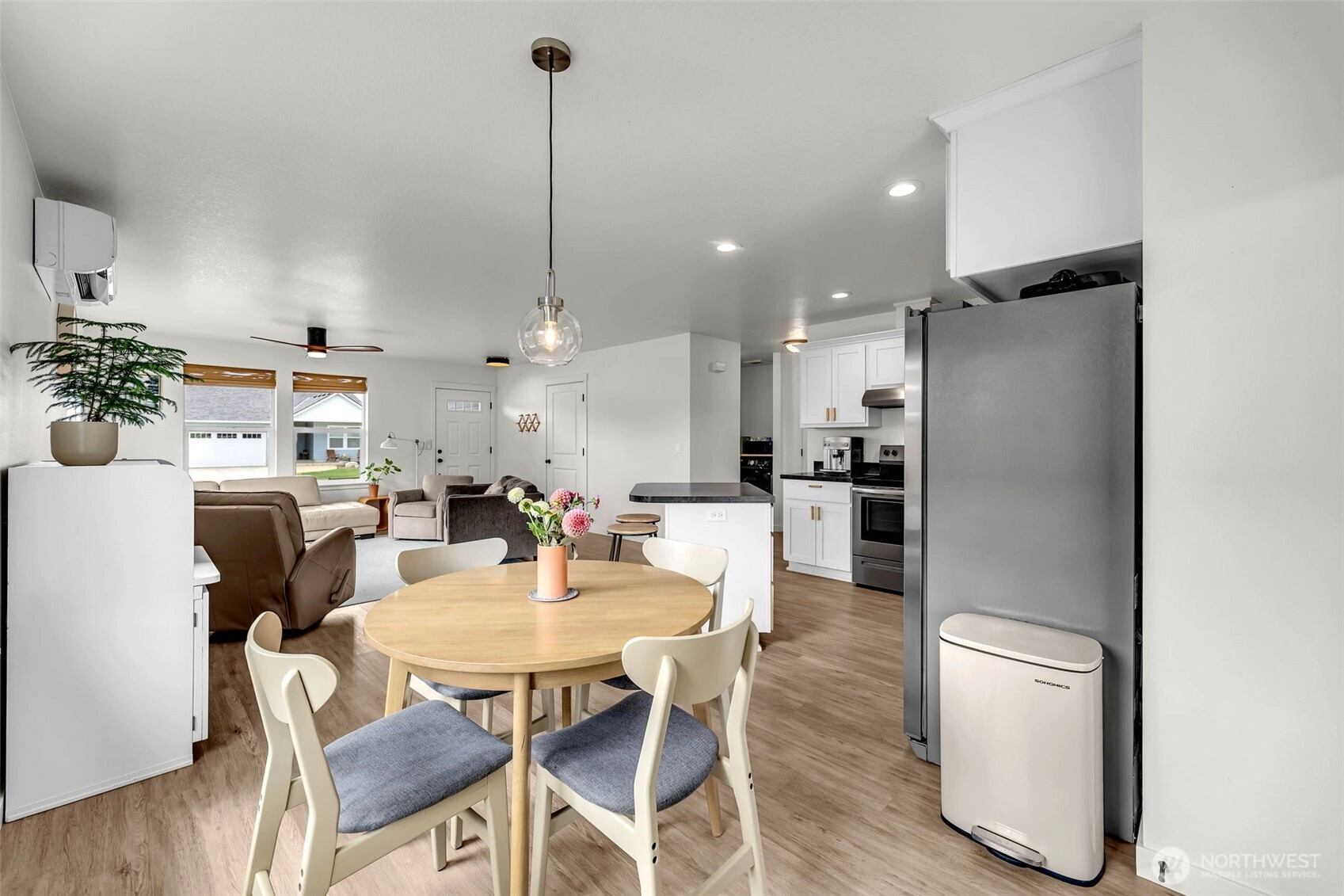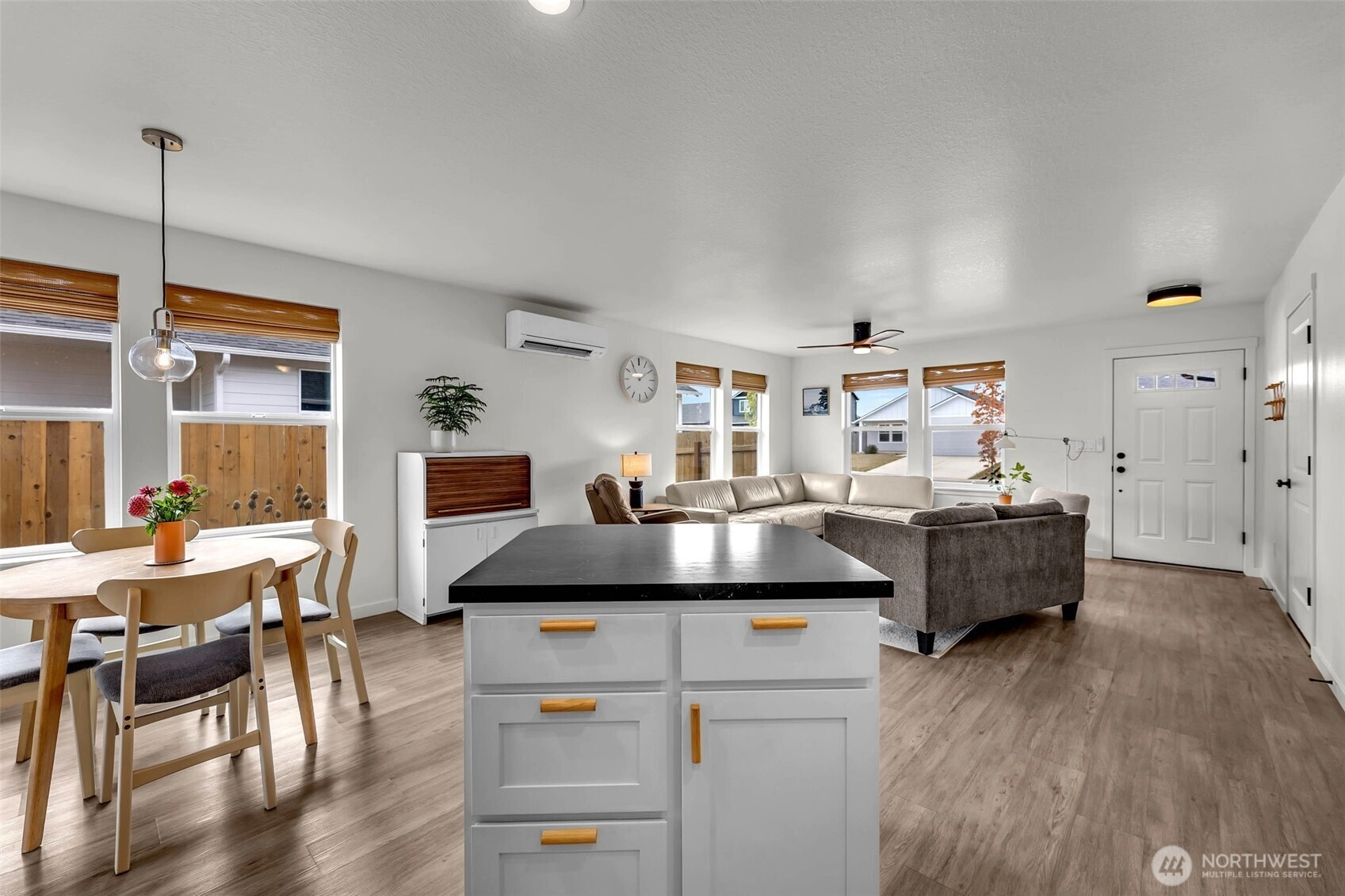 Discover this 1,236 sq. ft. single-level home in Winlock, blending modern style with everyday comfort. This 3-bedroom, 2-bathroom home features an inviting open floor plan that makes living and entertaining easy. The kitchen has a center island with bar seating, stainless steel appliances, and a modern flair throughout. A mini-split system provides efficient heating and cooling, keeping the home comfortable year-round. Step outside to enjoy a covered front and back patio plus a fully fenced backyard with no neighbors behind—ideal for privacy, pets, and gatherings. With its charming curb appeal, modern touches, and private setting, this home is move-in ready and waiting for you!