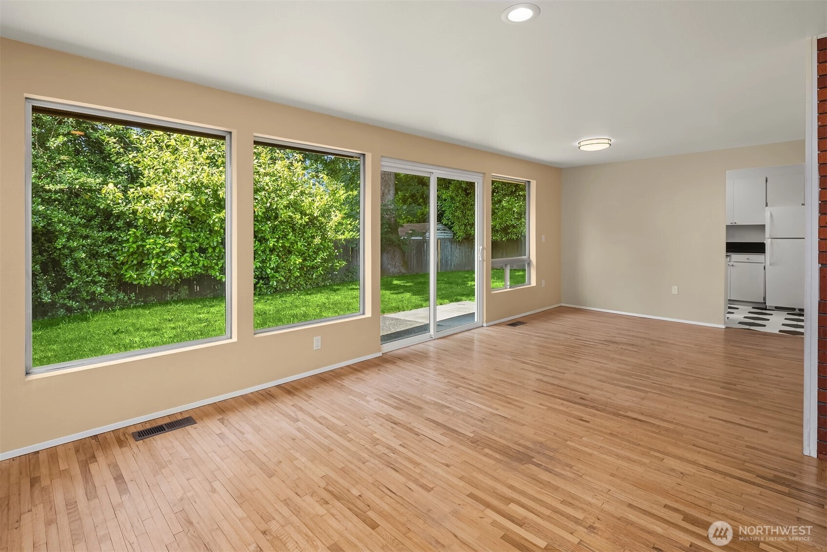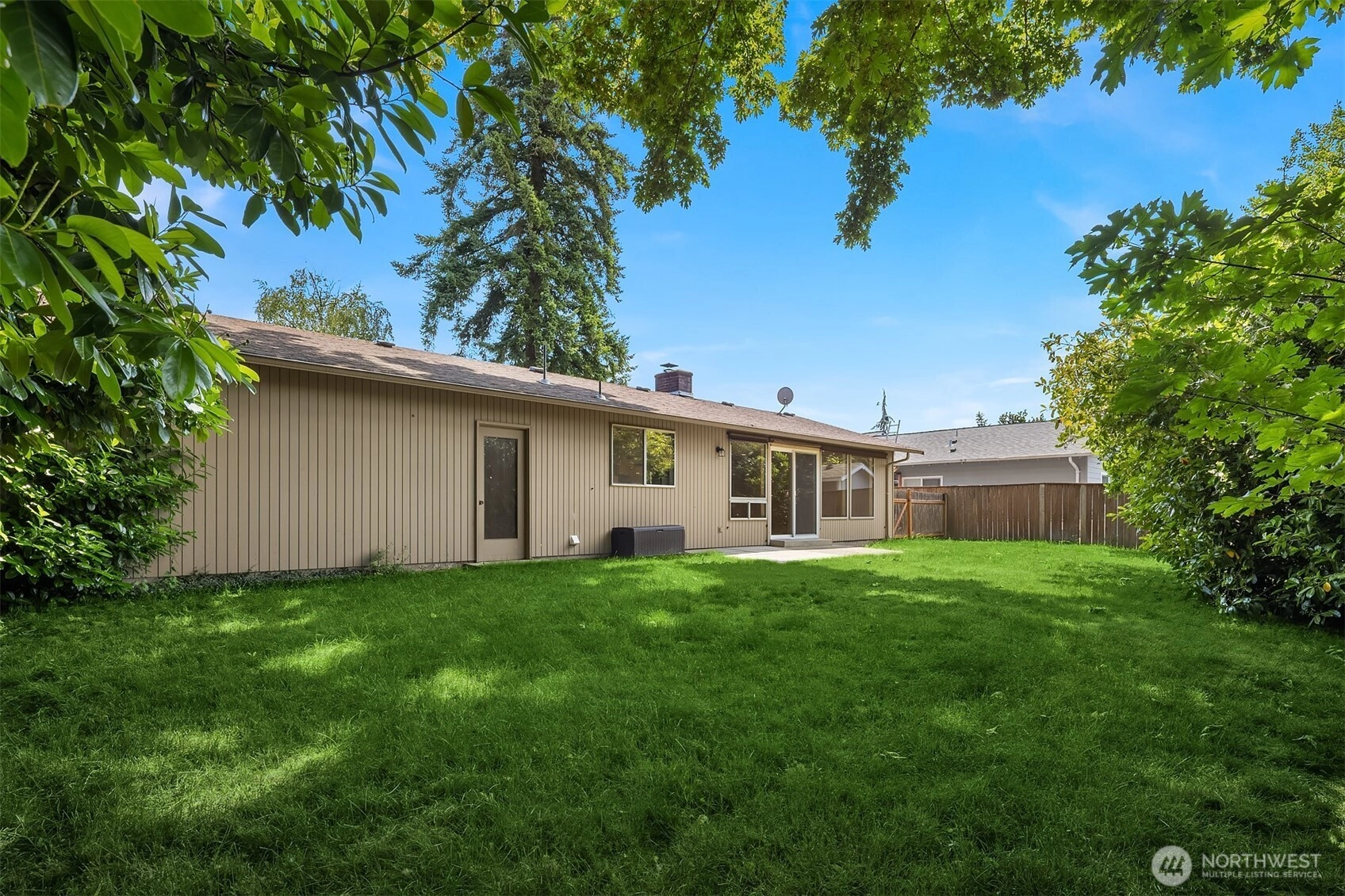 Opportunity knocks at this well-maintained rambler in a fantastic location near amenities and easy I-405 access! Step into an easy one-level layout that lives large with open living and dining areas, genuine hardwood floors, an inviting brick fireplace, and expansive windows bringing in light and natural scenery. Both bathrooms have been updated, including your private en-suite primary bath. Step out to the level, fully fenced yard surrounded by mature landscaping. Move right in or bring your creative eye and add your own additional upgrades. Just a stroll away from the elementary/middle schools and close to parks, trails, shops, & more. A smart investment for yourself or a rental!