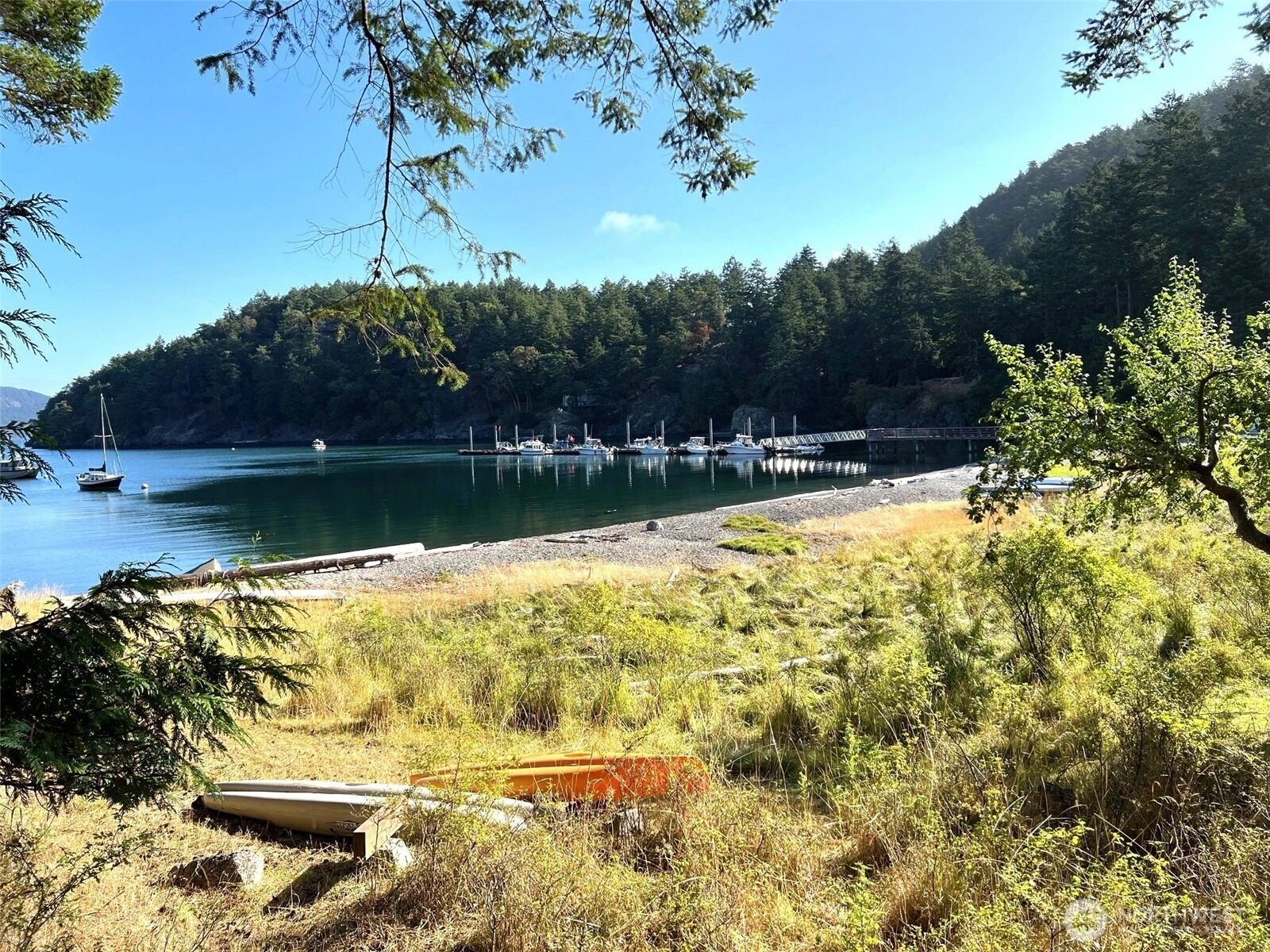 Located in iconic Sylvan Cove at Decatur NW, this lovely island retreat offers the perfect balance of serenity and connection to nature. Perched above a sandy beach and tranquil bay, the home invites you to unwind with panoramic water views through soaring windows and vaulted ceilings. The open layout features a cozy propane stove, main-floor primary suite, and a kitchen that looks out onto fruit trees and the welcoming community center. Direct beach access allows you to launch your kayak and be on the water in minutes. Award-winning community with sports courts, forested trails, freshwater lake, and lush gardens. FT caretakers, hot tub, shop, laundry, deep-water dock, moorings, private passenger ferry and beautiful beaches. Incl golf cart.