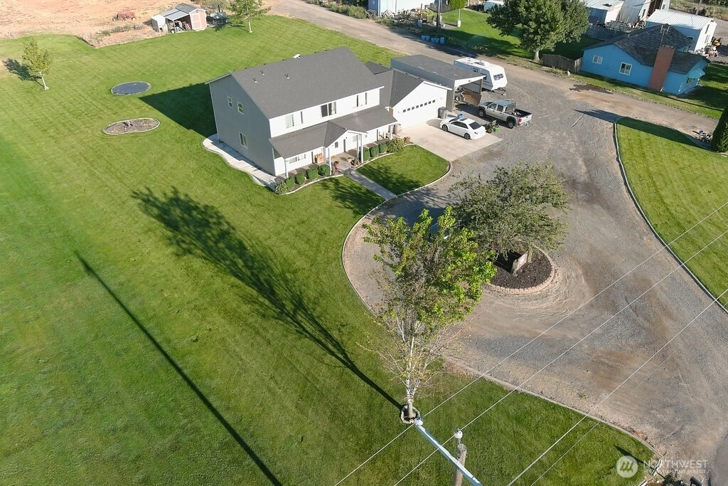 Welcome to your Perfect Retreat in the Country! This 2-story home, built in 2011, offers the best of both worlds. Peaceful rural living just mins. from town & close to the Othello Golf course. With 2,824 sqft of well designed living space this home features, 5 bdrms, 2.5 bath, granite kitchen counter tops, primary suite w/walk-in closet & master bath w/dual vanity, a dedicated office/den with french doors, living room on main level & family rm on upper level. Step outside & enjoy the extra that makes this property truly unique w/batting cage, in ground trampoline & 364+/- utility shelter for extra covered parking. Don't miss your chance to own this incredible property that offers space, style & the ultimate in rural comfort